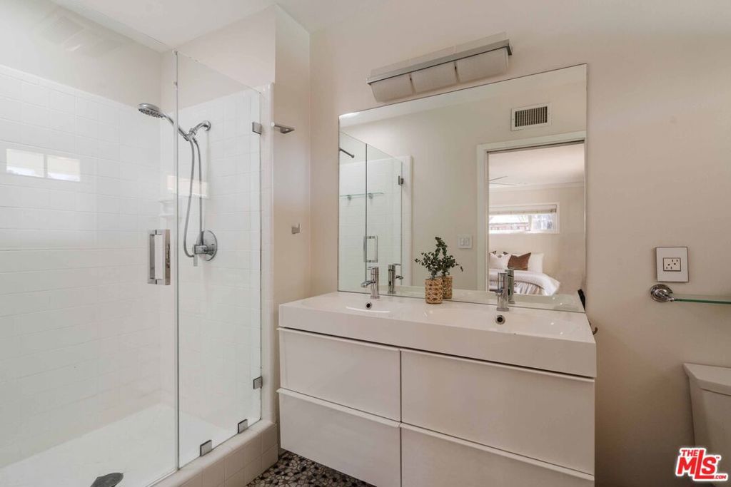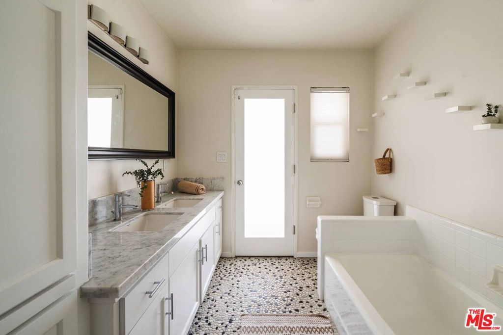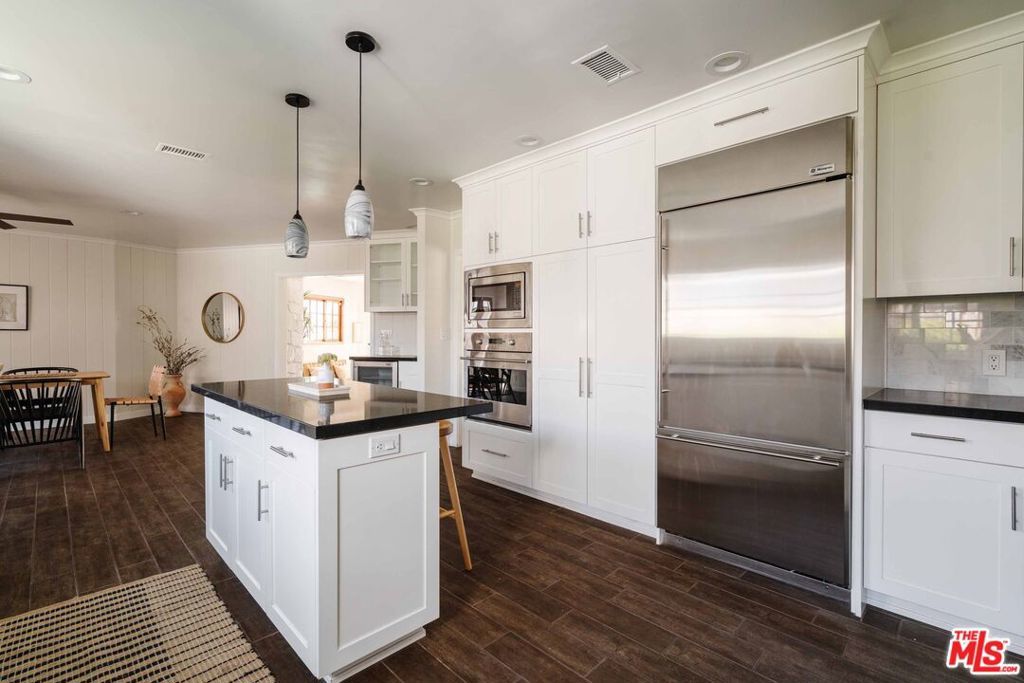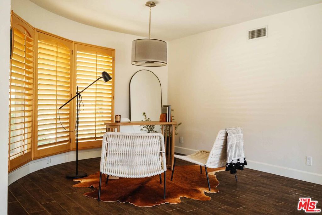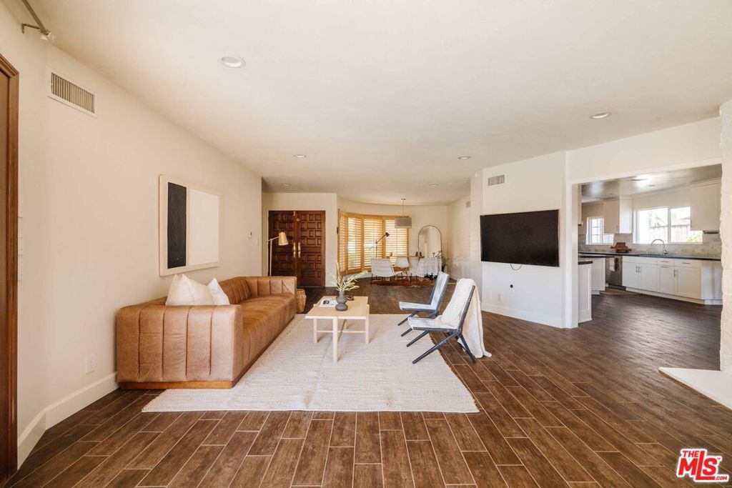 Nestled on a large corner lot, this beautifully remodeled and upgraded single-story, Mid-Century home boasts designer touches throughout. Through the front gate and past the white picket fence, guests are welcomed by lush landscaping, mature trees and long driveway. Inside, through the double wood entry doors, find a bright and open floor with an effortless flow throughout. The living room, perfect for gatherings or cozy evenings by the fireplace, connects to a gourmet kitchen equipped with stainless steel appliances, Caesarstone countertops, Carrara marble backsplash, and an island with seating. The kitchen also includes a wet bar, beverage fridge, and an adjacent dining area. The primary suite features a walk-in closet, a bathroom with a shower and dual vanity. Two spacious secondary bedrooms share an updated bathroom with dual vanities, large shower, and separate tub. French doors open to the back patio area where a gorgeous pool beckons afternoons spent lounging in the sun. Enjoy complete privacy, vibrant landscaping, and a covered al fresco dining area. Citrus trees, a plant-covered trellis, an herb garden, raised vegetable beds and garden walkways create a tranquil ambiance. With upgrades throughout including dual pane windows, newer roof, newer HVAC, new electrical panel, new drainage, privacy fencing and so much more. Located in a highly sought after neighborhood with award-winning schools, this is not a home you want to miss!