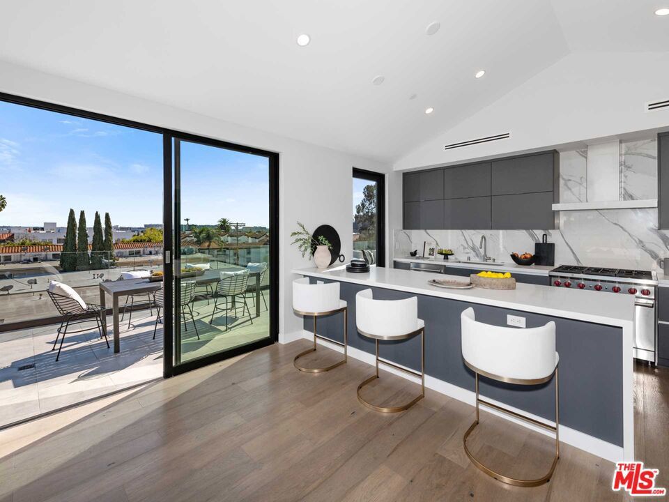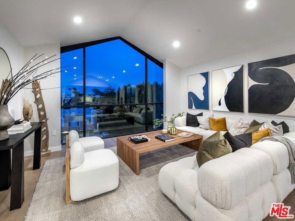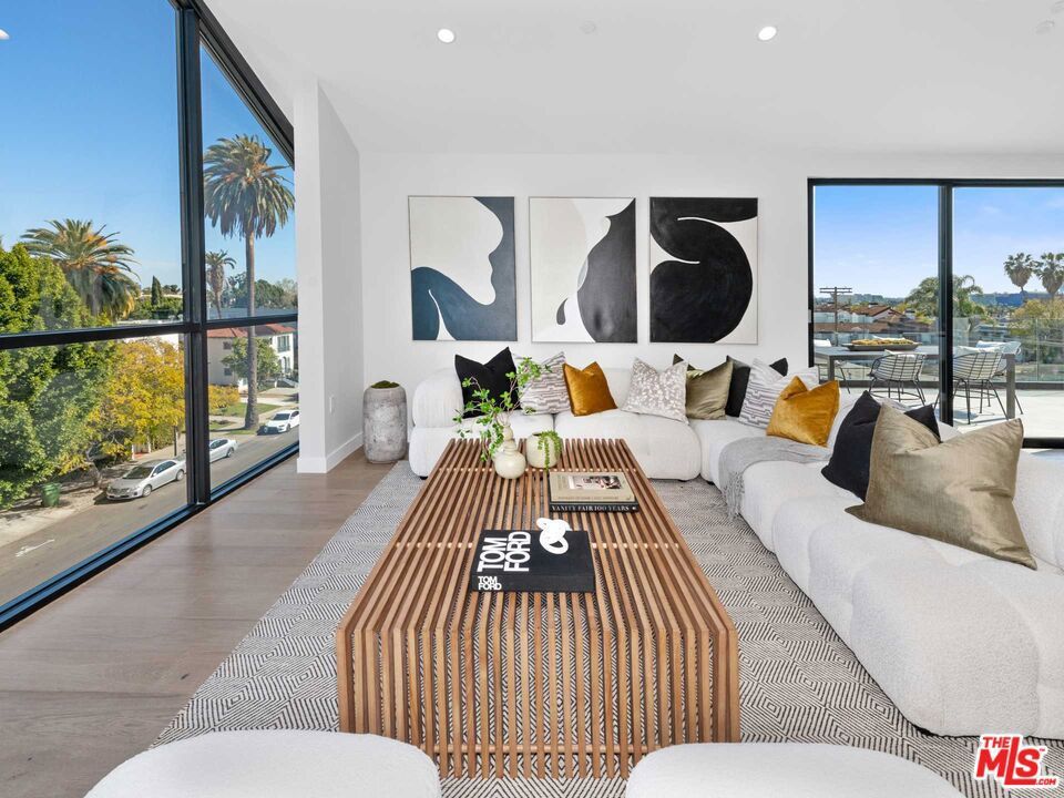 Perched atop The Croft @ WeHo, this penthouse residence showcases refined, exquisitely unique, contemporary living, highlighted by pitched roof ceilings, expansive windows, and a wraparound deck with sweeping city and Hollywood Hills views. The thoughtfully designed interior is filled with natural light and showcases stainless steel appliances, a sleek modern kitchen, and a dedicated laundry room. The residence features all en-suite bedrooms, with a primary suite featuring a spacious walk-in closet, dual-vanity bath with soak tub and rain shower, and remarkable views. The wraparound terrace, accessible from every room, extends the residence outdoors, ideal for entertaining, dining, or simply enjoying panoramic city and Hollywood Hills.Located in a boutique, newly constructed building just south of Santa Monica Boulevard, this penthouse is moments from Melrose Place, La Cienega, and the best of West Hollywood dining, shopping, and fitness. A rare opportunity to enjoy an exceptionally elevated penthouse living with style, privacy, and indoor-outdoor flow.