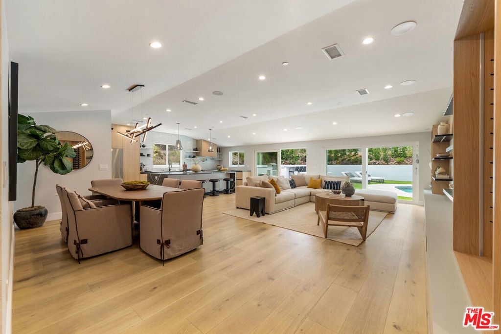 Exquisite Modern Luxury in Prime Woodland Hills. Step into sophistication with this fully remodeled 4-bedroom, 3-bathroom residence, ideally located in one of Woodland Hills' most desirable pockets. Designed with modern living in mind, this home blends clean contemporary lines with timeless comfort, offering an unparalleled lifestyle.Upon entry, you're greeted by wide-plank wood flooring, abundant natural light, and an open-concept layout that flows seamlessly from the living and dining areas to the chef's kitchen. The kitchen is a showpiece, featuring custom cabinetry, sleek countertops, high-end appliances, and a large center island perfect for both everyday living and entertaining. Each bathroom has been thoughtfully redesigned with spa-inspired finishes, creating a retreat-like experience.The primary suite offers a serene escape with a spacious layout, a luxurious en-suite bathroom, and direct access to the outdoor living space. Additional bedrooms are generously sized, ideal for family, guests, or a home office.The backyard is a true entertainer's paradise enjoy a sparkling private pool, built-in BBQ island, and expansive lounge and dining areas surrounded by lush greenery. Whether hosting large gatherings or enjoying a quiet evening at home, this outdoor space is designed for both relaxation and celebration.Additional features include an attached 2-car garage, new modern finishes throughout, and carefully curated upgrades with attention to every detail.Perfectly situated near award-winning schools, upscale shopping, fine dining, and Kaiser Permanente, this home offers both elegance and convenience in one of Los Angeles' most coveted communities.