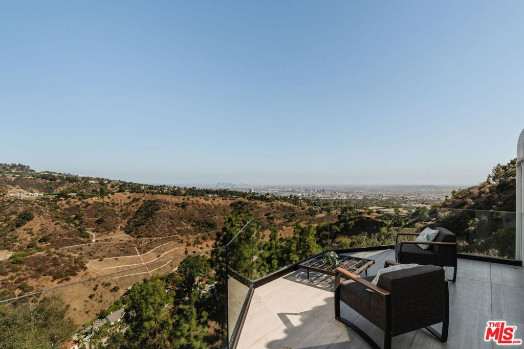 Perched within a coveted Beverly Hills enclave, this newly reimagined modern estate spans approximately 1.24 gated hillside acres, offering exceptional privacy and sweeping jetliner views from the Pacific Ocean to the Downtown skyline. A long private drive and motor court create a striking arrival amid curated landscaping. Designed for seamless indoor-outdoor living, the home offers over 5,400 sq ft of living space, with walls of glass opening nearly every room to panoramic vistas and expansive terraces. A fully self-contained one-bedroom guest residence above the three-car garage includes its own kitchen, bath, and private terrace.Strong value-add potential is highlighted by approved, ready-to-issue infinity pool plans, allowing construction to begin immediately. Seller financing available. Offered for lease at $29,995 per month, with short-term opportunities upon request.