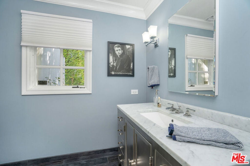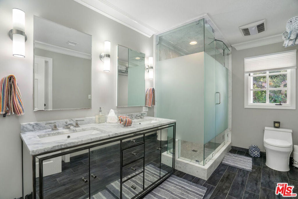 Located at the end of a peaceful cul-de-sac in the coveted North Ranch neighborhood, this fully furnished home offers 4 bedrooms and 4.5 bathrooms. Step through the double doors into the main living area featuring a family room, dining room, library, gourmet kitchen, upgraded laundry room, and a luxurious master suite. The expansive balcony connects the kitchen, living room, and master bedroom, providing seamless outdoor access across the main level. The master bathroom and closet have been beautifully renovated with modern finishes and heated floors for added comfort. The third level offers a private office space with a full bathroom, perfect for working from home or easily converted into a guest bedroom. The lower level boasts three spacious bedrooms, one of which has been transformed into a fully equipped gym that can easily be reverted to a bedroom, along with a large family room featuring double doors that open to a private, serene backyard with views of the Santa Monica mountains and Simi Peaks. The outdoor space is an entertainer's dream, complete with a resort style pool, putting green, and outdoor kitchen, ideal for relaxing or hosting guests. Additional features include a three-car garage with 2 Tesla chargers, extra storage space and a secondary fridge. Available starting March 15th.