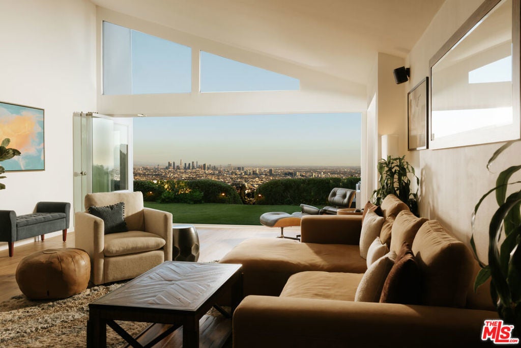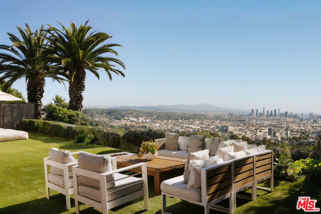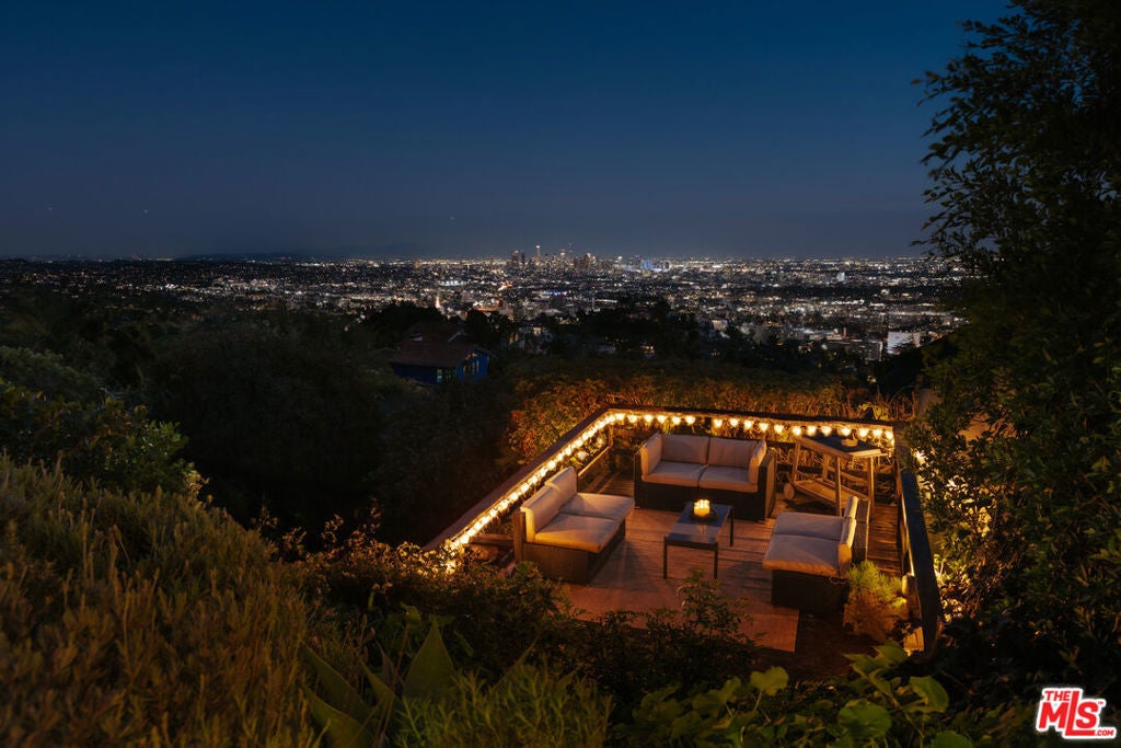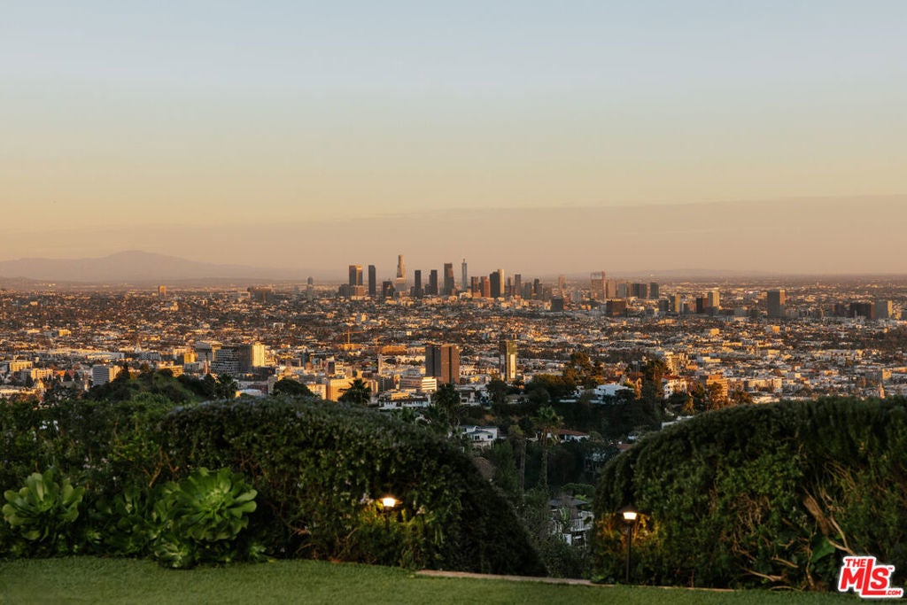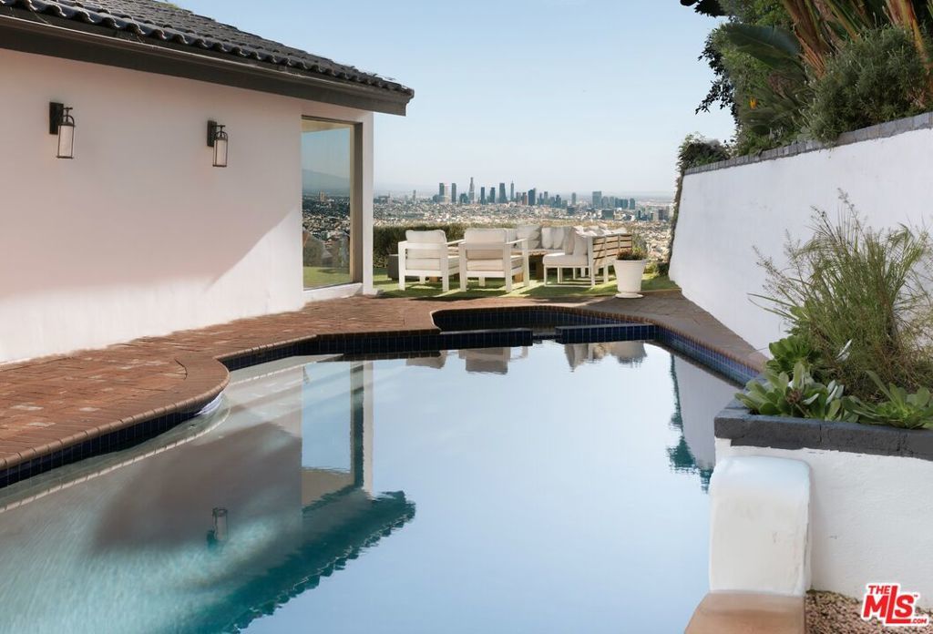 The best view in LA, perched near the top of a serene hillside cul-de-sac in coveted Outpost Estates, this home is a private, secluded sanctuary with iconic pedigree. Once owned by a legendary Rock & Roll Hall of Fame musician, this property offers both a storied past and exceptional potential, with approved plans for a 4,300+ sq ft modern residence or the opportunity to enjoy the beautifully updated home currently on site. Showcasing jaw-dropping, jetliner views from the ocean to the Hollywood sign, the existing 4-bedroom, 3.5-bath residence is an urban oasis designed for both escape and entertaining. Soaring ceilings, an open floor plan, and floor-to-ceiling windows flood the interior with natural light and connect seamlessly to a lush backyard with a heated pool and spa, capturing the essence of Hollywood Hills indoor/outdoor living. The remodeled kitchen features stainless steel appliances and opens to the main living area. Modern upgrades include Google Home controlled heating and cooling, state-of-the-art security, and a full video monitoring system. Clean lines, abundant light, and a contemporary feel make the home ideal for end users or an excellent investment opportunity. Convenient to both the city and the valley, this versatile property offers the rare chance to live, expand, or invest in one of Los Angeles' most desirable neighborhoods. A blend of history, privacy, and design potential, 2669 Larmar Rd. is a Hollywood Hills offering unlike any other.