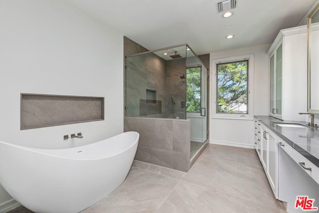 Like Brand New, Recently Remodeled! Built in 2007, a luxurious Contemporary/Modern Mediterranean home located in Cheviot Hills on the coveted Forrester Dr. Grand foyer with rolling staircase, skylight, & soaring ceilings. Spacious living room with fireplace opens to the cozy den/office which leads to a grassy, well maintained & fenced side yard. The back yard provides several options for al-fresco dining and entertaining no matter the time of year. Private and elegant formal dining room with ample built-in storage space. Sleek and modern kitchen features custom cabinetry, stone counters, new appliances & center island. Off the kitchen is the expansive family room, leading to a sprawling patio. Upstairs are 4 BDs, including an expansive master. One Bedroom has its own en-suite bath and other 2 bedrooms share a dual bath with a double vanity & oversized spa tub. The master features an amazing walk-in closet with a center storage unit, & an impressive spa like master bath perfect for relaxation. Downstairs is subterranean 2 car garage aside Maid's Room. Available March 31st.