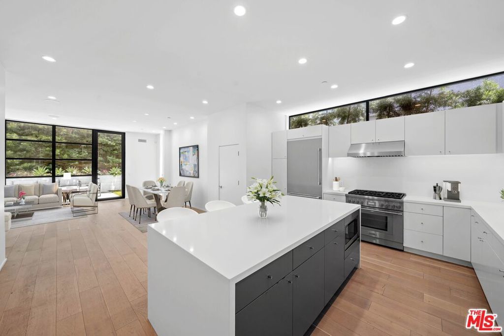 Discover contemporary coastal living at its finest in the coveted Ocean Park neighborhood of Santa Monica, surrounded by popular restaurants, shopping and mere minutes from the beach. Built in 2020, this 3-bedroom, 3-bathroom residence spans 2,106 square feet of beautifully designed living space and is enhanced by smart home tech including surround sound, coded entry, solar, and EV charging. The open-concept first floor features a spacious living and dining area and a modern kitchen equipped with Thermador appliances and ample custom cabinetry. Floor-to-ceiling steel framed windows flood the home with natural light and open from the expansive great room to a private backyard, creating seamless indoor-outdoor flow. With soaring high ceilings, a sophisticated formal entry and a powder bath, the inviting main level is ideal for effortless entertaining or serene everyday living. A laundry area and all three bedrooms are located upstairs, inclusive of the spacious primary suite with a walk-in closet and a luxe bathroom with a dual sink vanity. Set behind an automatic driveway gate for security and peace of mind, the home offers covered parking for two vehicles with an EV charger. Set in a vibrant neighborhood, residents will enjoy convenient access to premier amenities along Main Street, Ocean Avenue, the 3rd Street Promenade, and incredible outdoor activities with the beach just moments away. Seize the opportunity to live the ideal coastal lifestyle at this rare, contemporary residence in a dream Santa Monica location.