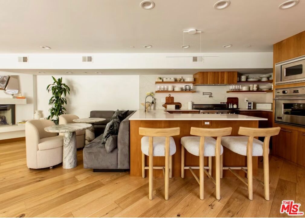 Step outside and you're already living the Venice life. Abbot Kinney's restaurants and boutiques are a 5-minute walk. Erewhon is around the corner. The beach is a quick stroll or bike ride west. Then come home. Tucked inside the intimate six-unit Brooks Avenue Lofts and completely reimagined in 2021 with over $200,000 in premium upgrades, this 2,480 sq ft, 3-bed / 3-bath architectural townhome is offered at $2,295,000 $925/sq ft for a fully finished, move-in-ready home. Leave the car in the garage. You won't need it. The heart of the home is a sun-drenched, open-plan living and kitchen space built for entertaining, anchored by an electric fireplace, wide-plank French oak floors, and a wall of floor-to-ceiling windows. The chef's kitchen is appointed with Viking appliances, a 6-burner professional range, Cambria quartz countertops, a pot-filler, custom LED shelving, and a Vigo farmhouse sink. A versatile bonus room with a roll-up door opens to one of two private outdoor terraces perfect for morning yoga or evening cocktails plus a full bathroom ideal for rinsing off after a beach day. The primary suite occupies the entire second floor and lives like a private retreat, offering its own balcony, fireplace, floor-to-ceiling windows with motorized shades, a generous walk-in closet, and a spa-inspired ensuite with Axor fixtures, a Duravit jetted soaking tub, dual showerheads, and dual Caesarstone vanities. Two additional bedrooms on the third floor, each with custom Italian Murphy beds, share a Jack-and-Jill bathroom with Caesarstone vanities, slate floor tiles, a frameless glass shower, and a heated towel rack. Outside, a jasmine-scented private patio with a Lynx BBQ sets the scene for al fresco dining, while the shared courtyard's built-in fireplace and grill invite gatherings under the stars. A new Navien tankless water heater, secure two-car direct-access garage with EV charging, and ample storage complete the picture. The $800/month HOA covers building insurance, exterior maintenance, roofing, landscaping, termite protection, elevator monitoring, and gate systems true lock-and-leave living. Seller concessions available. Move in and live well.