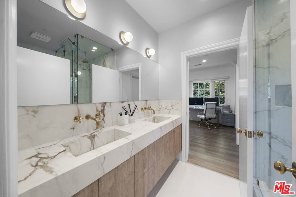 Experience the ultimate in privacy and luxury at this gated estate, An end-of-lane residence boasting exceptional privacy with spectacular breathtaking city lights views from nearly every window. Ideally located south of Ventura Boulevard and overlooking Harvard Westlake School, this sophisticated residence seamlessly blends seclusion with urban convenience. Expansive open spaces and recently remodeled bathrooms throughout with sleek, modern finishes create a bright, elevated atmosphere. The primary suite offers commanding valley views, a private patio, and a spa-inspired bathroom which includes a heated floor and large steam shower experience. Two separate staircases provide effortless access to the upstairs bedrooms and communal areas, enhancing the home's thoughtful flow.The chef's kitchen is equipped with premium appliances and a spacious island counter witha sink, designed for both beauty and function. Outside, a private backyard oasis features a striking lap pool, perfect for leisure or entertaining in total seclusion.Additionalhighlights include updated multi-camera security, easy access to the 101 Freeway, and close proximity to Studio City's acclaimed contemporary casual restaurants andboutique shopping. A true urban retreat that redefines luxury living.