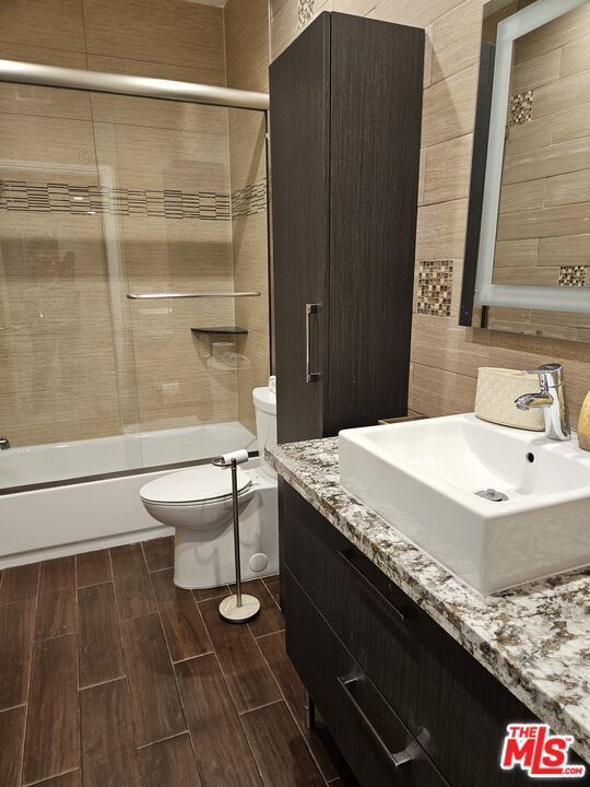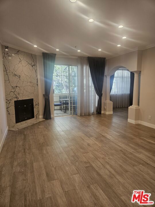 Designers perfect 3 bed 2,5 bath condo near famous Runyon Cyn. Hardwood floors, recessed lights, completely updated bathroom and freshly painted throughout. Kitchen with granite countertops, s/s appliances and breakfast nook. Custom made closets with large walk-in closet in the primary bedroom. Washer/dryer/refrigerator included. The unit comes with 2 SxS parking spaces in the subterranean garage.
