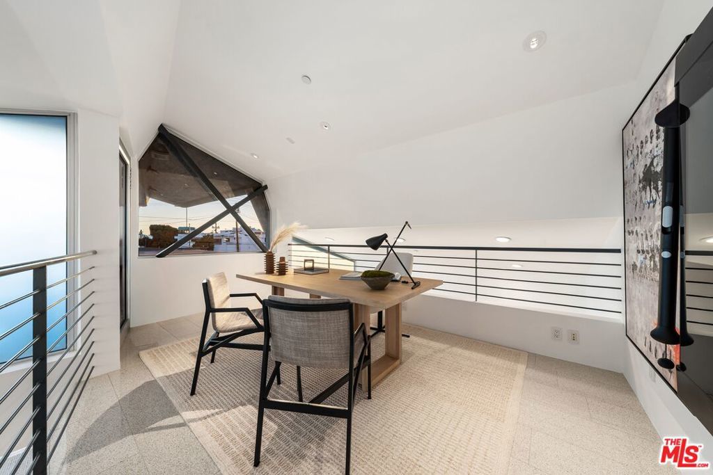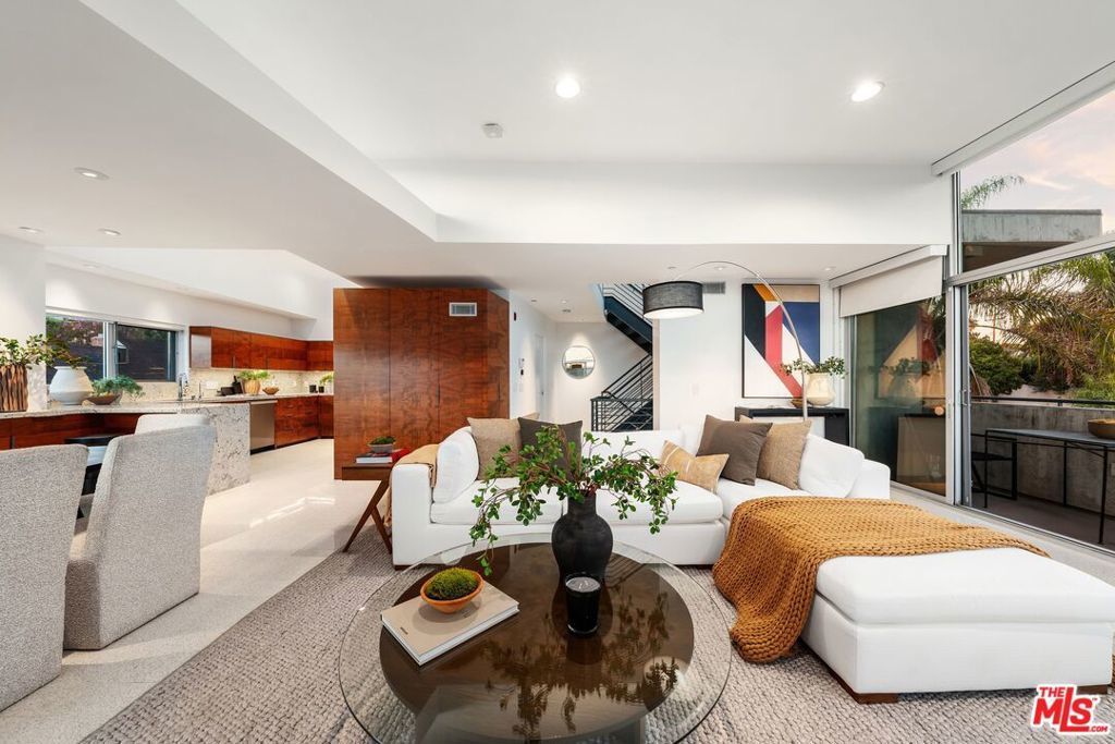 Seller offers a rate buy down to qualified buyer. Located in an architecturally significant building in Ocean Park designed by Michael Folonis, this residence sits in one of the Westside's most desirable neighborhoods. Just moments from the ocean, shops, restaurants, and cafes, it offers the perfect balance of relaxed coastal living and urban convenience. Positioned at the front of a rare three-unit building, the home features glass on three sides, filling the interiors with natural light and refreshing ocean breezes. A dramatic three-story atrium and staircase accentuate the sense of openness. Ceiling heights ranging between 8 and 20 feet create an atmosphere that is at once warm and grand, tied together with thoughtful architectural details. The main living area features floor-to-ceiling glass walls with views stretching toward the ocean, complemented by a balcony ideal for enjoying coastal breezes. The open kitchen and dining area are designed for entertaining, finished with Bianco Romana granite stone, custom wood veneer cabinetry, soaring ceilings, and a clerestory window that floods the space with light. A full bathroom on the main level adds convenience for guests. On the lower level, the spacious primary suite offers Claro Walnut wood veneer closets on two sides and direct access to a private patio enclosed in frosted glass for privacy. The ensuite bathroom showcases Italian Statuarieta stone, dual sinks, a frameless glass waterfall shower with dual Dornbracht fixtures, and sleek finishes throughout. Two additional bedrooms, each generously sized, share a full bathroom also finished in Statuarieta stone. One bedroom includes private outdoor space. Above the main living level, a mezzanine provides the perfect home office or lounge, leading to a private rooftop deck with treetop, neighborhood, and ocean views. This is an exceptional space for year-round entertaining. Additional features include in-unit laundry, secure private access, and two side-by-side parking spaces in a gated underground garage. This is a rare opportunity to live in an architecturally significant residence in the heart of Santa Monica, designed for the most discerning buyer.