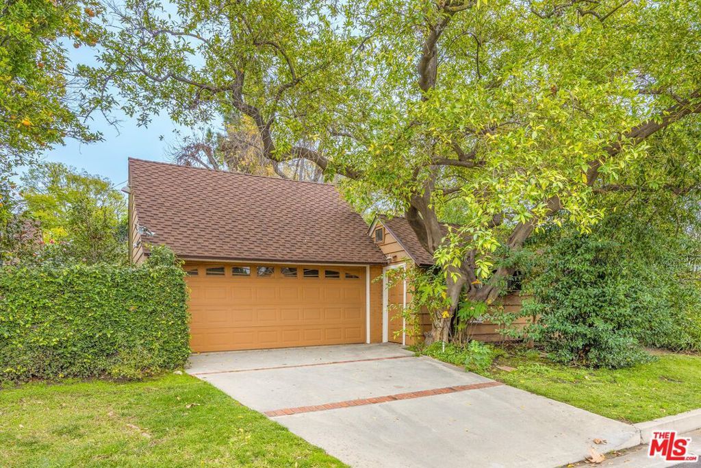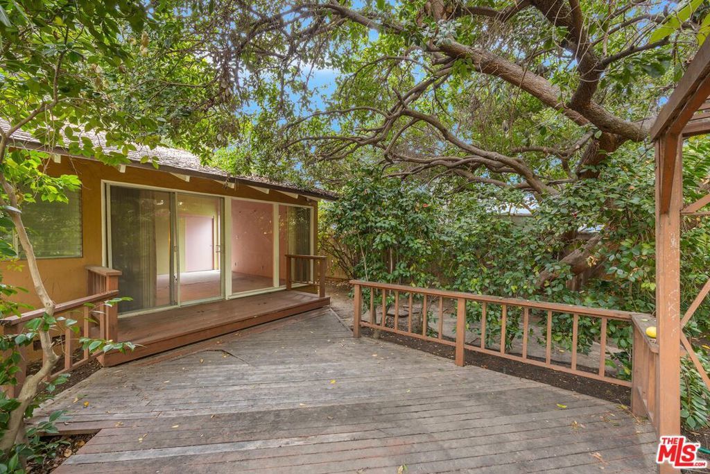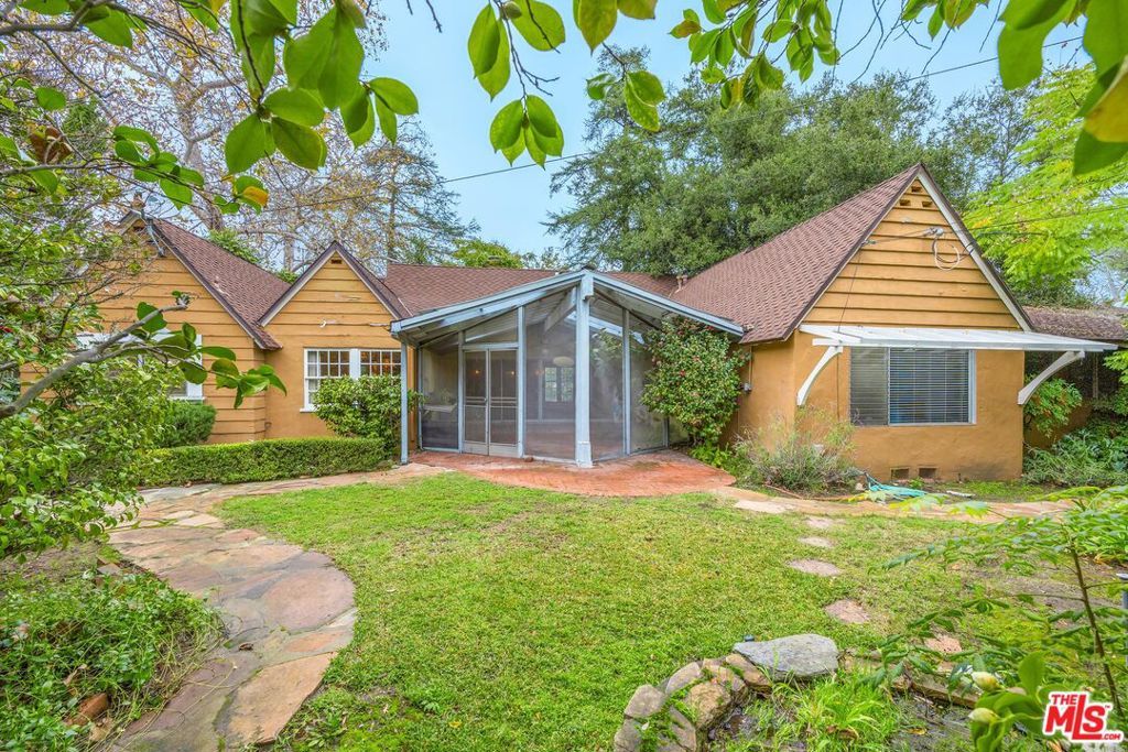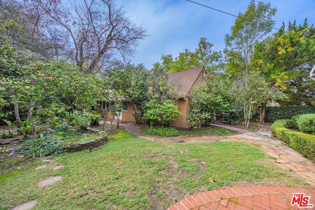 Set on an extraordinary 15,441 sqft corner lot in one of Valley Village's most coveted neighborhoods, this rare offering presents a compelling blend of timeless character, expansive living spaces, and exceptional outdoor space. Held by the same owner for 64 years, the single-level 5BD/2.5BA residence rests on one of the largest lots in the area, offering a truly special opportunity for renovation or redevelopment. A charming, cottage-style entry welcomes you into interiors rich with warmth, featuring hardwood floors and a formal dining room that flows into the kitchen. The living room exudes character with its exposed wood-beamed ceilings, a classic fireplace, and sliding glass doors opening to a sunroom, creating a natural connection between indoor and outdoor living. An additional living area with a built-in bar, additional storage, and a second fireplace offers a versatile setting for entertaining or relaxed gatherings. All bedrooms provide ample closet space, including the spacious primary suite with direct access to the backyard through sliding glass doors. Step outside to a lush, park-like backyard framed by mature trees and anchored by an expansive deck, an idyllic canvas for creating a private outdoor retreat. Additional amenities include a laundry room, detached garage, and a connecting workshop space with strong ADU potential. Ideally located within the highly esteemed Colfax Charter School District and just moments from the shops and dining along Laurel Canyon, this property represents a rare chance to reimagine a legacy home on an oversized lot in a premier neighborhood. An exceptional opportunity for an end user to bring their vision to life.