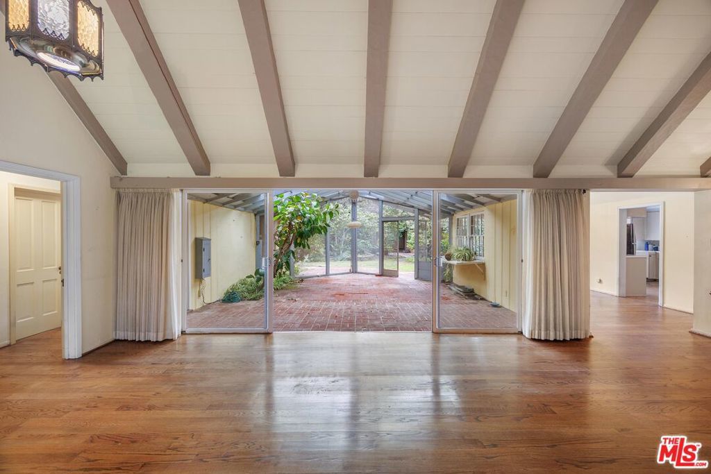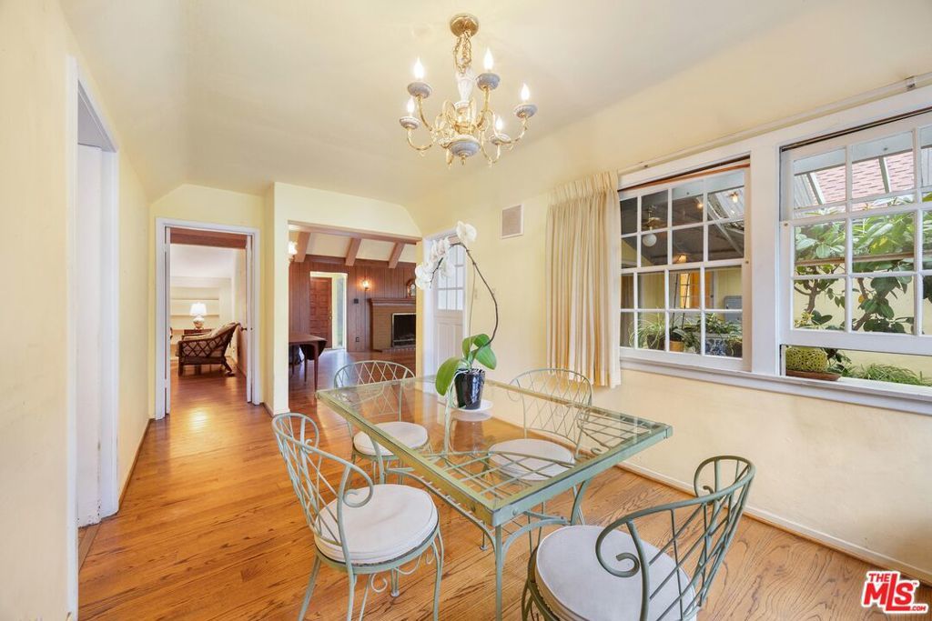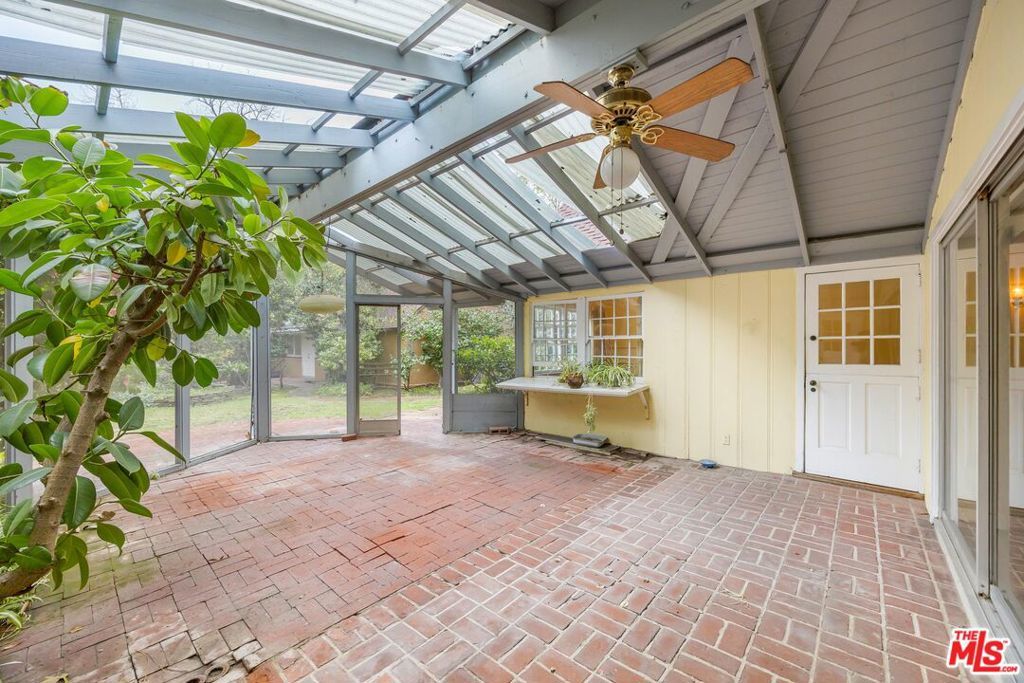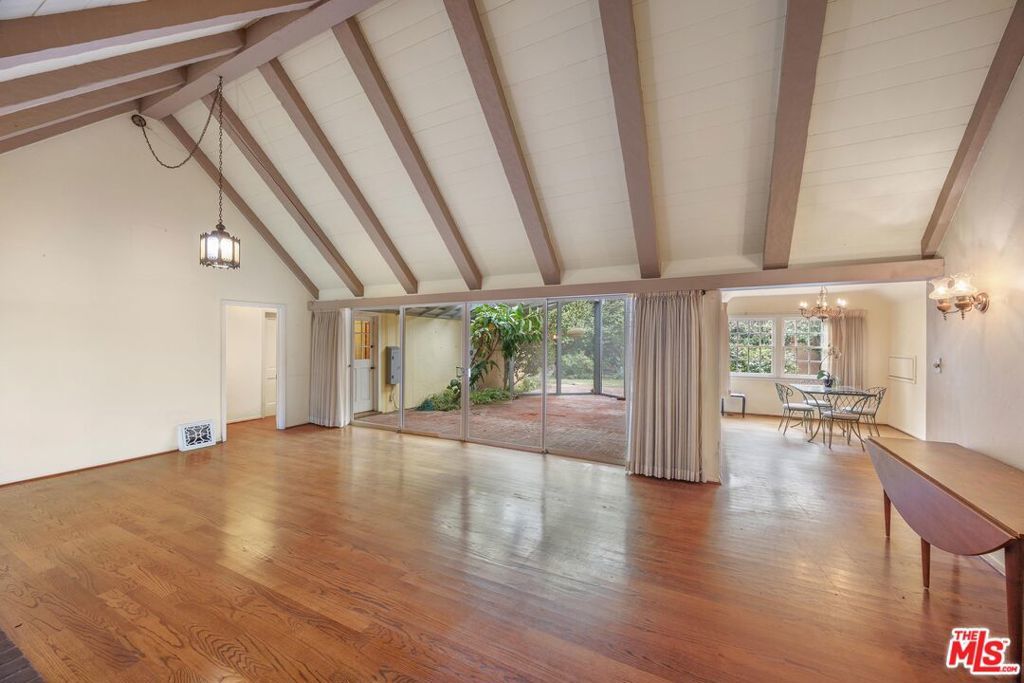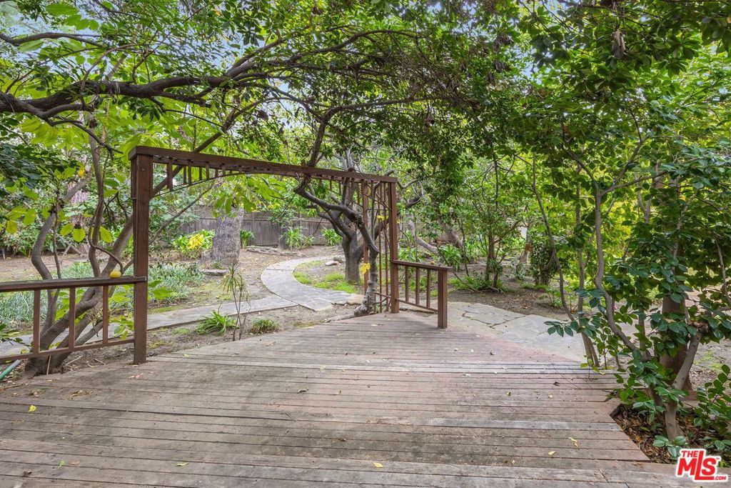 Set on an extraordinary 15,441 sqft corner lot in one of Valley Village's most coveted neighborhoods, this rare offering presents a compelling blend of timeless character, expansive living spaces, and exceptional outdoor space. Held by the same owner for 64 years, the single-level 5BD/2.5BA residence rests on one of the largest lots in the area, offering a truly special opportunity for renovation or redevelopment. A charming, cottage-style entry welcomes you into interiors rich with warmth, featuring hardwood floors and a formal dining room that flows into the kitchen. The living room exudes character with its exposed wood-beamed ceilings, a classic fireplace, and sliding glass doors opening to a sunroom, creating a natural connection between indoor and outdoor living. An additional living area with a built-in bar, additional storage, and a second fireplace offers a versatile setting for entertaining or relaxed gatherings. All bedrooms provide ample closet space, including the spacious primary suite with direct access to the backyard through sliding glass doors. Step outside to a lush, park-like backyard framed by mature trees and anchored by an expansive deck, an idyllic canvas for creating a private outdoor retreat. Additional amenities include a laundry room, detached garage, and a connecting workshop space with strong ADU potential. Ideally located within the highly esteemed Colfax Charter School District and just moments from the shops and dining along Laurel Canyon, this property represents a rare chance to reimagine a legacy home on an oversized lot in a premier neighborhood. An exceptional opportunity for an end user to bring their vision to life.