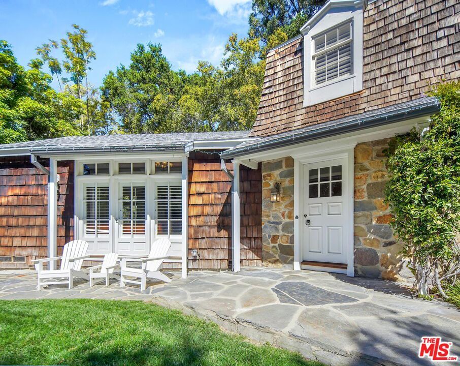 Nestled at the entrance to the ultra-exclusive Rivers Road in Brentwood, this rare John Byers Traditional Country Estate embodies timeless California charm on one of the neighborhood's most coveted gated corner parcels. Approached by a long private driveway, the property unfolds across more than 30,000 square feet of flat, horse-zoned land with majestic mature landscaping. Designed by legendary architect John Byers, the classic country farmhouse exudes warmth and understated elegance. Glorious natural light pours through every window,.The gracious living room with elegant fireplace sets the tone for intimate gatherings, while the gourmet chef's kitchen and adjacent dining area form the heart of the home. A separate guest studio with bath offers flexibility for visitors, a home office, or creative pursuits. Additional features include ample parking, a coveted horse zoning designation, and the extraordinary opportunity to either preserve and enjoy this architectural treasure as-is, expand the existing footprint, or build anew. RTI plans are nearly complete for a +/- 14,000 sqft. estate, with the added benefit of potentially re-addressing the property to prestigious Rivers Road where the gated driveway to the property is located.