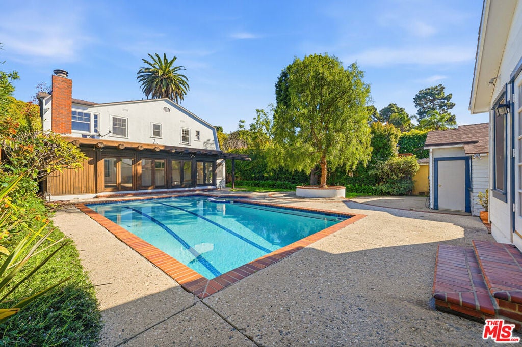 Set on a tree-lined street in Santa Monica's coveted North of Montana neighborhood, this classic two-story traditional offers space, comfort, and an easy indoor-outdoor lifestyle. The home features 4 bedrooms and 2.5 bathrooms across approximately 2,550 sq ft. Upstairs, three bedrooms and two baths provide a peaceful retreat, including a generously scaled primary suite with a dedicated sitting area. Conveniently located, the upstairs laundry room adds everyday ease. Downstairs, a fourth bedroom offers flexibility, while the main level also features gracious living and dining spaces, a functional kitchen with breakfast nook, and an enclosed sunroom that opens to the backyard creating a natural flow for daily living and entertaining. Outdoors, enjoy mature landscaping, a spacious lawn, and a pool and spa, offering a private setting for relaxed afternoons and gatherings. Completing the property is a detached studio with its own bath, ideal for guests, a home office, or creative use, along with a detached two-car garage with alley access. Perfectly situated moments from Montana Avenue, local shops, dining, and the beach, this residence presents the opportunity to lease a home in one of its most desirable neighborhoods.