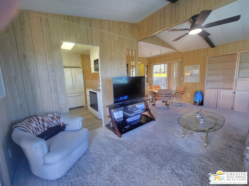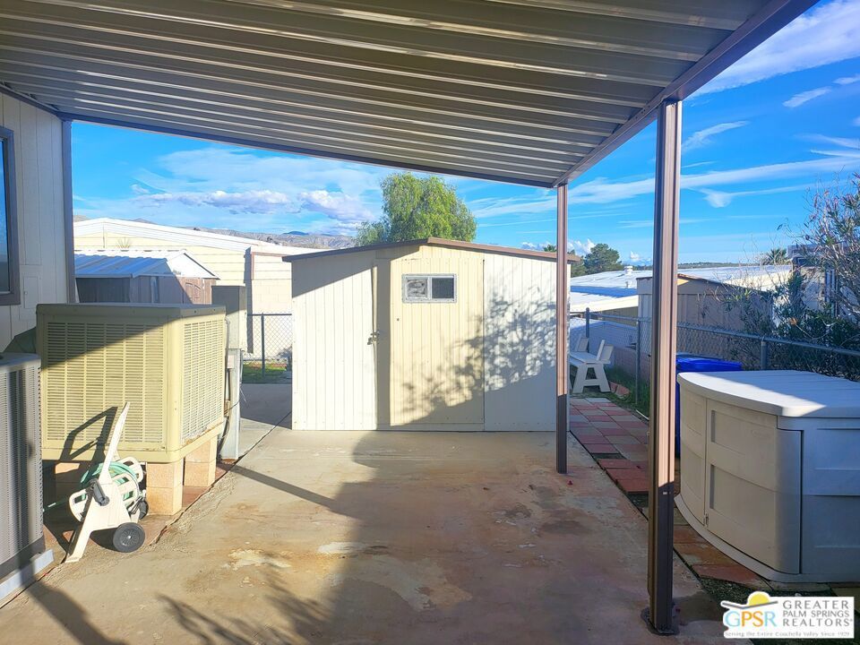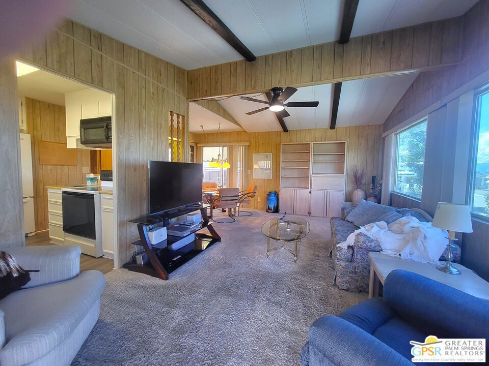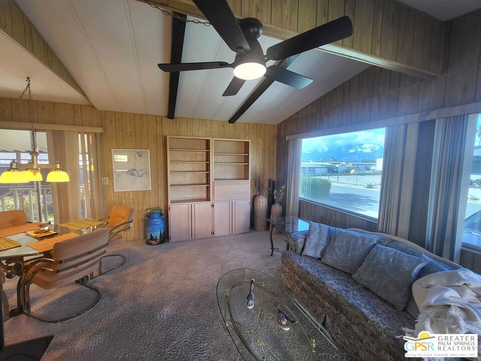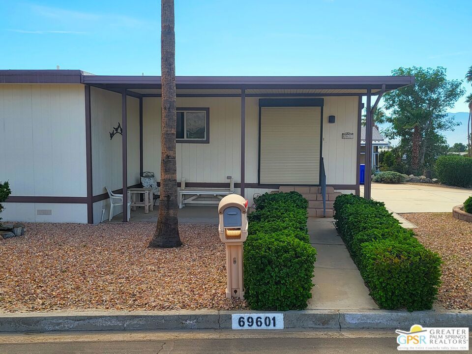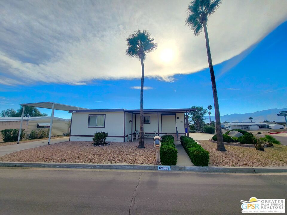 Placed on the North-side edge of the very Active 55+ Golf community of Desert Crest Country Club and in a beautiful rural setting, this wonderful Two Bedroom / Two Bath, 1040 SF manufactured home built in 1978 offers a unique blend of comfort and convenience tailored for those seeking an active and vibrant lifestyle. The rare COVERED RV PARKING especially contributes to your dynamic style of living! Located on the Northern border of Desert Crest Country Club, yet just down the way from the huge Clubhouse, natural mineral spring water Pool & several Spas, and Par-3 golf facilities that are free to the Owners, this home enjoys the perks of a lively lifestyle, surrounded by the scenic beauty of the desert landscape in the Western Coachella Valley. The views are panoramic and fantastic of the Chocolate Hills to the North, and both Mounts San Jacinto and San Gorgonio to the West. The Desert Crest Country Club community boasts a 9-hole golf course, inviting residents to enjoy leisurely rounds amid the picturesque setting of pond and mature trees that boast further views of Mounts San Jacinto and San Gorgonio and the iconic windmills of the Banning Pass. This oasis extends beyond the golf course, offering a multitude of amenities enhancing your daily life. Residents here enjoy a multi-faceted Clubhouse featuring a healthy mineral water Pool and Spas, providing a serene escape and a hub for plenty of social connections. Indoor Shuffleboard and other activities are a welcome diversion here at the Clubhouse, with many interior facilities to keep you moving. The onsite cafe caters to culinary cravings, the dog groomers attend to furry companions, and the real estate office ensures all needs are met with ease. These conveniences foster not just a residence but a sense of belonging within a home and community bound by shared experiences and vibrant camaraderie. At the center of it all you step inside this well-maintained home on the corner of Country Club Drive, and you'll discover its thoughtfully designed interior that includes newer laminate flooring in some rooms. Two Bedrooms and two Baths offer both comfort and functionality, catering to the needs of daily living within a spacious interior. The Master Bedroom Retreat stands as a serene haven, complete with a light and bright walk-in Closet in the Retreat Room through which you enter the Master Bedroom. It is very versatile, easily made into an Office, Media Room, or Sitting Room space. The interior is a haven of natural light, thanks to strategically placed large windows (some of which are fully tinted), creating a welcoming and airy atmosphere. Of special note are the newer appliances, updated plumbing and electrical, and the addition of drywall walls in the master Bedroom. The HV/AC is efficient with an extra ducted Evaporative system. You even have not one but two large Shed tucked away to the rear of the property and ample parking in the West side gated Carport, with covered RV PARKING on the North side. The covered front patio makes an inviting space designed for relaxation and entertainment with full on views of the Desert and North Hills. It's the ideal spot to revel in the beauty of the desert evenings, fostering moments of tranquility and social gatherings. The low-maintenance landscaping, partially fenced for privacy, ensures that upkeep remains effortless, allowing residents to focus on the joys of community living. This home represents a harmonious blend of comfort, style, and functionality, creating a delightfully private haven within the heart of Desert Crest Country Club. Whether indulging in a round of golf, luxuriating in the mineral water Pool and Spas, or simply savoring the serenity of the surroundings from your North deck, this property offers a unique and fulfilling 55+ living experience, where every moment resonates with the essence of a life well-lived.