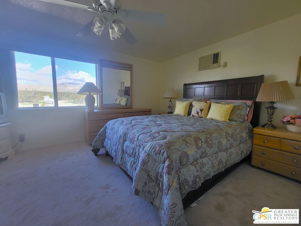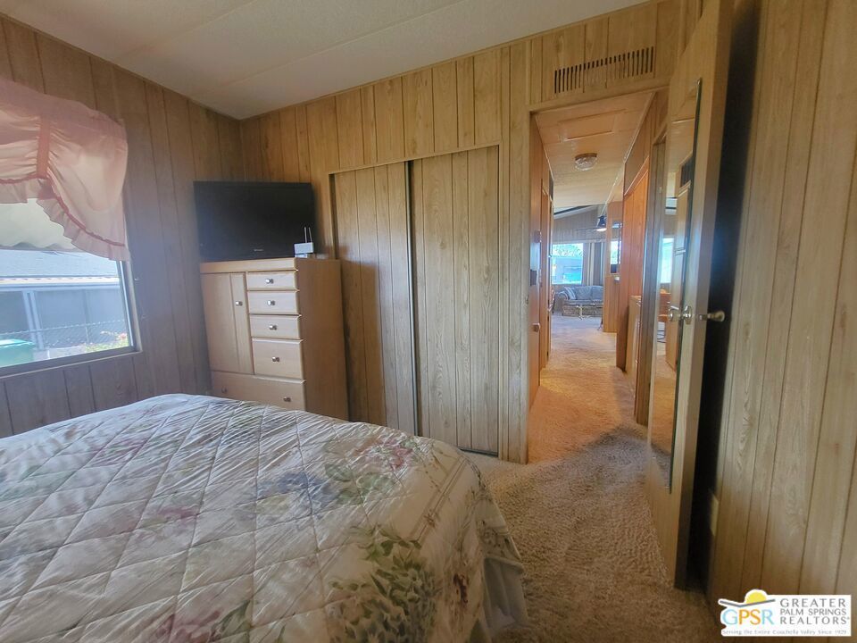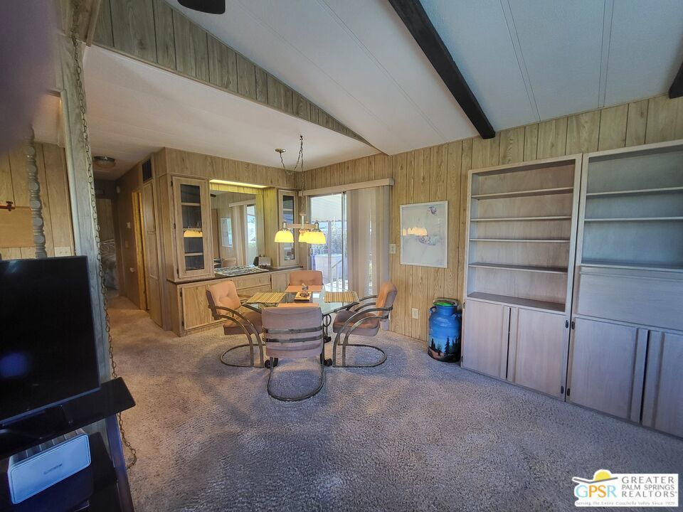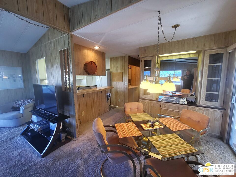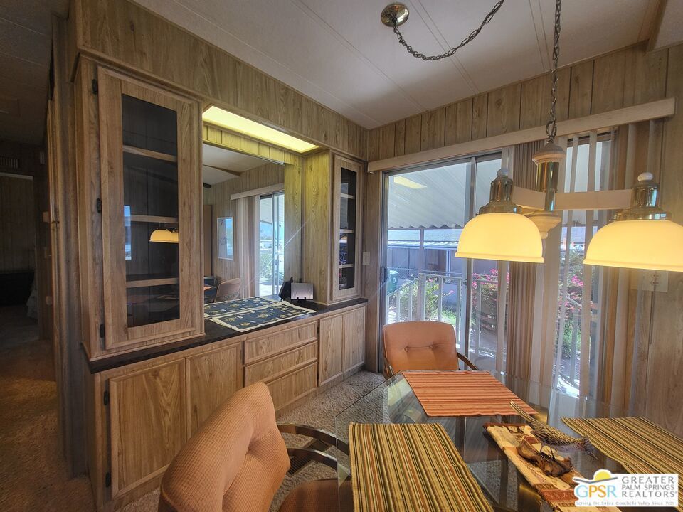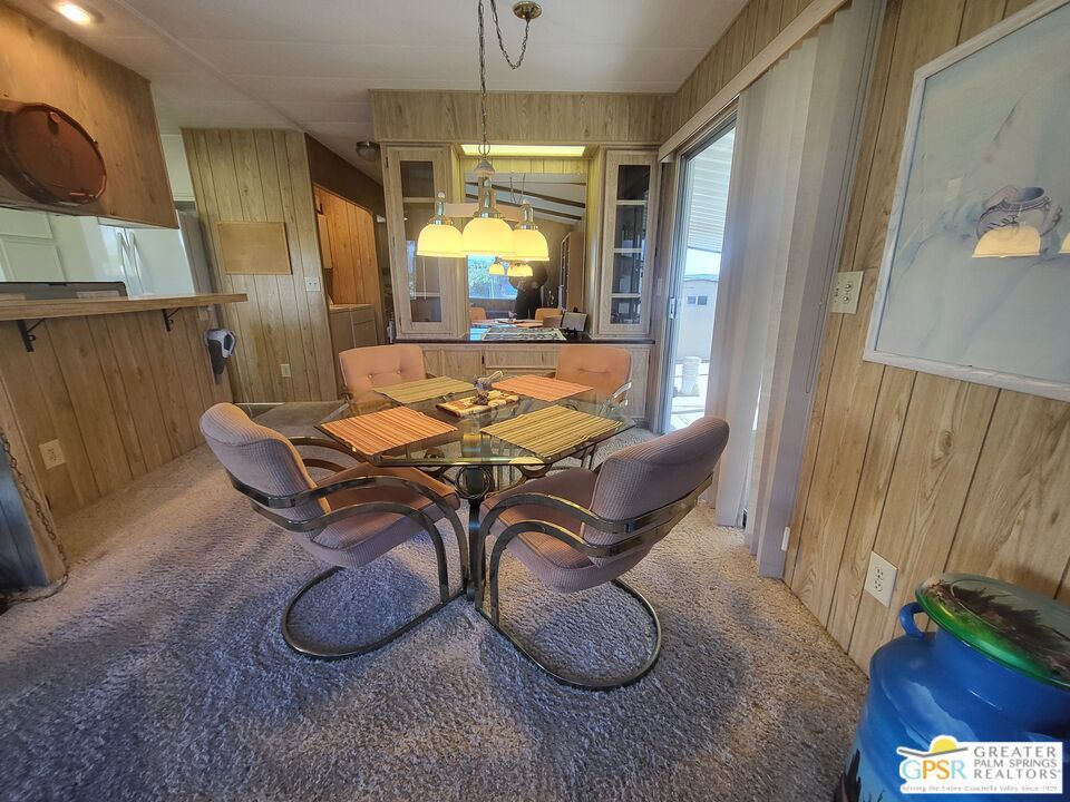 Placed on the North-side edge of the very Active 55+ Golf community of Desert Crest Country Club and in a beautiful rural setting, this wonderful Two Bedroom / Two Bath, 1040 SF manufactured home built in 1978 offers a unique blend of comfort and convenience tailored for those seeking an active and vibrant lifestyle. The rare COVERED RV PARKING especially contributes to your dynamic style of living! Located on the Northern border of Desert Crest Country Club, yet just down the way from the huge Clubhouse, natural mineral spring water Pool & several Spas, and Par-3 golf facilities that are free to the Owners, this home enjoys the perks of a lively lifestyle, surrounded by the scenic beauty of the desert landscape in the Western Coachella Valley. The views are panoramic and fantastic of the Chocolate Hills to the North, and both Mounts San Jacinto and San Gorgonio to the West. The Desert Crest Country Club community boasts a 9-hole golf course, inviting residents to enjoy leisurely rounds amid the picturesque setting of pond and mature trees that boast further views of Mounts San Jacinto and San Gorgonio and the iconic windmills of the Banning Pass. This oasis extends beyond the golf course, offering a multitude of amenities enhancing your daily life. Residents here enjoy a multi-faceted Clubhouse featuring a healthy mineral water Pool and Spas, providing a serene escape and a hub for plenty of social connections. Indoor Shuffleboard and other activities are a welcome diversion here at the Clubhouse, with many interior facilities to keep you moving. The onsite cafe caters to culinary cravings, the dog groomers attend to furry companions, and the real estate office ensures all needs are met with ease. These conveniences foster not just a residence but a sense of belonging within a home and community bound by shared experiences and vibrant camaraderie. At the center of it all you step inside this well-maintained home on the corner of Country Club Drive, and you'll discover its thoughtfully designed interior that includes newer laminate flooring in some rooms. Two Bedrooms and two Baths offer both comfort and functionality, catering to the needs of daily living within a spacious interior. The Master Bedroom Retreat stands as a serene haven, complete with a light and bright walk-in Closet in the Retreat Room through which you enter the Master Bedroom. It is very versatile, easily made into an Office, Media Room, or Sitting Room space. The interior is a haven of natural light, thanks to strategically placed large windows (some of which are fully tinted), creating a welcoming and airy atmosphere. Of special note are the newer appliances, updated plumbing and electrical, and the addition of drywall walls in the master Bedroom. The HV/AC is efficient with an extra ducted Evaporative system. You even have not one but two large Shed tucked away to the rear of the property and ample parking in the West side gated Carport, with covered RV PARKING on the North side. The covered front patio makes an inviting space designed for relaxation and entertainment with full on views of the Desert and North Hills. It's the ideal spot to revel in the beauty of the desert evenings, fostering moments of tranquility and social gatherings. The low-maintenance landscaping, partially fenced for privacy, ensures that upkeep remains effortless, allowing residents to focus on the joys of community living. This home represents a harmonious blend of comfort, style, and functionality, creating a delightfully private haven within the heart of Desert Crest Country Club. Whether indulging in a round of golf, luxuriating in the mineral water Pool and Spas, or simply savoring the serenity of the surroundings from your North deck, this property offers a unique and fulfilling 55+ living experience, where every moment resonates with the essence of a life well-lived.