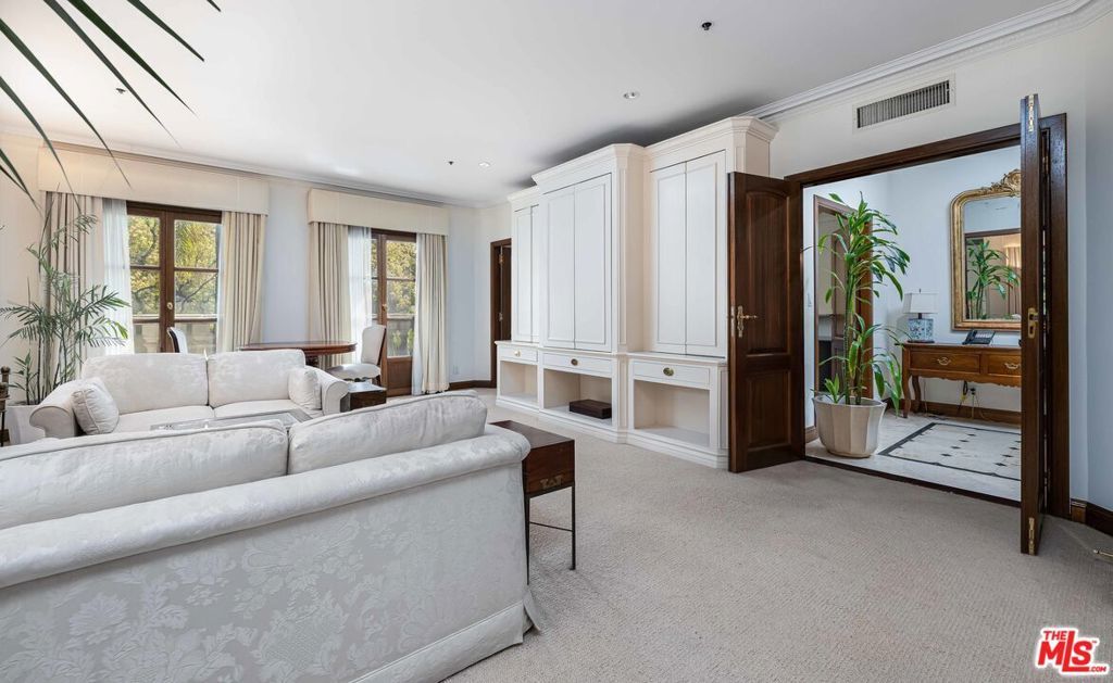 The Le Faubourg St. Louis is now offering a unique opportunity to lease a residence in the most elegant full service building in 90210! Prime Beverly Hills location close to Rodeo Drive, shopping, restaurants, Beverly Gardens Park & much more! This exquisitely furnished 3 bedroom, 5 bathroom features marble hallways, a spacious living room with fireplace, a beautiful formal dining area with chandelier, and chef's kitchen! En-suite bathrooms, spacious soaking tub & shower. Large walk in closet with a fabulous dressing room. This corner unit has French doors with Juliet balconies overlooking the quiet tree-lined street. The iconic building features full service amenities that include concierge, 24/7 on site security, automatic gate access, controlled entrance, fitness center, outdoor lounge area, pool & spa!