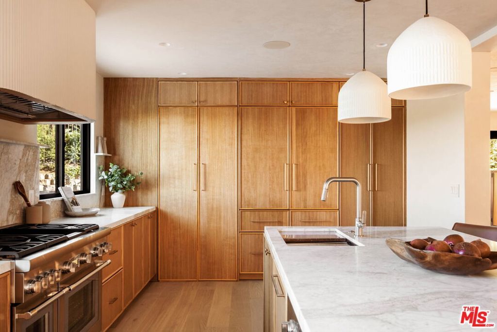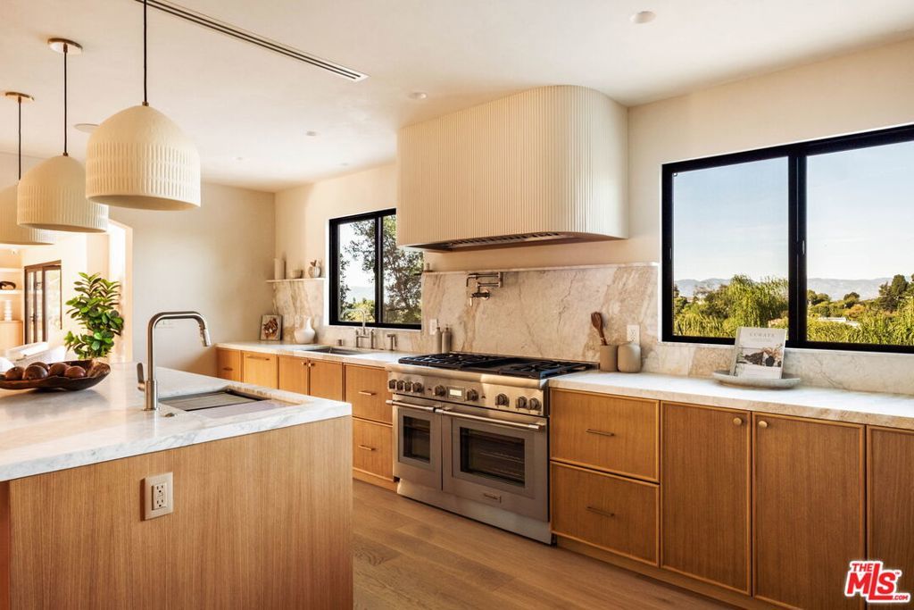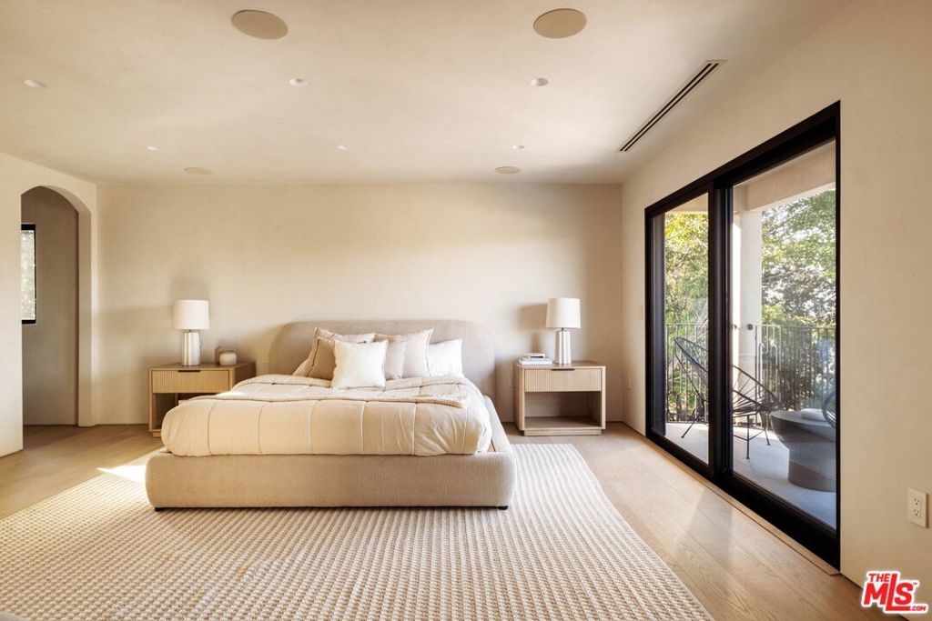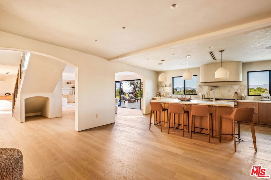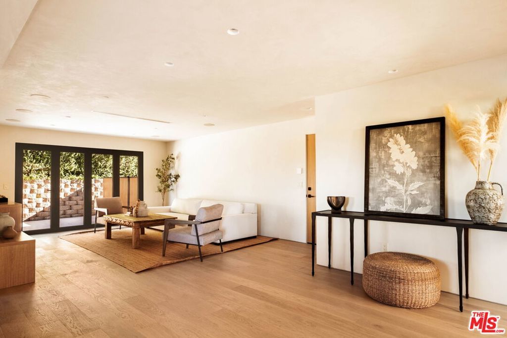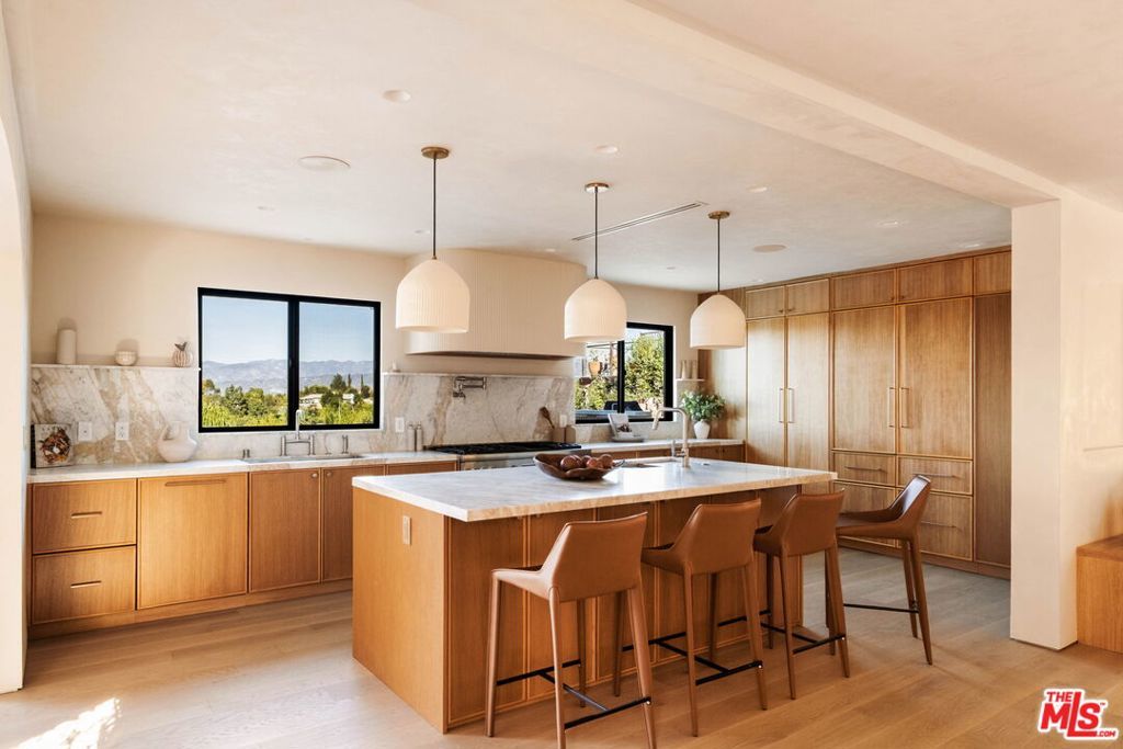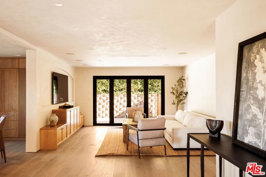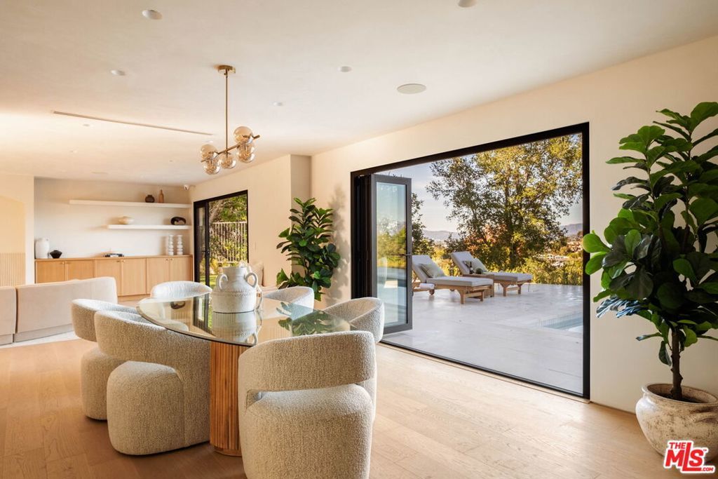 Welcome to Casa Lisa, an Organic Tulum inspired sanctuary designed around natural living and effortless flow, set in the hills of Studio City. Rebuilt from the foundation up, this 5 bedroom, 6 bath residence spans approximately 3,859 square feet and is rooted in a philosophy where materials, light, and space work in harmony. Every finish was selected for its texture, warmth, and ability to age beautifully, creating a home that feels both elevated and deeply livable. Interiors are defined by Portola Roman clay walls, custom oak cabinetry and flooring, and marble and travertine stone surfaces, materials chosen not only for their beauty but for the calm, breathable environment they create. Soft architectural arches and open sightlines encourage natural movement through the home, while expansive bi folding doors dissolve the boundary between indoors and out, allowing fresh air, natural light, and greenery to become part of everyday living. The outdoors are an extension of the home's organic lifestyle. Surrounded by lush tropical landscaping, the property offers a rare, expansive grassy yard, a saltwater sport pool with dual Baja shelves, spa, outdoor kitchen, fireplace lounge, and outdoor shower, thoughtfully designed to support both restoration and gathering. A private en suite room on the main level provides flexibility as a bedroom or a serene home office, ideal for those who work from home and value separation without disconnection. Upstairs, each en suite bedroom offers peaceful views, while the primary suite serves as a personal retreat with a walk in closet, coffee nook, spa inspired bath, and balcony overlooking the yard and pool. Fully gated and enhanced by a Crestron smart home system controlling lighting, music, and security, Casa Lisa is located south of Ventura Boulevard within the Carpenter School District. Grounded, intentional, and timeless, Casa Lisa is a home where organic materials and modern living exist in perfect balance.