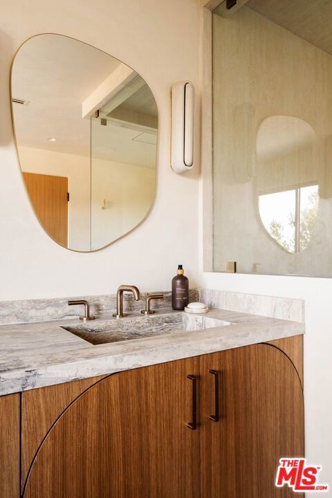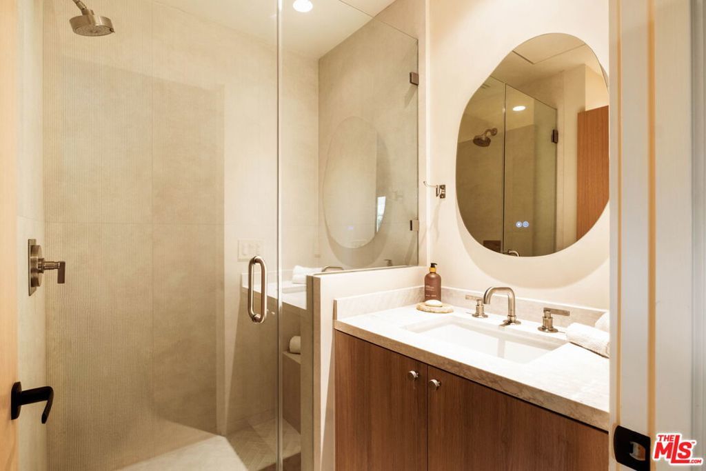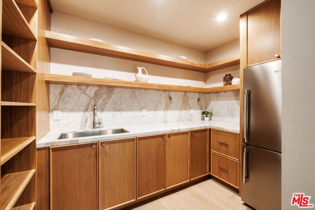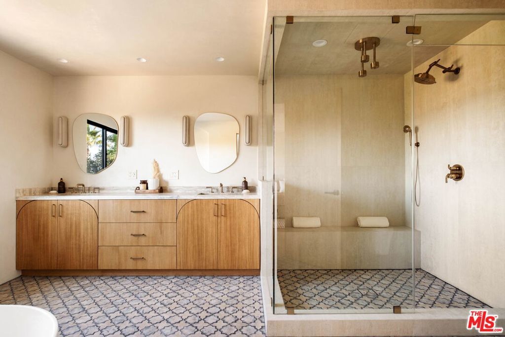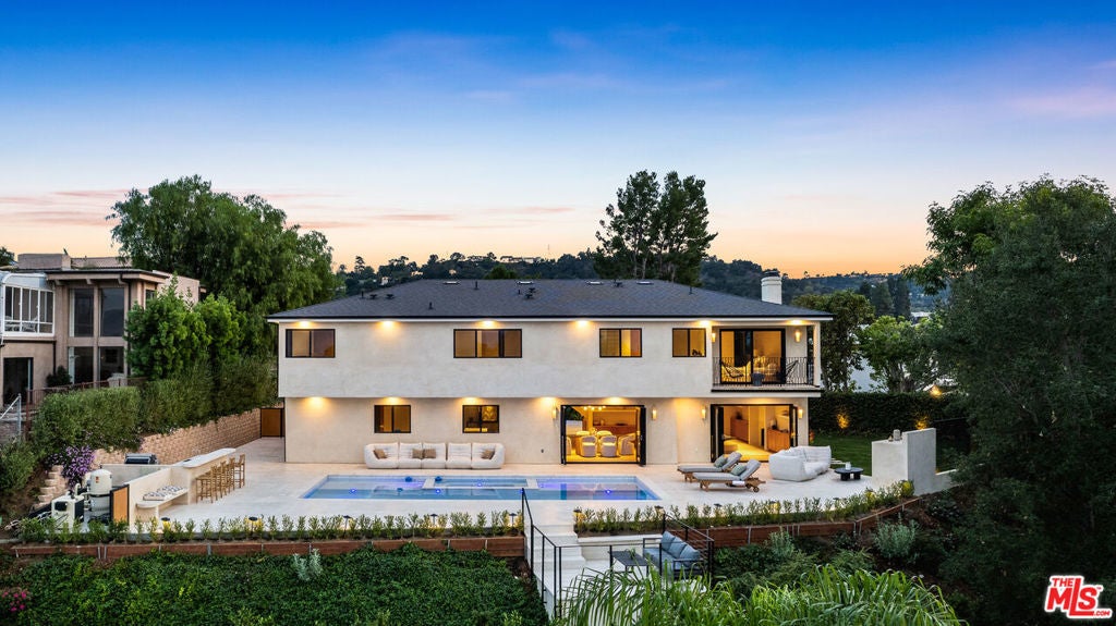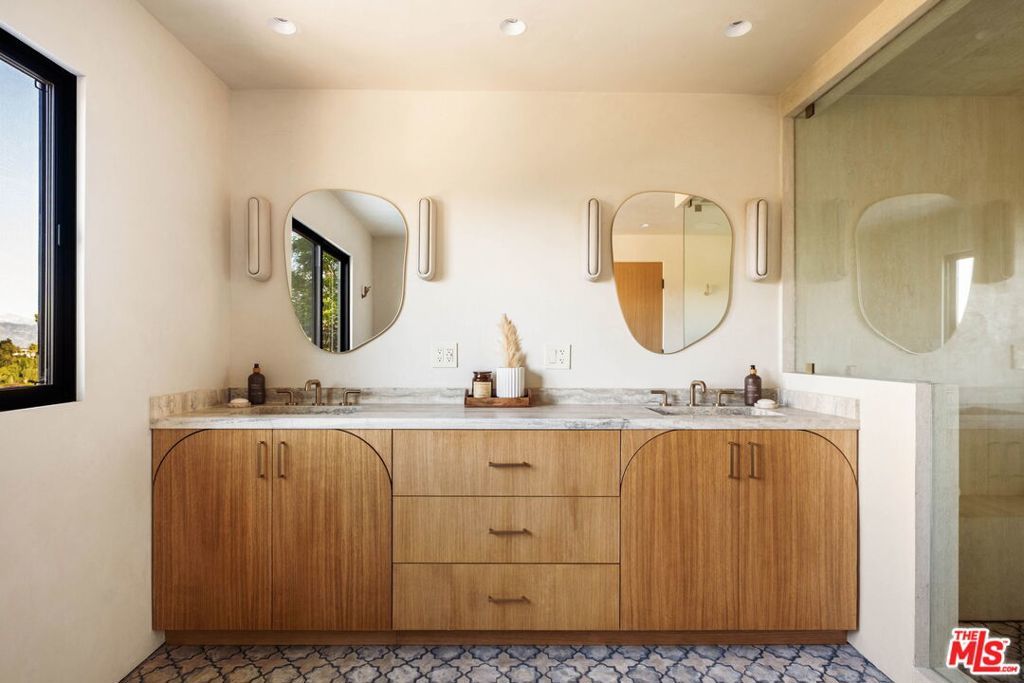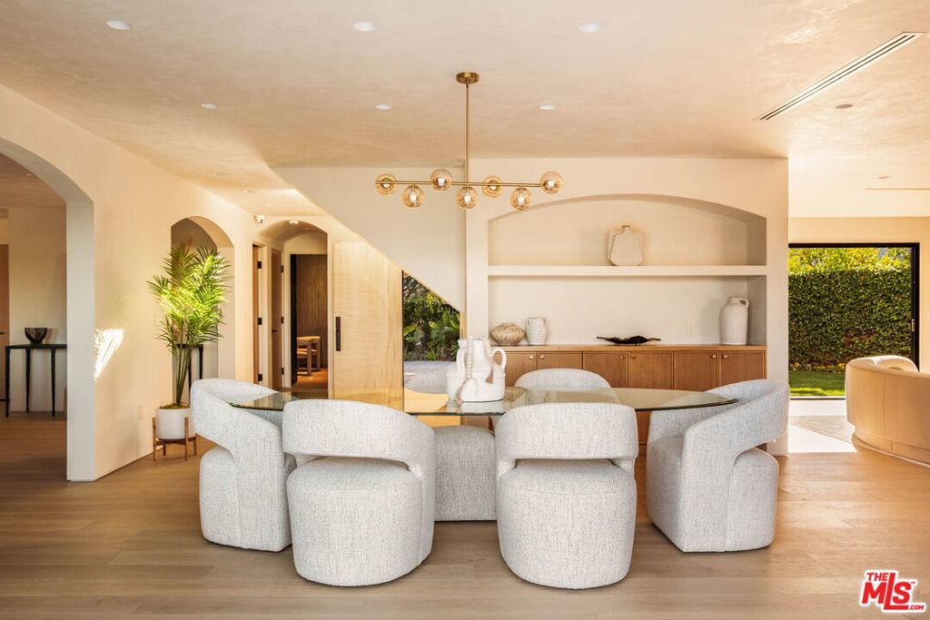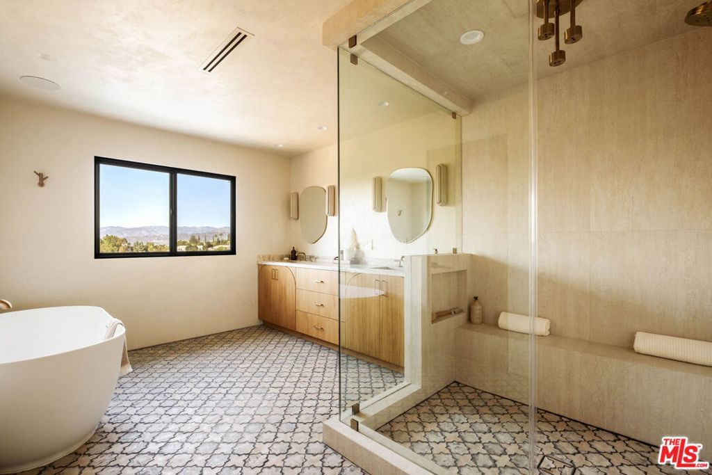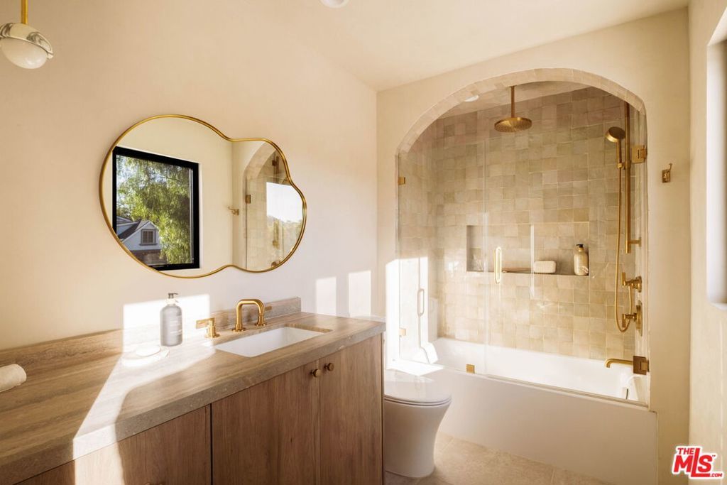 Welcome to Casa Lisa, an Organic Tulum inspired sanctuary designed around natural living and effortless flow, set in the hills of Studio City. Rebuilt from the foundation up, this 5 bedroom, 6 bath residence spans approximately 3,859 square feet and is rooted in a philosophy where materials, light, and space work in harmony. Every finish was selected for its texture, warmth, and ability to age beautifully, creating a home that feels both elevated and deeply livable. Interiors are defined by Portola Roman clay walls, custom oak cabinetry and flooring, and marble and travertine stone surfaces, materials chosen not only for their beauty but for the calm, breathable environment they create. Soft architectural arches and open sightlines encourage natural movement through the home, while expansive bi folding doors dissolve the boundary between indoors and out, allowing fresh air, natural light, and greenery to become part of everyday living. The outdoors are an extension of the home's organic lifestyle. Surrounded by lush tropical landscaping, the property offers a rare, expansive grassy yard, a saltwater sport pool with dual Baja shelves, spa, outdoor kitchen, fireplace lounge, and outdoor shower, thoughtfully designed to support both restoration and gathering. A private en suite room on the main level provides flexibility as a bedroom or a serene home office, ideal for those who work from home and value separation without disconnection. Upstairs, each en suite bedroom offers peaceful views, while the primary suite serves as a personal retreat with a walk in closet, coffee nook, spa inspired bath, and balcony overlooking the yard and pool. Fully gated and enhanced by a Crestron smart home system controlling lighting, music, and security, Casa Lisa is located south of Ventura Boulevard within the Carpenter School District. Grounded, intentional, and timeless, Casa Lisa is a home where organic materials and modern living exist in perfect balance.