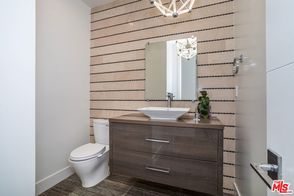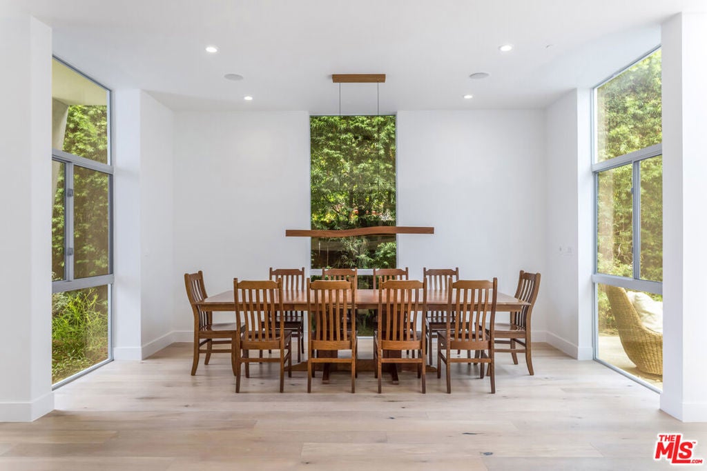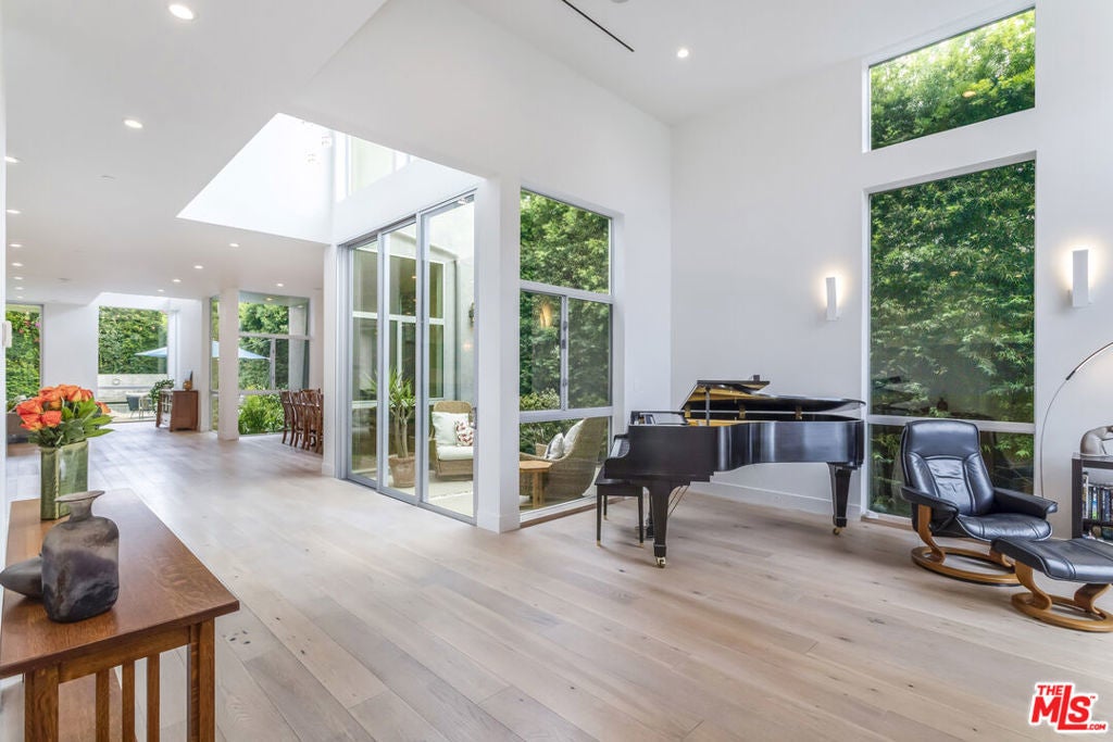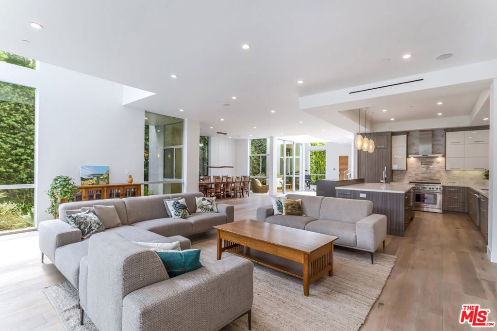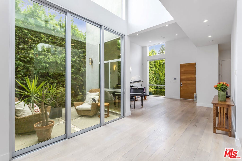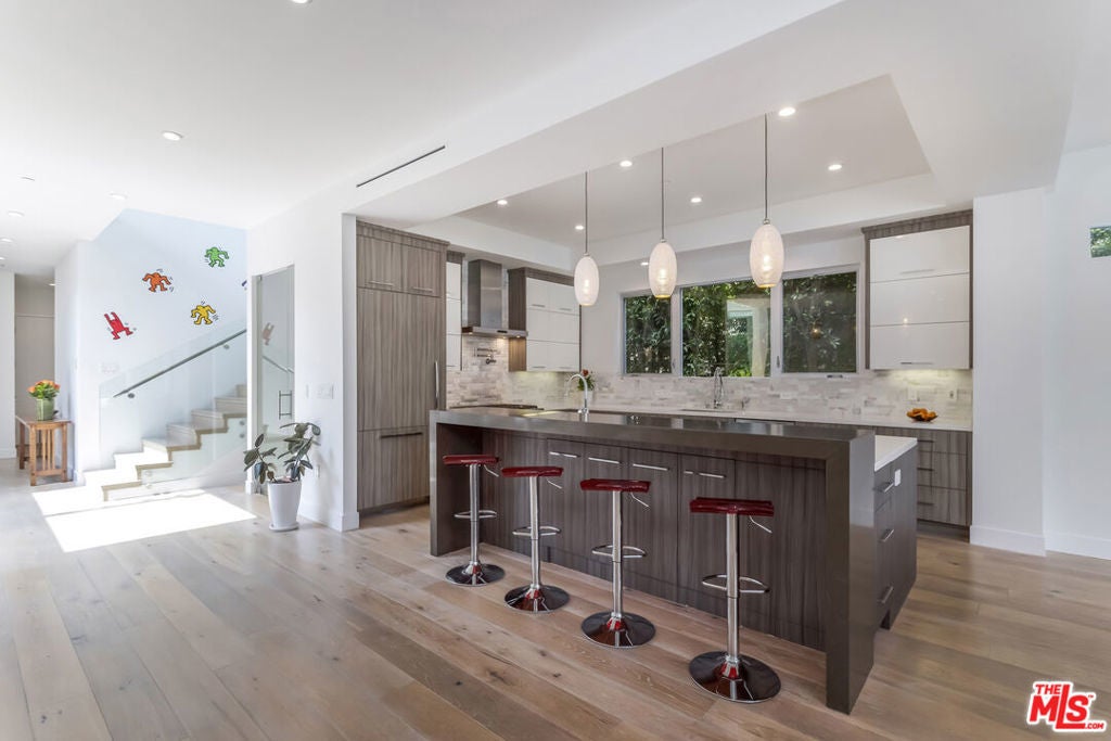 Nestled on a quiet street in the serene Mar Vista neighborhood, 3728 South Barrington Avenue is a stunning architectural home on a generous 8,591 square foot lot. This modern residence, encompassing 3,799 square feet, welcomes you with a dramatic 14-foot ceiling entry and expansive walls of glass that fill the space with natural light, highlighting the elegant refinished wood floors. The thoughtfully designed interior includes a private office, four spacious bedrooms, each with its own ensuite bathroom. The chef's kitchen serves as the heart of the home, featuring an oversized island, Calcutta marble backsplash, and top-tier Thermador appliances, including a new oven and dishwasher. Entertain in style with the formal dining room and integrated speakers throughout this stylish haven. Relax in the expansive great room, complete with a fireplace and 10-foot sliding doors that open to a private, hedge-lined yard with a covered patio and a wide lap pool, and spa, solar heated, with new cover & new electronic control system. The primary suite offers a tranquil retreat with an 11-foot ceiling, fireplace, walk-in closet, and a private deck overlooking the pool. The spa-like bathroom features floor-to-ceiling Calcutta marble, an oversized shower, soaking tub, and dual sink vanity. Additional amenities include a two-car attached garage with 220 EV Charging Plug, tankless water heater, smart home readiness, and a new aluminum electronic slide front gate, ensuring both convenience and security. This Mar Vista gem is an entertainer's delight, perfectly blending luxury and modern living.