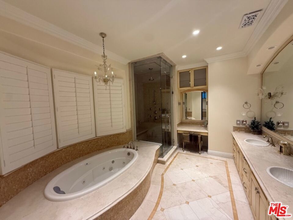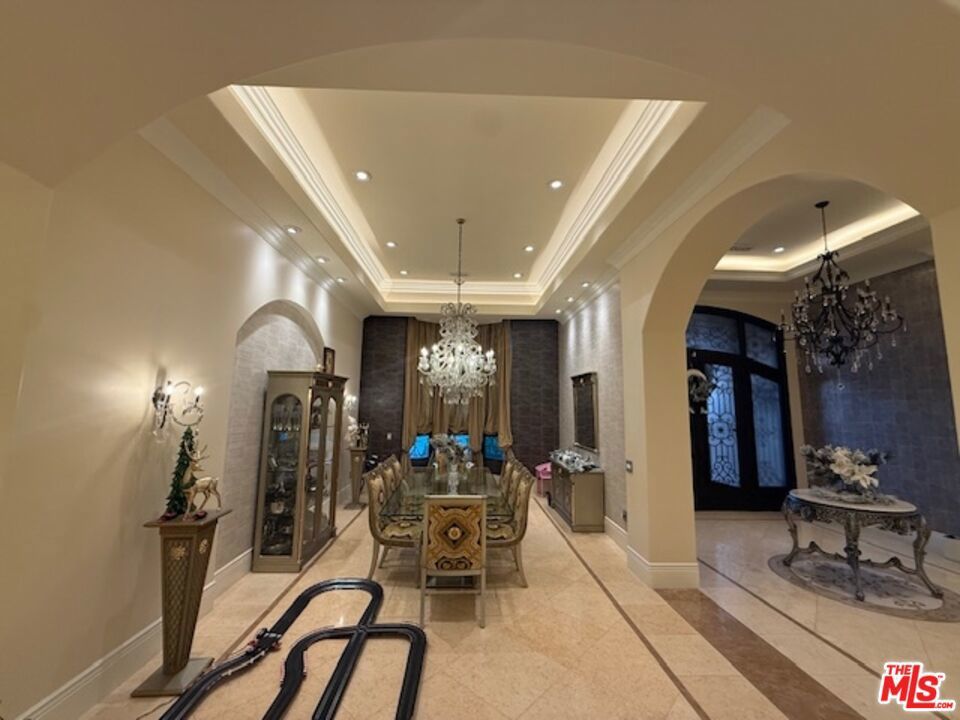 Built in 2008, this single-story gated Mediterranean Villa is an architectural masterpiece that combines privacy, prestige, and unmatched craftsmanship. A dramatic entry with soaring ceilings, imported marble with onyx inlay, and 24" Italian limestone floors sets the tone for the open, elegant floor plan. Designed for grand entertaining, Milgard French doors create seamless indoor-outdoor living, opening to travertine-tiled patios, a PebbleTec pool with Bellagio-inspired mosaic stone coping, an elevated spa, and a cascading waterfall with jet sprays. The outdoor kitchen and loggia are fully equipped with granite counters, Viking grill, warming drawer, and refrigeratorperfect for California living at its finest. The chef's kitchen features custom solid hardwood and beveled glass cabinetry, a large granite island, and professional-grade Miele and Thermador appliances. The primary suite offers a luxurious retreat with a spa-like bathroom and oversized walk-in closet. Spacious secondary bedrooms each feature lavish en suite baths. Additional highlights include a grand living room, formal living room with full bar, elegant dining room, premium interior and exterior lighting, and fully owned solar. Every detail of this trophy estate reflects uncompromising quality and timeless design. Buyer's agent and buyer are advised to perform their own due diligence on all information provided in this listing. Seller and seller's agent make no guarantees and shall not be held responsible for any inaccuracies.