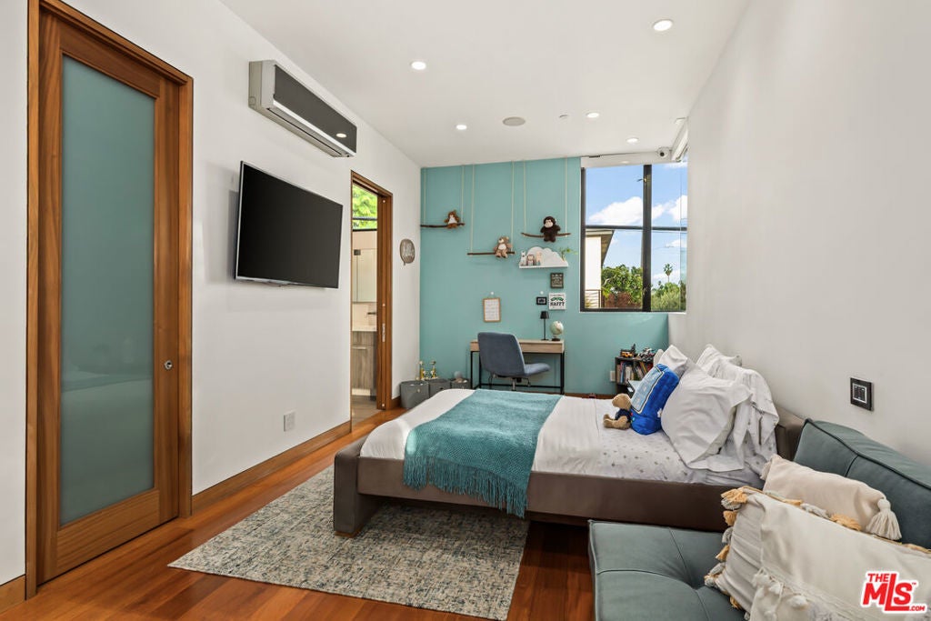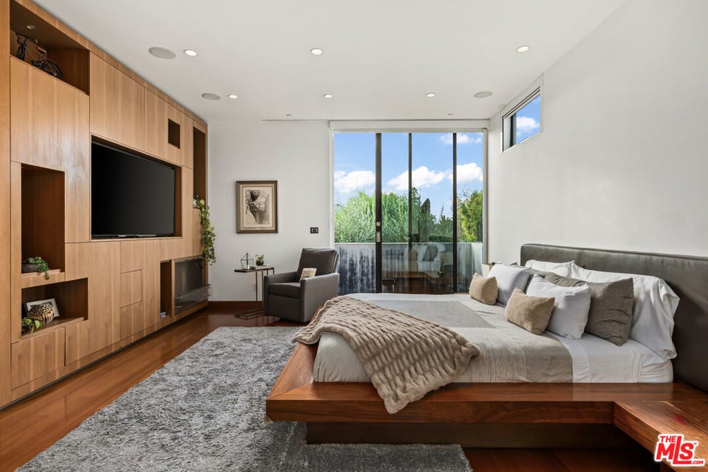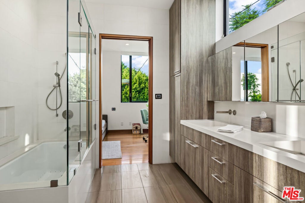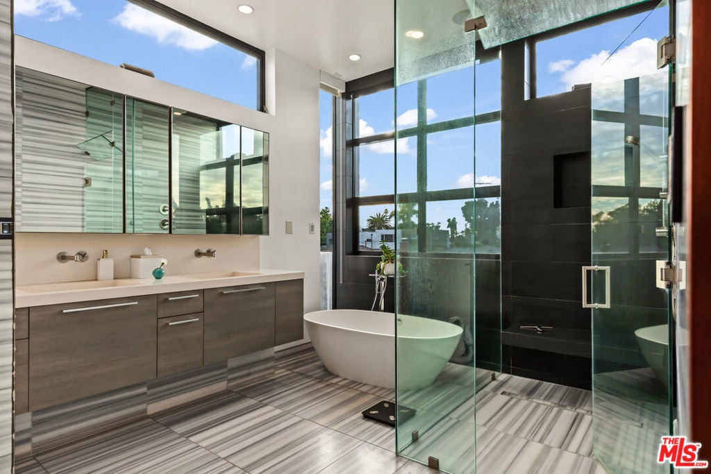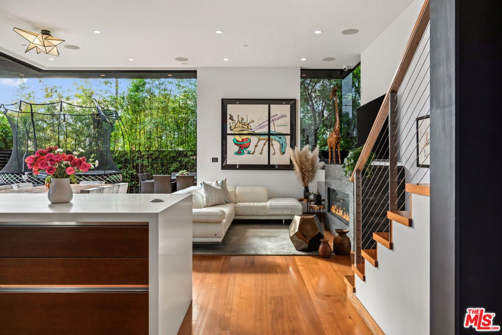 Situated in Venice's coveted Silver Triangle, welcome to this architectural home designed by David Hertz, known as The Butterfly House, a rare union of design pedigree and effortless livability, thoughtfully crafted for coastal life at its most elevated. Past a discreet facade, the house opens in one sweep: pocketing walls of glass dissolve the boundary between the great room and a lush, private courtyard where a slender lap pool and spa run alongside warm decking and verdant living walls. Inside, engineered teak floors and soaring ceilings set a calm, modern tone, while the open kitchen integrates appliances and beautifully detailed cabinetry, framing everyday life and easy entertaining. The flow is intuitive: dine with the sliders open to the outside, linger by the sleek fireplace, then drift upstairs along a sculptural stair to a mezzanine that overlooks it all. Performance quietly powers the experience. Radiant-heated floors carry warmth throughout. A full Crestron system puts the home in your pocket, open and close windows, tune whole-home surround sound, and manage heat in every zone thanks to split systems in each room. The structure is engineered for longevity and quiet, from robust glazing and invisible hinges to an exterior air barrier with stainless-steel cladding accents. The house even self-ventilates for fresh air, while extensive wiring and interior/exterior security cameras provide modern peace of mind. The private primary suite is a sanctuary: a sunlit retreat with custom-built-in storage, terrace-like views into mature greenery, and a generous walk-in closet. Its spa-level bath pairs a freestanding soaking tub with a glass shower and dual vanities, all bathed in soft natural light, an everyday ritual made luxurious. The second and third bedrooms are thoughtfully placed, with a Jack-and-Jill bathroom that maximizes flexibility for family or guests. Two laundry rooms simplify daily rhythms, and the rear building's interior walls are non-structuraloffering future-proofing for whatever you imagine next. Sustainability is built in, not bolted on. Solar power and solar thermal tubes preheat domestic water before it reaches the heater, with any surplus heat directed to the pool; the home runs predominantly electric with a single auxiliary gas burner. From African mahogany Sapelle doors to exceptionally strong glass, every material choice reflects lasting quality. And because everything is wired and thoughtfully automated, you can arrive to comfort, windows, music, and radiant heat set just how you like, at the touch of a phone. Moments to the Venice Canals, Abbot Kinney, Rose Avenue, and the beach, this move-in-ready residence distills the best of the Silver Triangle: an architectural statement that lives beautifully, functions intelligently, and delivers resort-style tranquility right where you want to be.