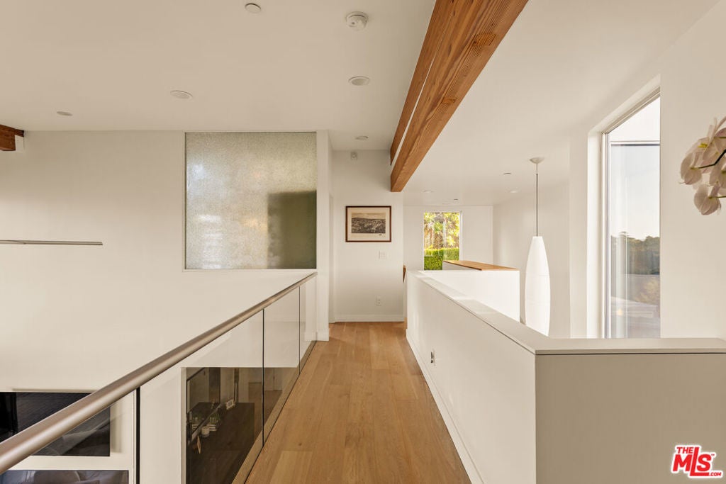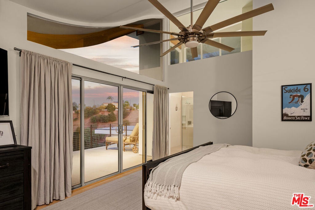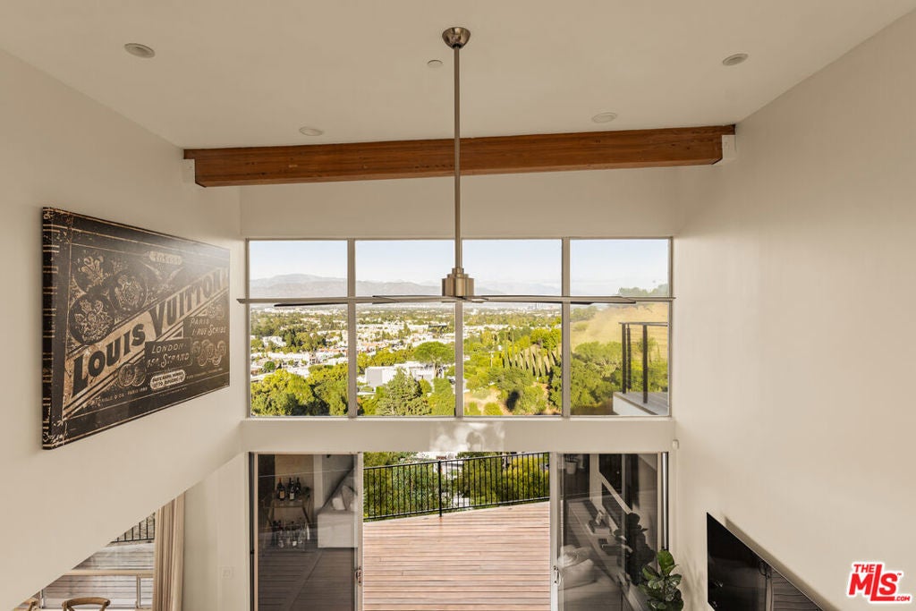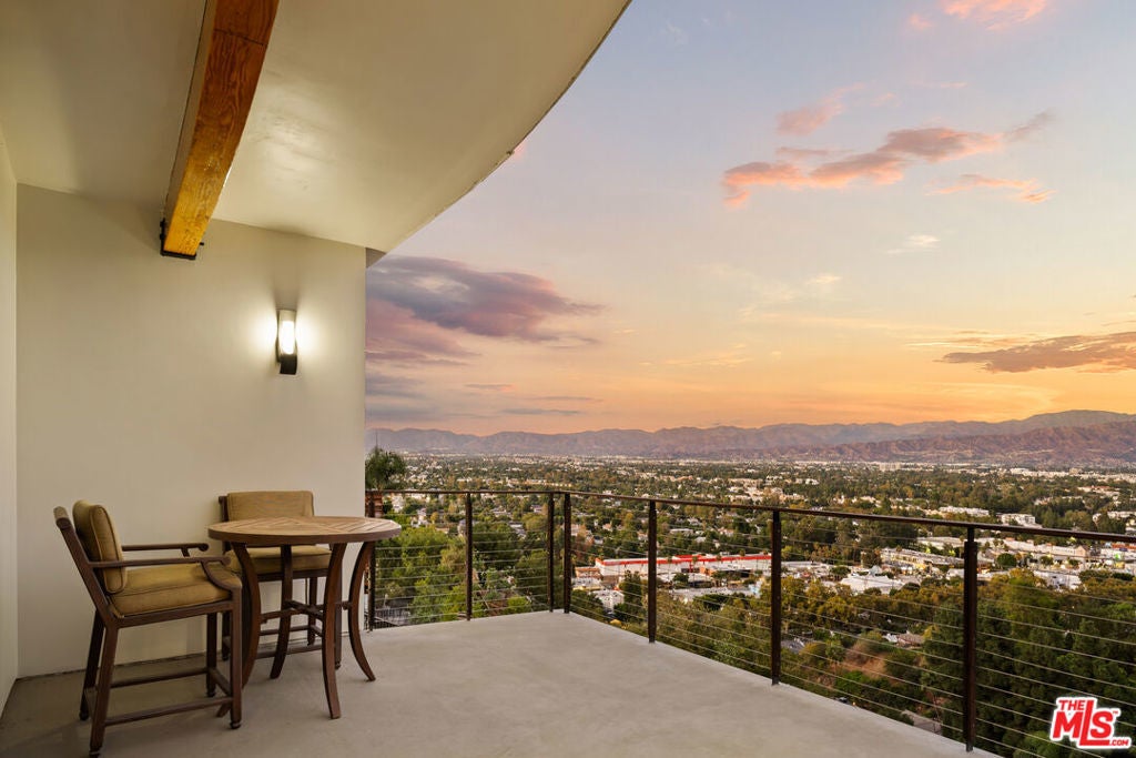 High above Studio City's coveted Silver Triangle, this AIA-designed modern residence by renowned architect Jon Brouse is a one-of-a-kind architectural statement that captures the drama and tranquility of Southern California living. South of Ventura Boulevard and masterfully oriented to command panoramic sunrise-to-sunset city-light views, the home is an inspired fusion of sculptural form, volume, and light.Spanning approximately 2,800 square feet with a separate 600-square-foot ADU, the two-story residence boasts five bedrooms and five baths, all framed within a bold architectural silhouette defined by soaring 18-foot ceilings, expansive walls of glass, and fluid indoor-outdoor living to multiple large viewing decks and a manicured backyard. At the heart of the main 2,200-square-foot residence lies a two-story, gallery-inspired Great Room -- a spectacular volume of space designed for art and atmosphere, anchored by a full wall of glass and a striking linear fireplace. The chef-inspired designer kitchen seamlessly blends functionality and style with quartz countertops, high-end appliances, and center-island seating, opening effortlessly to the dining area and corner window views that frame the horizon.The thoughtful floor plan offers two bedrooms upstairs and two down, including a main-floor ensuite and an additional guest bedroom and bath for ultimate flexibility. Upstairs, a suspended walkway divides the private suites, each positioned to capture the home's most breathtaking vantages -- from radiant morning light to glittering nighttime vistas. The primary suite is a sanctuary unto itself, featuring a massive private balcony, a custom-fitted walk-in closet, and a spa-like bath with dual vanities and walls of glass that invite the outdoors in. A separate one-bedroom, one-bath ADU with its own washer, dryer, and private viewing deck mirrors the home's dramatic outlooks, providing an ideal setting for guests, a music studio, or income potential.Sculptural, light-filled, and profoundly livable, this architectural gem stands as a testament to Brouse's signature visiona residence that celebrates artistry, space, and the boundless beauty of the hills that surround it.