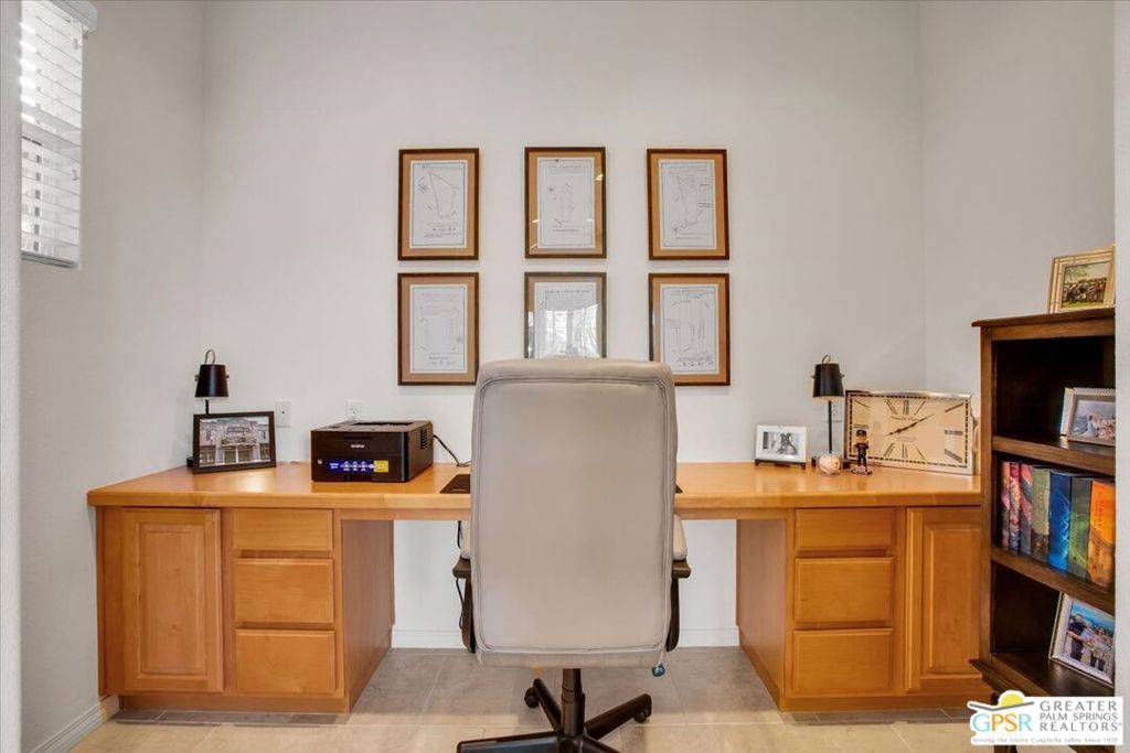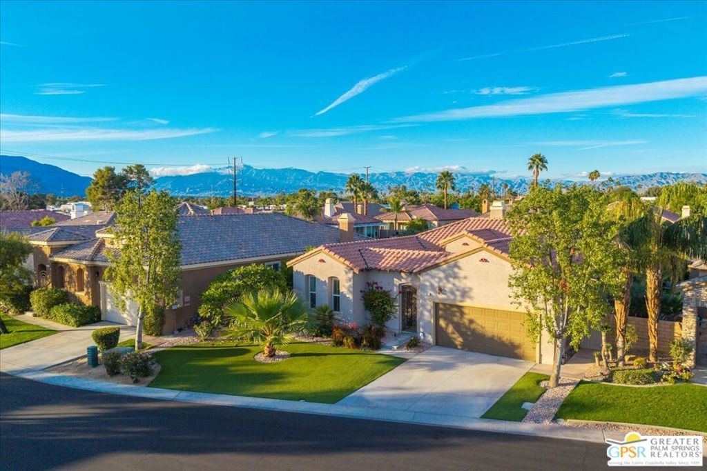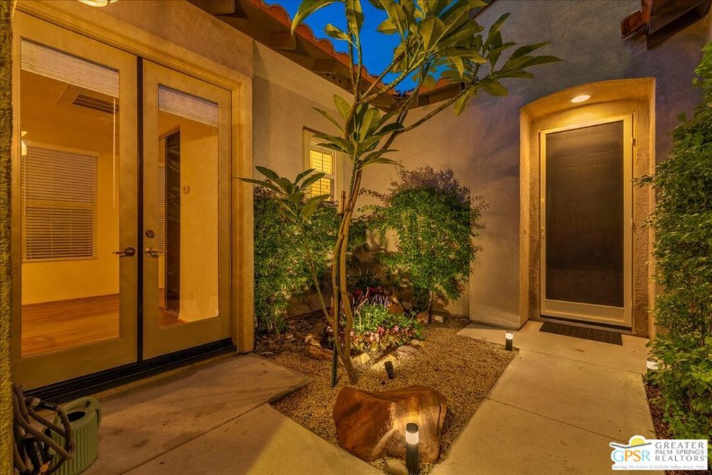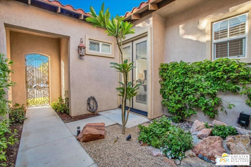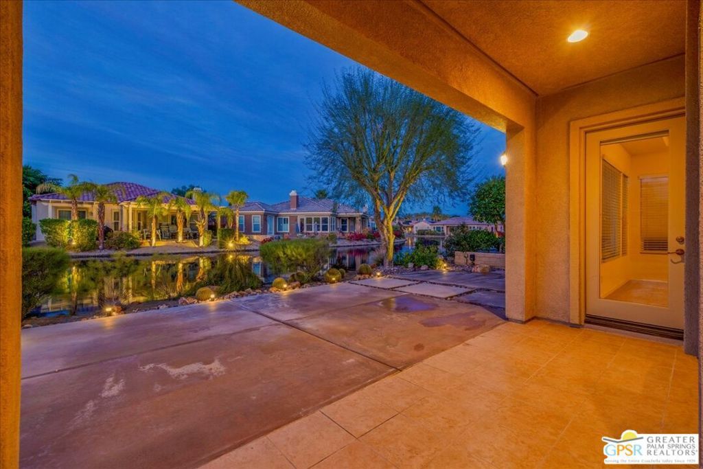 Driving up to this 3bed/3bath house, your eyes will be immediately captivated by the meticulously landscaped, oversized front yard. Enter the front courtyard and you will find a separate casita with its own French Doors entrance and a full bath. Inside the main home you will notice how immaculate the home is kept, with an entertainer's kitchen that includes a large island with instant hot water and separate breakfast area. There is a living room with a fireplace, a dining area with a wet bar, the primary suite and a third bedroom and bath. An dedicated office area completes the inside, all with 10-foot ceilings, 8-foot doors and plenty of large windows to view the lake and surrounding mountains. Recent updates include a new garage door opener, a Flume water leak and usage system, new landscape lighting and all new window screens. The backyard has plenty of concrete patio space to complete the premium size lot, built-in barbecue, lemon trees and numerous planters/water features. Mission Shores is a gated community in prestigious Rancho Mirage equal distance to downtown Palm Springs and El Paseo, and close proximity to the airport, golf courses, restaurants, hiking trails and all that the Valley has to offer. The low HOA fees include front yard maintenance, an upgraded Spectrum TV package, 1 gig of Internet speed and well-funded reserves. The furniture is no longer in the house.