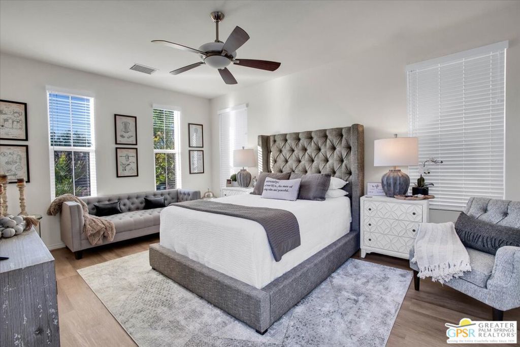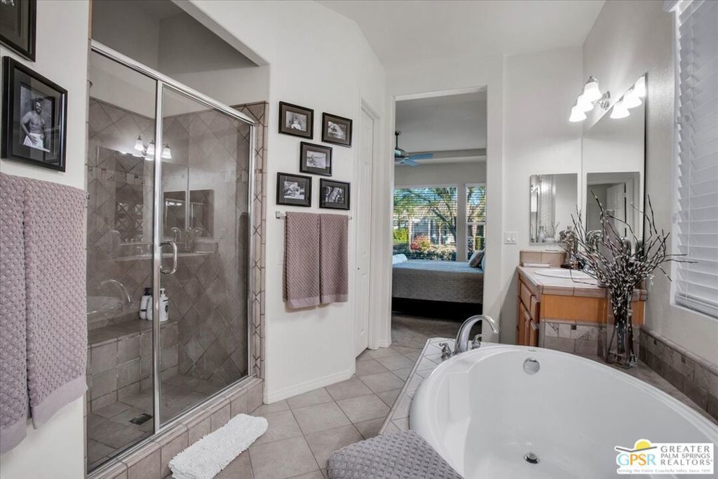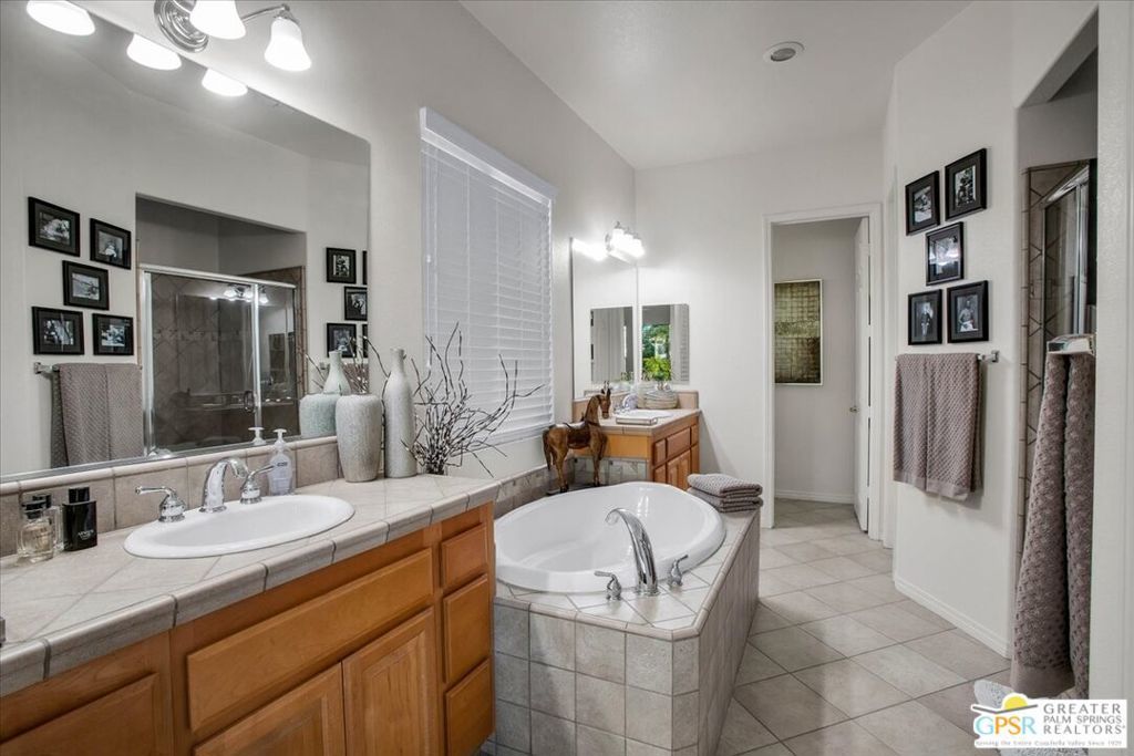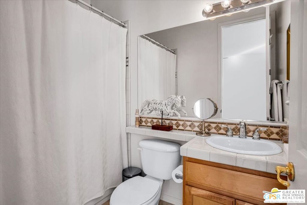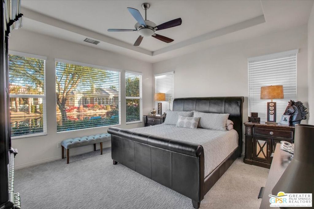 Driving up to this 3bed/3bath house, your eyes will be immediately captivated by the meticulously landscaped, oversized front yard. Enter the front courtyard and you will find a separate casita with its own French Doors entrance and a full bath. Inside the main home you will notice how immaculate the home is kept, with an entertainer's kitchen that includes a large island with instant hot water and separate breakfast area. There is a living room with a fireplace, a dining area with a wet bar, the primary suite and a third bedroom and bath. An dedicated office area completes the inside, all with 10-foot ceilings, 8-foot doors and plenty of large windows to view the lake and surrounding mountains. Recent updates include a new garage door opener, a Flume water leak and usage system, new landscape lighting and all new window screens. The backyard has plenty of concrete patio space to complete the premium size lot, built-in barbecue, lemon trees and numerous planters/water features. Mission Shores is a gated community in prestigious Rancho Mirage equal distance to downtown Palm Springs and El Paseo, and close proximity to the airport, golf courses, restaurants, hiking trails and all that the Valley has to offer. The low HOA fees include front yard maintenance, an upgraded Spectrum TV package, 1 gig of Internet speed and well-funded reserves. The furniture is no longer in the house.