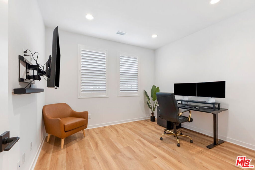 Welcome to 18130 Radiance Ln, a stunning 2024-built residence by Tri Pointe Homes, located within the highly desirable Skyline community in Santa Clarita. This thoughtfully upgraded home offers 5 bedrooms plus a dedicated office, 3 bathrooms, and 3,263 square feet of contemporary living space on a 5,121 SF private, fully fenced lot blending modern luxury with everyday functionality. The open-concept floor plan is enhanced by upgraded luxury vinyl flooring, upgraded appliances, a double oven, alkaline water, and a whole-home surround sound system, creating an ideal environment for both entertaining and comfortable daily living. The home also features fully paid-off solar panels and a dedicated EV charger, offering energy efficiency and long-term savings. The primary suite is a true retreat, featuring a private patio, a spacious walk-in closet, and a spa-inspired bathroom designed for relaxation and renewal. A dedicated home office provides flexibility for remote work, study, or creative use, while the bedroom layout accommodates family, guests, or multi-generational living. The private, fenced backyard offers a peaceful outdoor setting perfect for entertaining, relaxing, or personalization. Residents of the Skyline community enjoy access to resort-style amenities, including a clubhouse, pool and spa, parks, walking trails, and beautifully designed common areas. The community is also adding a new elementary school, further enhancing long-term convenience and neighborhood appeal. Ideally located near shopping, dining, and commuter routes, this home delivers new construction quality, premium upgrades, energy-efficient features, and future-focused community living.