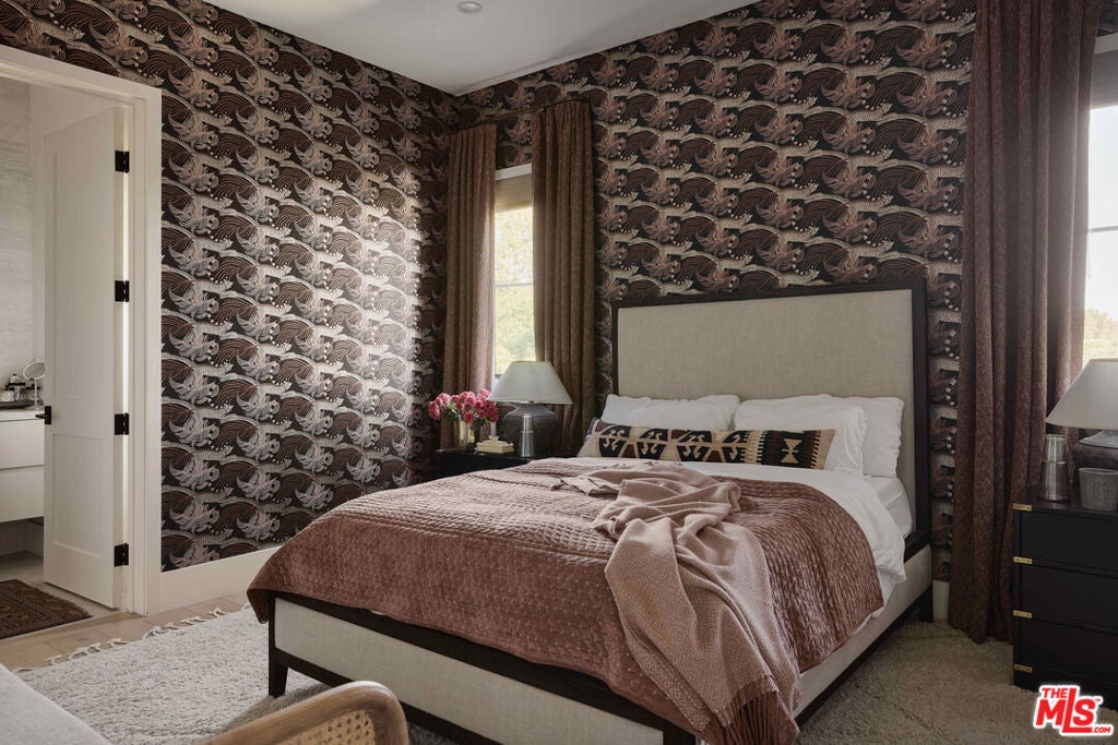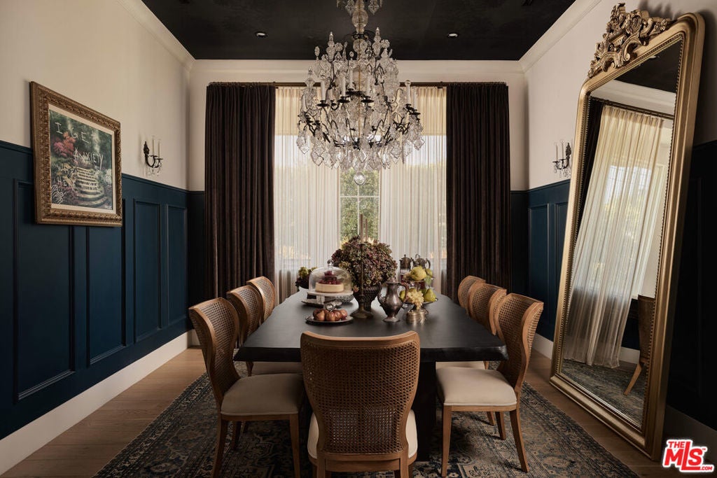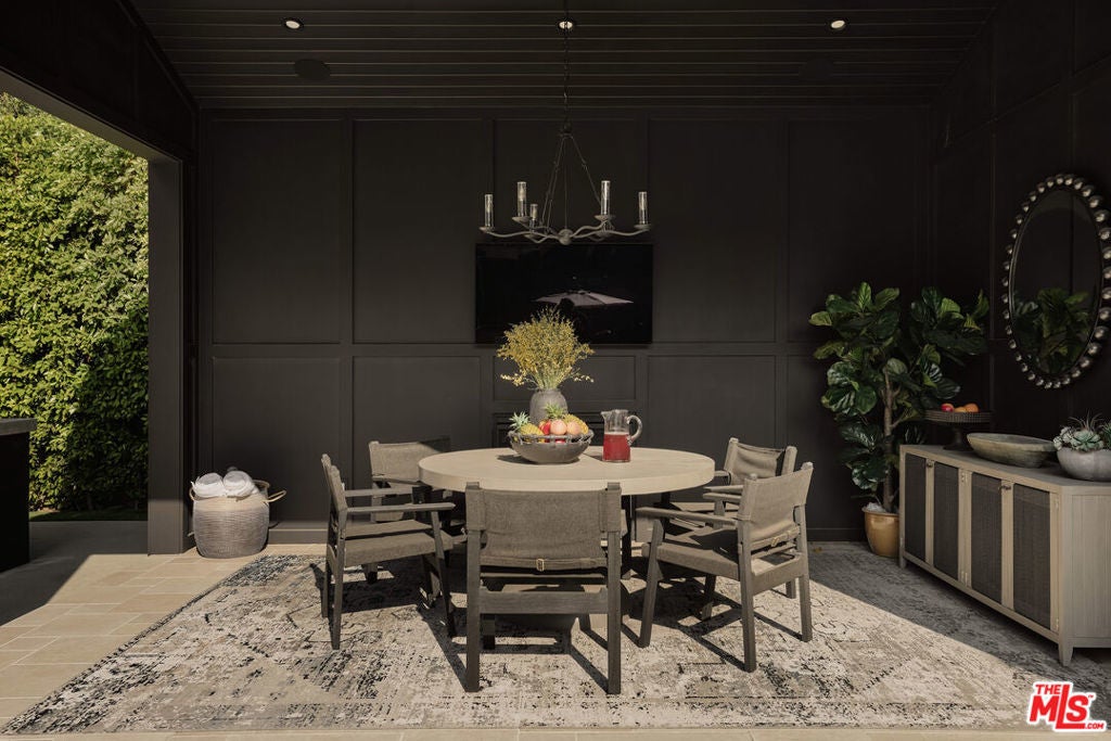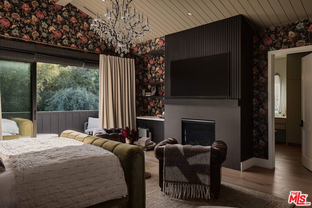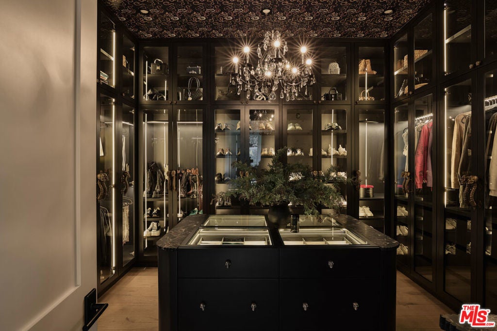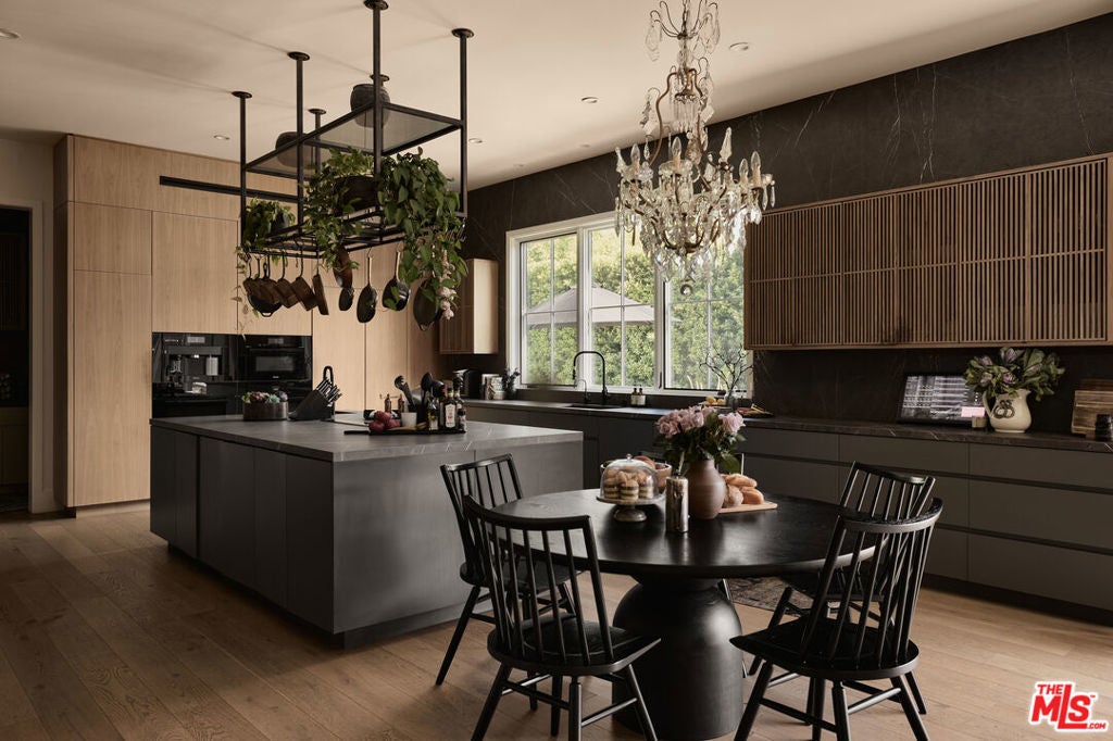 Tucked behind gates in the renowned Amestoy Estates where opportunities to own are rare, this extraordinary 6-bedroom, 7-bath residence offers approximately 7,200 square feet of refined elegance and character. Designed in its entirety by acclaimed Celebrity designer Kishani Perera, every detail was thoughtfully curated. The home blends sophistication with a rock-and-roll edge, featuring a hidden movie theater accessed through a bookshelf and multiple areas across the property that feel like a private resort. Custom reclaimed wood doors, warm built-ins, hand-selected wallpapers, cabinetry, lighting, and trim create a rich, layered interior, while vintage Parisian chandeliers and stained-glass windows add timeless charm. With parking for up to 13 cars, exceptional privacy, and a setting that truly lives like an estate, this is a rare and unforgettable retreat. Bold, distinctive, and completely one of a kind.
