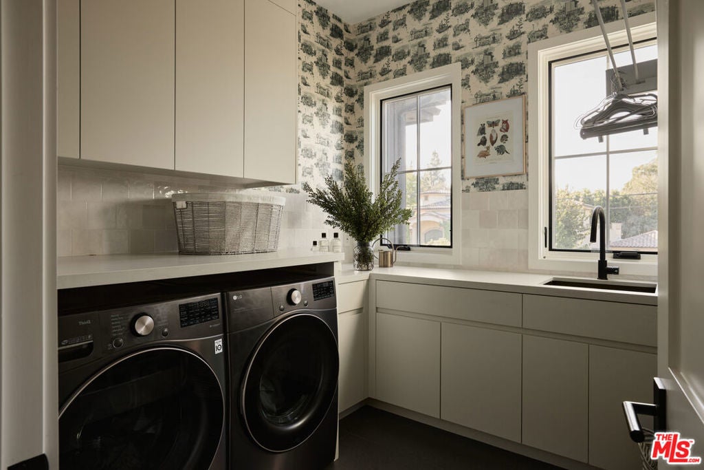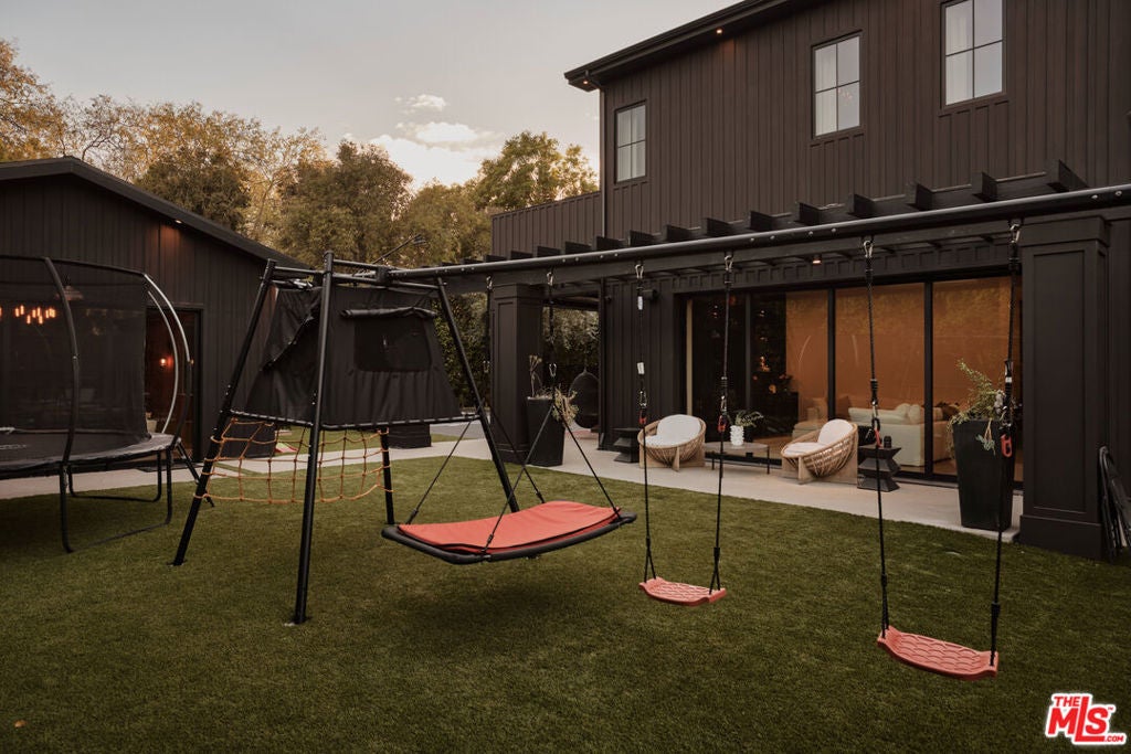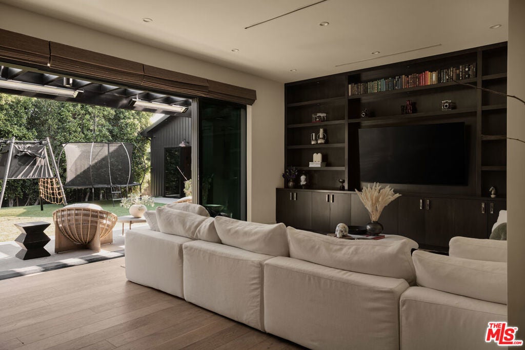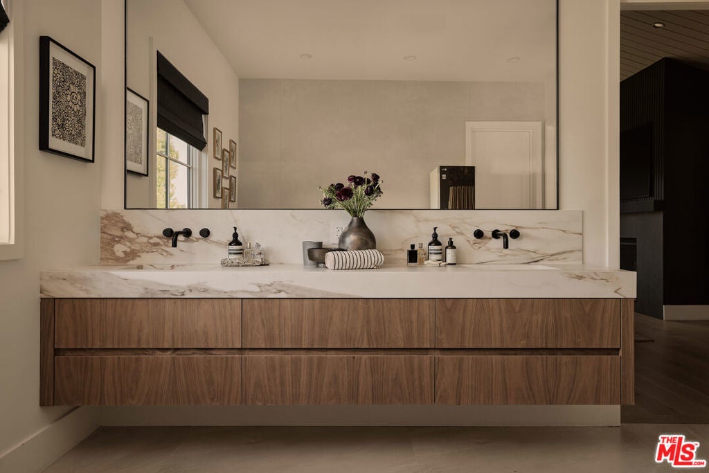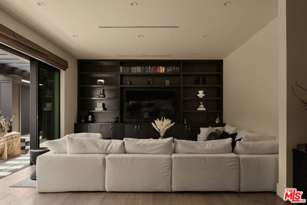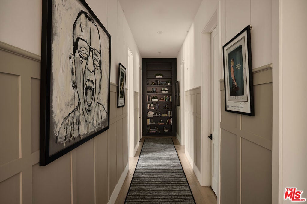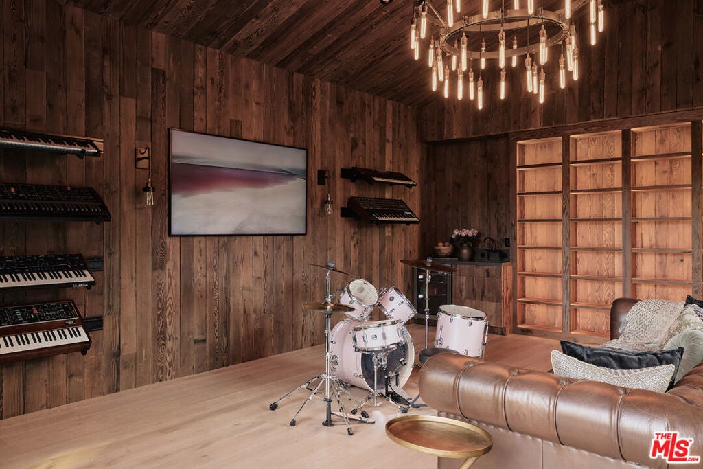 Tucked behind gates in the renowned Amestoy Estates where opportunities to own are rare, this extraordinary 6-bedroom, 7-bath residence offers approximately 7,200 square feet of refined elegance and character. Designed in its entirety by acclaimed Celebrity designer Kishani Perera, every detail was thoughtfully curated. The home blends sophistication with a rock-and-roll edge, featuring a hidden movie theater accessed through a bookshelf and multiple areas across the property that feel like a private resort. Custom reclaimed wood doors, warm built-ins, hand-selected wallpapers, cabinetry, lighting, and trim create a rich, layered interior, while vintage Parisian chandeliers and stained-glass windows add timeless charm. With parking for up to 13 cars, exceptional privacy, and a setting that truly lives like an estate, this is a rare and unforgettable retreat. Bold, distinctive, and completely one of a kind.
