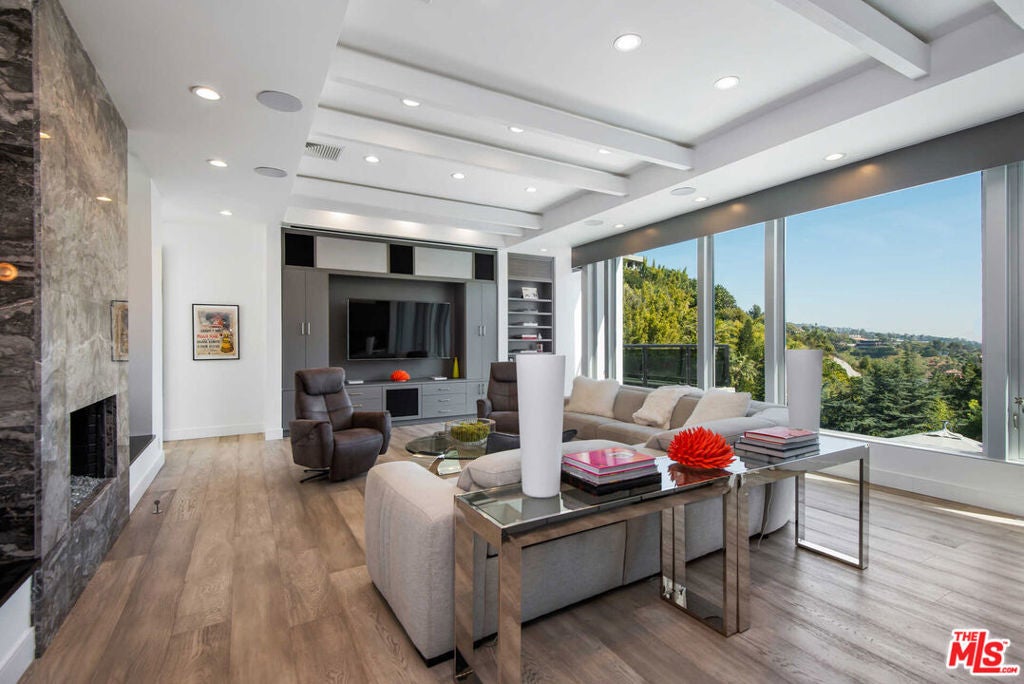 Experience the epitome of luxurious living, nestled adjacent to some of the wealthiest individuals in the world amidst a prestigious enclave that includes Beverly Hills and Holmby Hills. This exquisitely designer-furnished contemporary residence is a remarkable architectural triumph that rises gracefully above the city lights, offering breathtaking panoramic views.This opulent masterpiece features expansive living spaces with unparalleled finishes, all thoughtfully designed for seamless entertaining. The open floor plan boasts soaring ceilings and expansive sliding glass walls that integrate indoor and outdoor spaces, leading to resort-style amenities, including a magnificent pool, spa, and multiple entertainer's terraces embellished with cascading waterfalls.A grand great room, anchored by a sophisticated fireplace, transitions effortlessly to a fully equipped bar complete with top-of-the-line temperature-controlled wine storage. This space flows into a stunning dining room and a state-of-the-art chef's kitchen, outfitted with Miele appliances and Poggenpohl cabinetry, perfect for culinary enthusiasts.The lavish primary suite offers a private terrace with captivating views, extensive showroom-quality closets, and exquisite dual bathrooms. Accompanying this are three generously sized VIP guest suites, a cutting-edge media room with sweeping vistas, and a fully equipped gym featuring a dry sauna, all contributing to this extraordinary high-tech smart home retreat. OPTION TO BUY NOW AND FINANCE LATER WHEN INTEREST RATES DECREASE. THE SELLER IS OPEN TO LEASING THE PROPERTY FULLY FURNISHED, OFFERING A UNIQUE OPPORTUNITY for a sophisticated lifestyle IN ONE OF THE MOST SOUGHT-AFTER LOCATIONS. IMMEDIATE OCCUPANCY AVAILABLE.