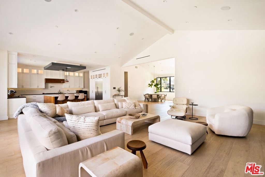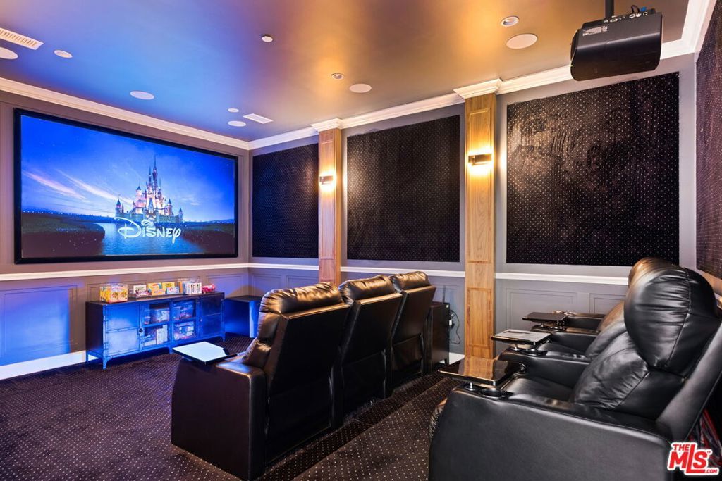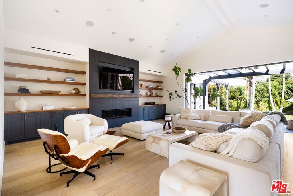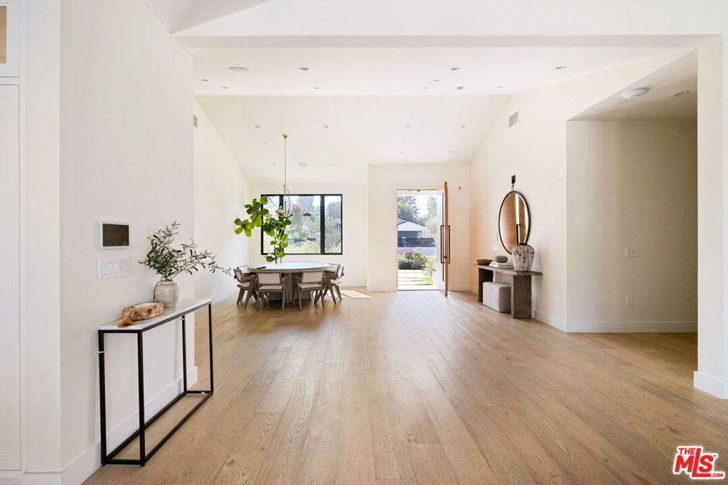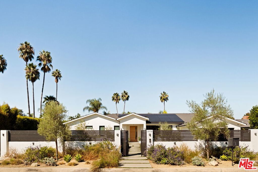 Presenting a stunning modern masterpiece, this newly constructed single-level residence, completed in 2020, embodies sophisticated luxury and timeless design. Perfectly positioned south of Ventura Boulevard on a picturesque, tree-lined street, this architectural showplace offers the ultimate in style, comfort, and California living.Behind private gates, this single-story residence showcases timeless curb appeal with smooth stucco, lush landscaping, and an expansive circular driveway leading to a covered entry. Inside, soaring vaulted ceilings, wide-plank European Oak floors, and custom built-ins create a seamless blend of warmth and sophistication.The gourmet chef's kitchen features sleek stone countertops, a large center island with breakfast bar, and top-of-the-line stainless steel appliances. The inviting great room flows effortlessly to the resort-style backyard, creating an ideal setting for entertaining and indoor-outdoor living.The serene primary suite was meticulously designed with designer Portola paint and a beautiful fireplace for a tranquil ambiance. It also offers direct access to the backyard, a spacious walk-in closet, and a luxurious spa-style bath with soaking tub, glass shower, and dual vanity. Two secondary bedrooms and a third private suite (all with ensuite bathrooms and walk in closets) perfectly situated for guests or a playroom complete the layout. A state-of-the-art movie theater with elevated seating and designer lighting provides the ultimate at-home entertainment experience.Step outside to your private oasis with a sparkling pool, elevated spa, outdoor BBQ kitchen, firepits, and a full pool bathroom with showerperfect for al fresco gatherings. Additional features include an attached two-car garage, owned solar panels with battery backup, and a Control4 smart home system controlling everything from lighting and security to music and window coverings all at the touch of a button or your phone. This exceptional gated property captures the essence of luxury and modern Los Angeles living with easy access to schools, trails, and the 101.