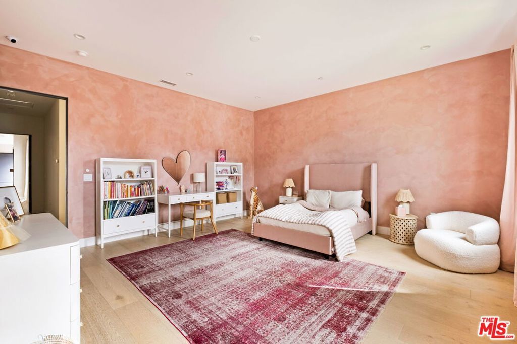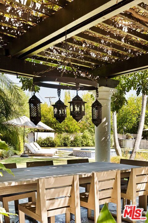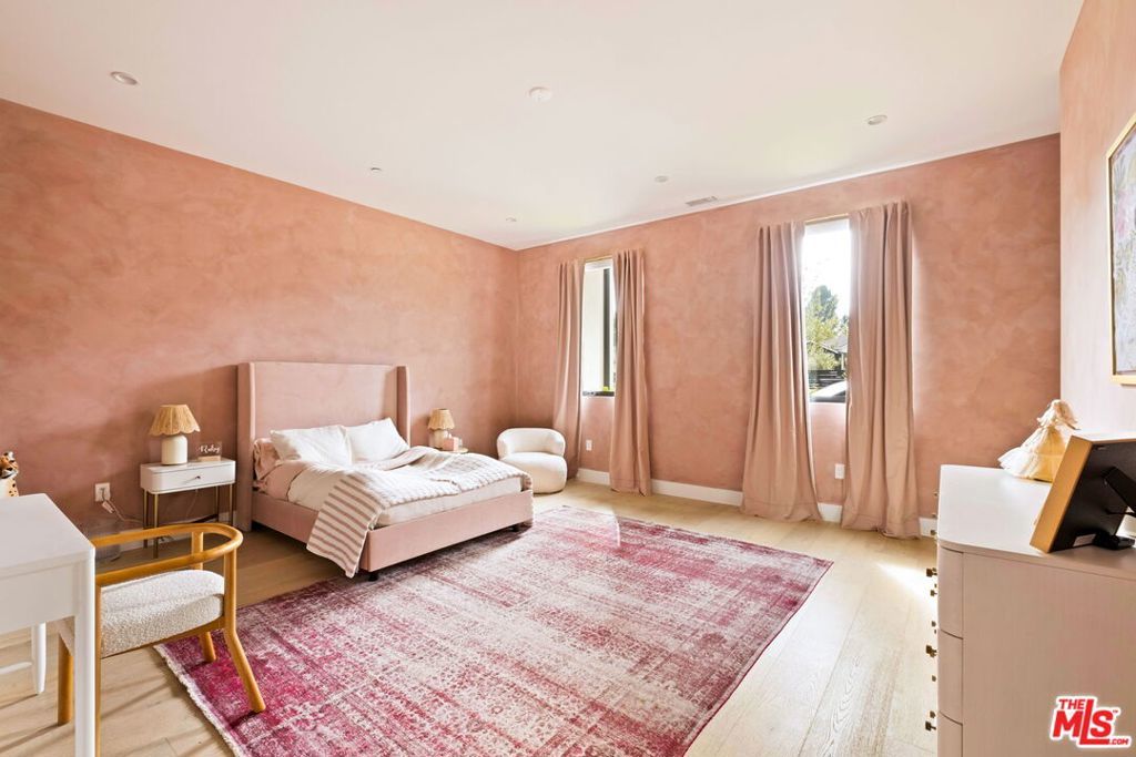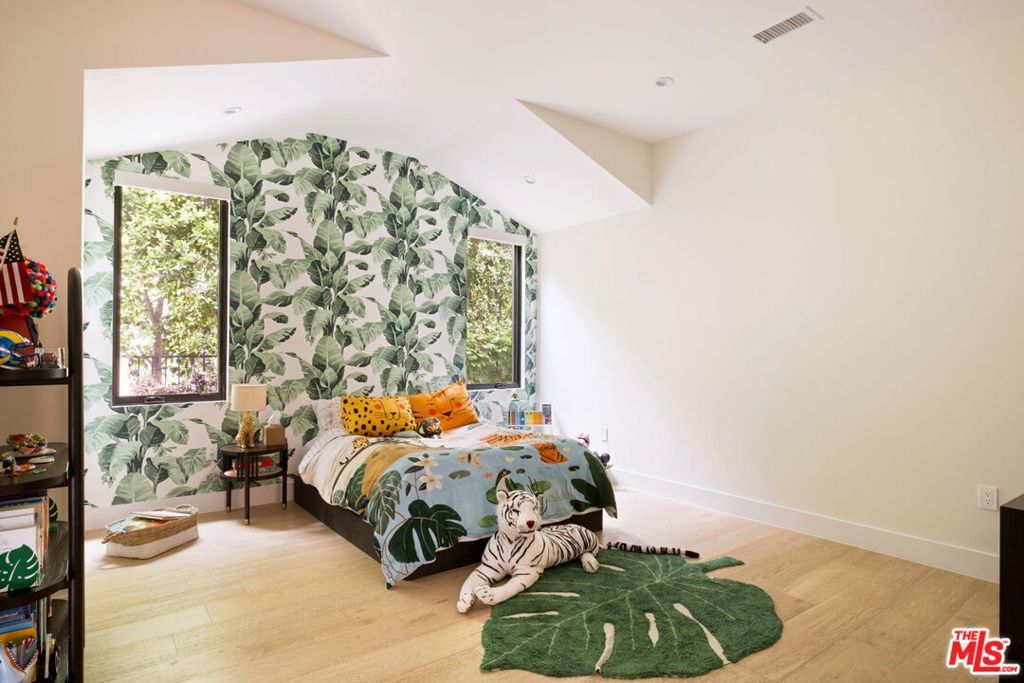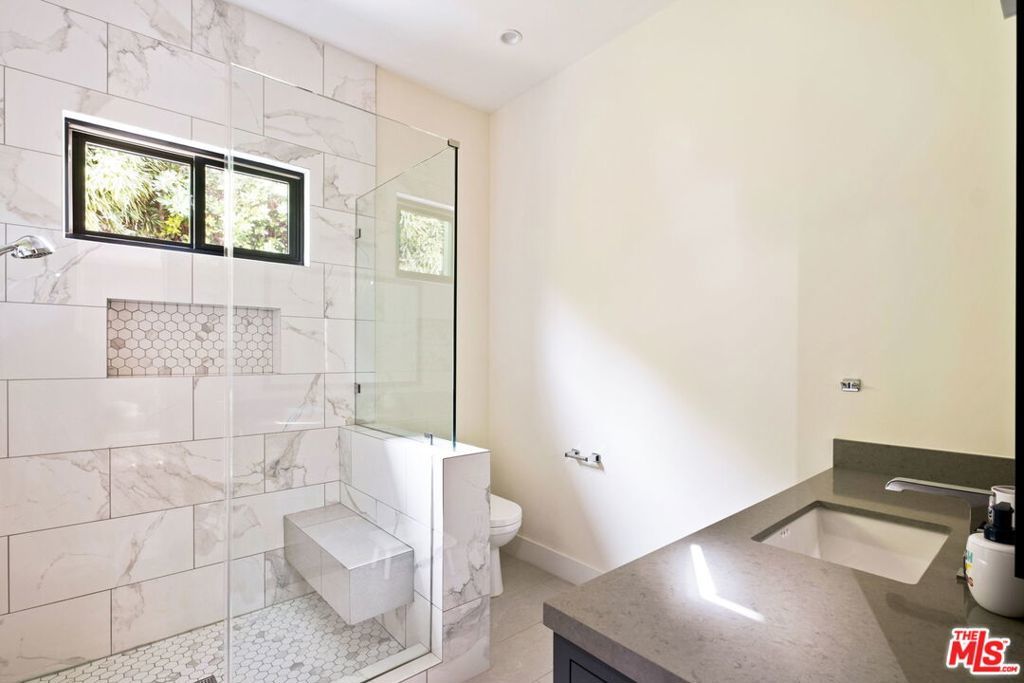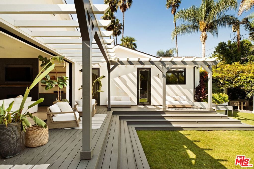 Presenting a stunning modern masterpiece, this newly constructed single-level residence, completed in 2020, embodies sophisticated luxury and timeless design. Perfectly positioned south of Ventura Boulevard on a picturesque, tree-lined street, this architectural showplace offers the ultimate in style, comfort, and California living.Behind private gates, this single-story residence showcases timeless curb appeal with smooth stucco, lush landscaping, and an expansive circular driveway leading to a covered entry. Inside, soaring vaulted ceilings, wide-plank European Oak floors, and custom built-ins create a seamless blend of warmth and sophistication.The gourmet chef's kitchen features sleek stone countertops, a large center island with breakfast bar, and top-of-the-line stainless steel appliances. The inviting great room flows effortlessly to the resort-style backyard, creating an ideal setting for entertaining and indoor-outdoor living.The serene primary suite was meticulously designed with designer Portola paint and a beautiful fireplace for a tranquil ambiance. It also offers direct access to the backyard, a spacious walk-in closet, and a luxurious spa-style bath with soaking tub, glass shower, and dual vanity. Two secondary bedrooms and a third private suite (all with ensuite bathrooms and walk in closets) perfectly situated for guests or a playroom complete the layout. A state-of-the-art movie theater with elevated seating and designer lighting provides the ultimate at-home entertainment experience.Step outside to your private oasis with a sparkling pool, elevated spa, outdoor BBQ kitchen, firepits, and a full pool bathroom with showerperfect for al fresco gatherings. Additional features include an attached two-car garage, owned solar panels with battery backup, and a Control4 smart home system controlling everything from lighting and security to music and window coverings all at the touch of a button or your phone. This exceptional gated property captures the essence of luxury and modern Los Angeles living with easy access to schools, trails, and the 101.