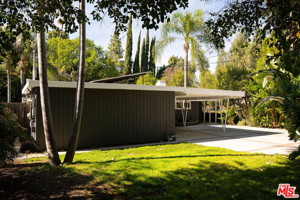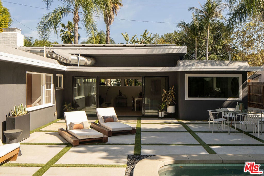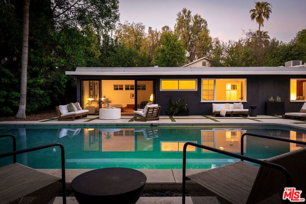Welcome to this newly reimagined California Mid-Century Modern residence offering an exquisite blend of architectural nostalgia and contemporary sophistication. The home's traditional layout elegantly wraps around a sprawling central patio, creating a seamless indoor-outdoor sanctuary designed for entertaining and lounging. At the center of this private oasis lies a newly remodeled, nine-foot deep swimming pool, perfectly framed by picturesque windows and sliding glass doors that invite natural light into every corner of the open-concept interior. The home has a refined warmth aesthetic, characterized by neutral flooring, earthy granite countertops, and curated MCM-style lighting. Beyond the three spacious bedrooms, a versatile bonus space offers the flexibility required for modern living: whether a professional home office, media room, or a private guest suite. The primary retreat features a spa-inspired bathroom equipped with a Jacuzzi soaking tub, Toto bidet, and sleek Robern Uplift medicine cabinets, all with direct sliding-door access to the sparkling pool. Beyond its designer finishes, the home is anchored by a suite of high-performance infrastructure designed for the modern era. Sustainability and wellness are seamlessly integrated through solar panels, dedicated EV charging station, tankless water heater, ecobee smart home thermostat and comprehensive entire-home water filtration system. With the added security of private gated access and radon mitigation system, every detail has been meticulously considered. Nestled in the heart of Sherman Oaks village, just blocks from the vibrant boutiques and celebrated dining which run along the famous Ventura Boulevard, schedule showings today as this home will not last!