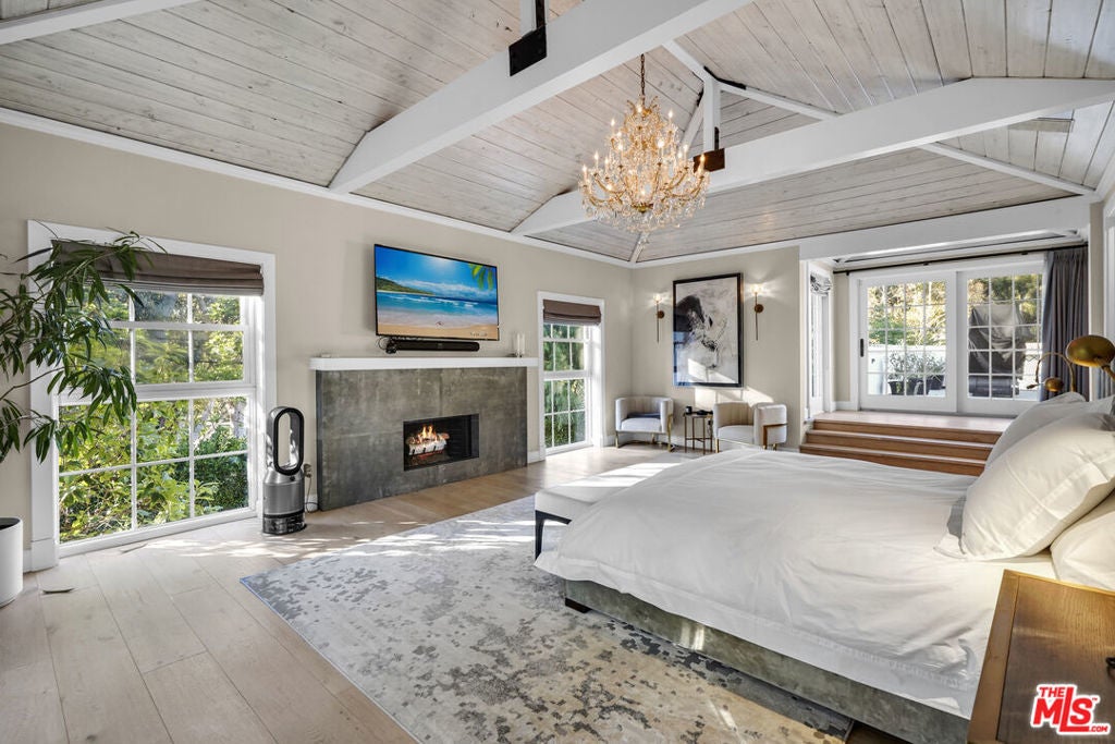 A timeless three-level Tuscan Villa in Malibu's Premiere guard gated location of "Serra Retreat," offering approximately 8,564 square feet, with 6 bedrooms and 8bathrooms, where Old-World romance meets modern Malibu luxury. Set behind gates on over an acre of impeccably landscaped, private grounds, the estate is moments from Surfrider Beach, the Malibu Pier, Whole Foods, and the boutiques and dining of Cross Creek, while neighboring the peaceful, protected setting of the Serra Retreat monastery, delivering rare serenity and privacy in a coveted coastal location. Thoughtfully designed and offering exceptional peace of mind, this is a true sanctuary by the sea. Inside, an ideal open floor plan unfolds with soaring wood-beamed ceilings, rich hardwood floors, elegant crown moldings, and multiple fireplaces that create warmth, character, and effortless sophistication. The main level is designed for both grand entertaining and intimate daily living, featuring a family room, formal dining room, an inviting media room, two powder rooms, and a gourmet kitchen with dual islands, premium appliances, and a sunlit eating area. A main-level bedroom opens directly to the expansive garden, while a private office suite with an attached full bath doubles seamlessly as a guest retreat. The lower level offers exceptional flexibility, including a spacious bedroom suite with its own entrance and ensuite bath, a large pantry, a generous laundry room, and a serene spa room complete with a far-infrared sauna and an additional full bath. Two oversized bonus rooms currently enjoyed as a kids' den and yoga studio provide endless opportunities for wellness, recreation, or creative use.Upstairs, the primary suite is a private sanctuary, featuring dual walk-in closets, a spa-inspired bathroom with an oversized shower and standalone soaking tub, and a tranquil terrace with mountain views. Two additional bedrooms, each with ensuite bathrooms, complete the upper level. Enhancing the estate is a two-story guest home, ideal for extended family, visitors, or staff, along with additional separate office space, offering exceptional flexibility for work-from-home living, creative pursuits, or private meetings without intrusion into the main residence. Outdoors, the property transforms into a resort-style haven: an expansive backyard with pool, patio, fireplace, BBQ, and dining area, complemented by a romantic flower garden with fountain and a vast grassy lawn. Perfect for entertaining, family living, or quiet moments of retreat. Completing the offering is a four-car garage, massive indoor storage area, solar panels, and a backup generator, providing modern efficiency, resilience, and everyday practicality to match the estate's beauty and scale. This Malibu estate delivers privacy, presence, and timeless elegance at the highest level. Available furnished, and also available for sale at $15,000,000.