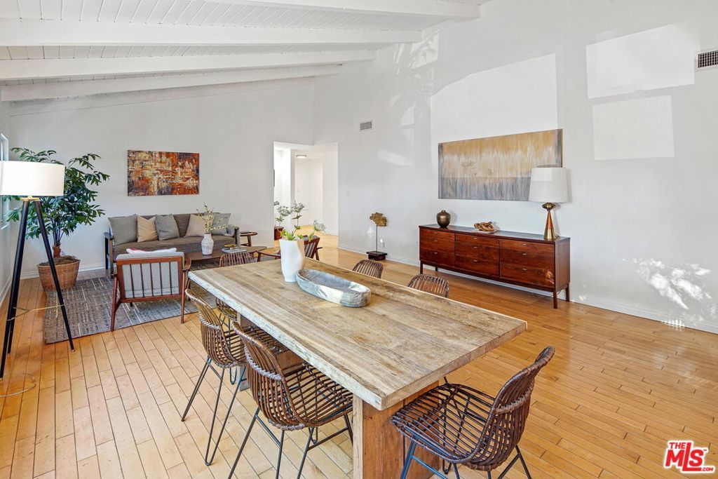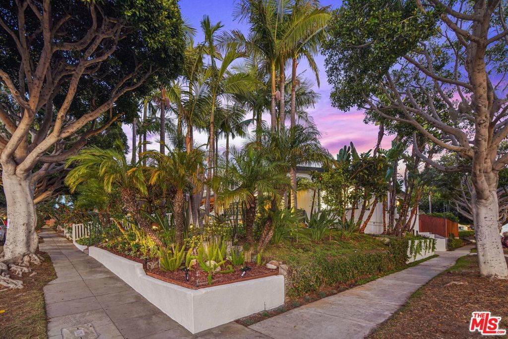 Nestled behind lush landscaping on a beautiful tree-lined street in the heart of Sunset Park is 1102 Maple St, an expansive Mid-century architectural with lots to love. This 4-bedroom, 3 bathroom home opens into the living and dining space with an extra high, wood-beamed ceiling that flows into a recently upgraded kitchen. Work out or work from home in the bright front office overlooking a beautifully maintained yard. Traveling through the primary bedroom with en-suite bath leads you to a huge family room with a floor-to-ceiling stone fireplace and plenty of space to relax. Outdoor dining and entertaining is a must on the very spacious rear deck, perfect for daytime hangs and twilight parties under the bistro lights. Moments from great schools, fine dining, and the beach this is Santa Monica living at its finest.