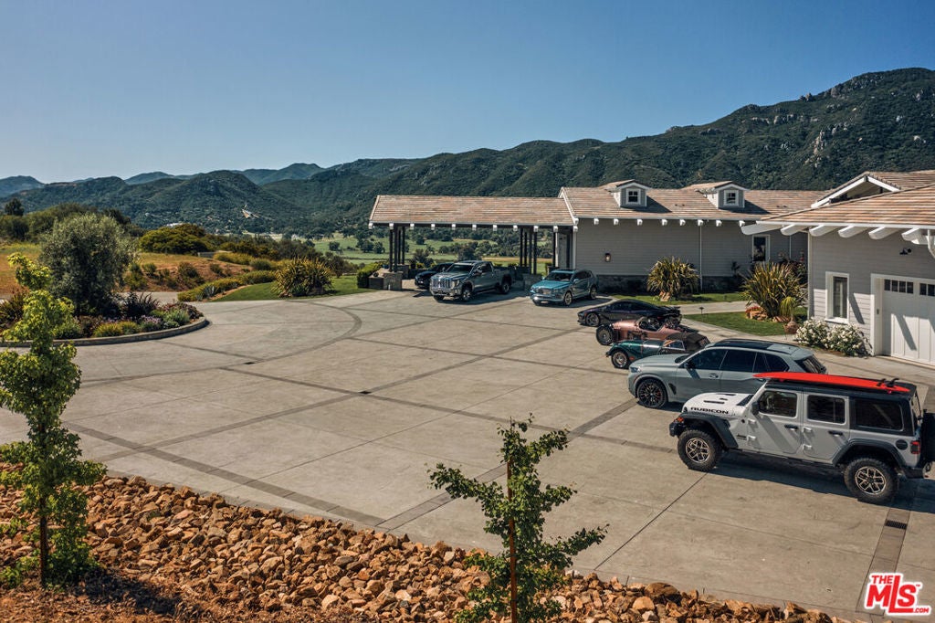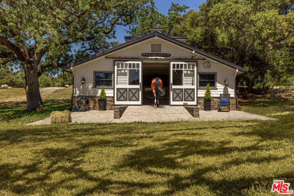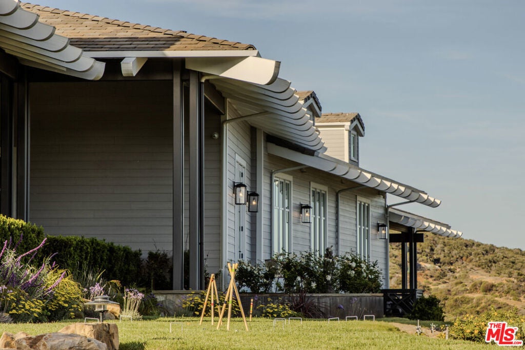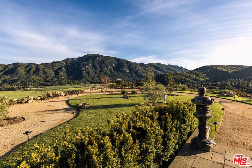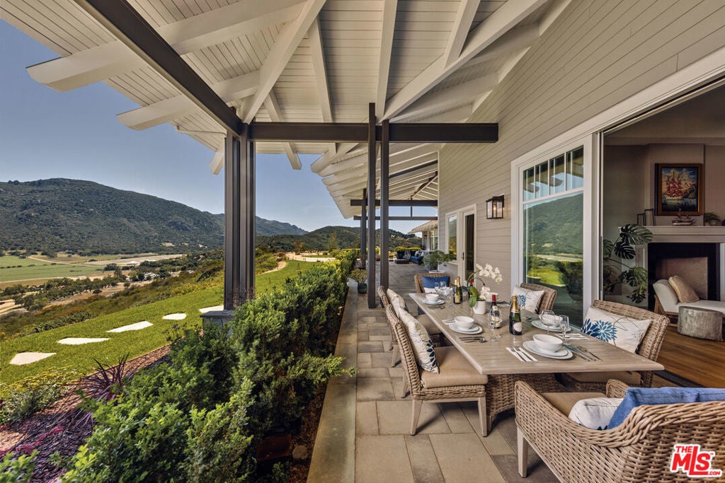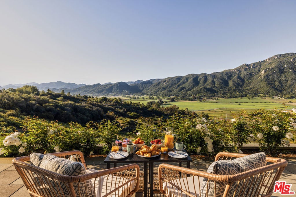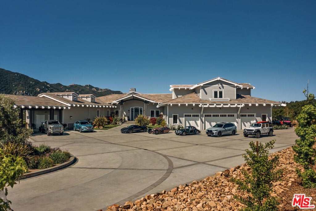 1697 Potrero Road and its breath-taking views sits behind twin, dove-white, four-rail fencing. Beyond its gated entrance lies a private lane that meanders its way uphill. Bordered by beds of wild flowers, clusters of lavender, pockets of iris and bursts of crimson bottlebrush, this is a journey that celebrates flora and fauna. At its summit, the lane opens onto a dramatic courtyard, with breath-taking, sweeping views. One of the newest homes in prestigious Hidden Valley, this is a grand and unique hybrid of traditional Cape Cod architecture and contemporary Californian lifestyle. The path to the front door is flanked by a car collector's garage-cum-gallery and a vista-framing car port. With ceilings that reach 29ft, and a view upon entry from one end to the other, the scale of this house is magnificent. Pass the owner's study, and enter the open plan great room, finding the dining area to the right and living room to the left. With pillared, vaulted ceilings, an abundance of natural light, the coziness of a roaring fire, as well as retracting glass doors to an external dining area, this is a home that offers indoor-outdoor living without constraint, and that can be formal or familial, and everything in between. The family room features a chef's kitchen, top-of-the-range appliances, peninsula high-top seating, lounge area, fireplace, under those same soaring ceilings, and it (and the games room) boasts pocket glass doors that stand 10ft high. These retracting walls of glass offer phenomenal views over the valley and Santa Monica mountains ahead, and provide direct access to the vast outdoor entertaining areas and gardens. This covered patio features a full working kitchen, barbecue, wet bar, island, and fire pit. Beyond the family room is a games and entertaining room, with multiple televisions, arcade games, ample space for ping-pong or pool, also offering unparalleled views of sunsets, rolling hills, and the gardens, mountain ranges and estates below. The bright and spacious primary suite offers equally primary views, a lounge and bar area, luxurious spa-like bathroom, gym, walk-in closet, and its own laundry. With a private terrace off the main bedroom, perfect for sunrise breakfasts, this is a suite to behold. The two story, west wing features five further bedrooms, four en-suite, two lounge areas, a kitchenette, terrace, and direct access to the rear garden and volleyball/badminton green. The main house features a salon, laundry, and walk-in pantry, as well as a guest's powder room. The landscaped gardens are as adept at offering a place to relax and admire the views, as they are at hosting a game of croquet, boules, or even for some decompressing yoga overlooking the neighboring vineyard. En route to the guest house, sits the repurposed bull-pen. This charming, octagonal structure, with its own distinct vantage point and abundance of natural light, is currently used as an artist's studio. The guest house has been constructed, equipped, and decorated to the same exacting standards as the main house. The house features the blue stone, architectural details, soaring ceilings, and feel of the main house, yet delights in a very different setting, nestled amongst the trees. The 1,789sq ft guest house features one main entertaining room, a galley kitchen, two en-suite bedrooms, and one further bathroom; as well as a covered, outdoor kitchen, barbecue, lounge and dining area, measuring approximately 1,000sq ft. The guest house's landscaped rear garden leads to fully rebuilt and beautifully restored stables. Offering a reception room, tack room, hay loft, and five stalls, these exquisite stables would bring a smile to the face of any equine enthusiast. This magical estate is like no other: unique in its architectural magnificence; privileged in its elevated vantage point; maximizing the use of its uninterrupted 360 degree, sweeping views; impeccable in its design, construction, and landscaping; and a rarity being such a new home.