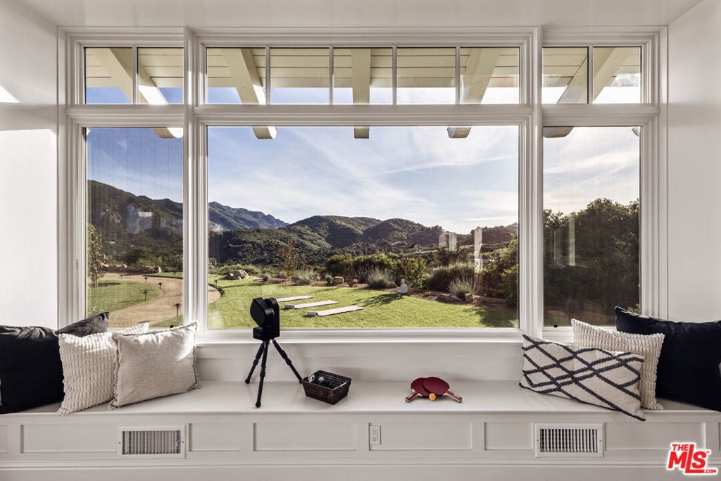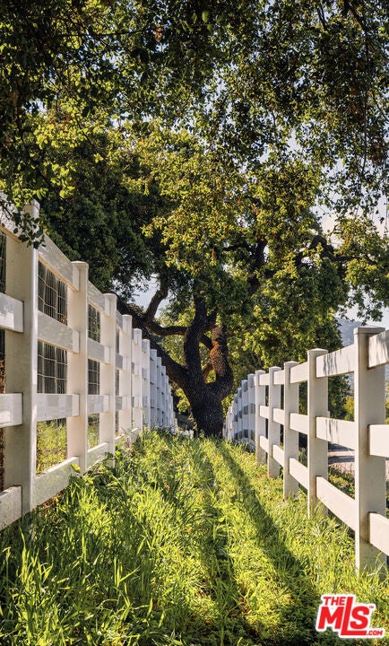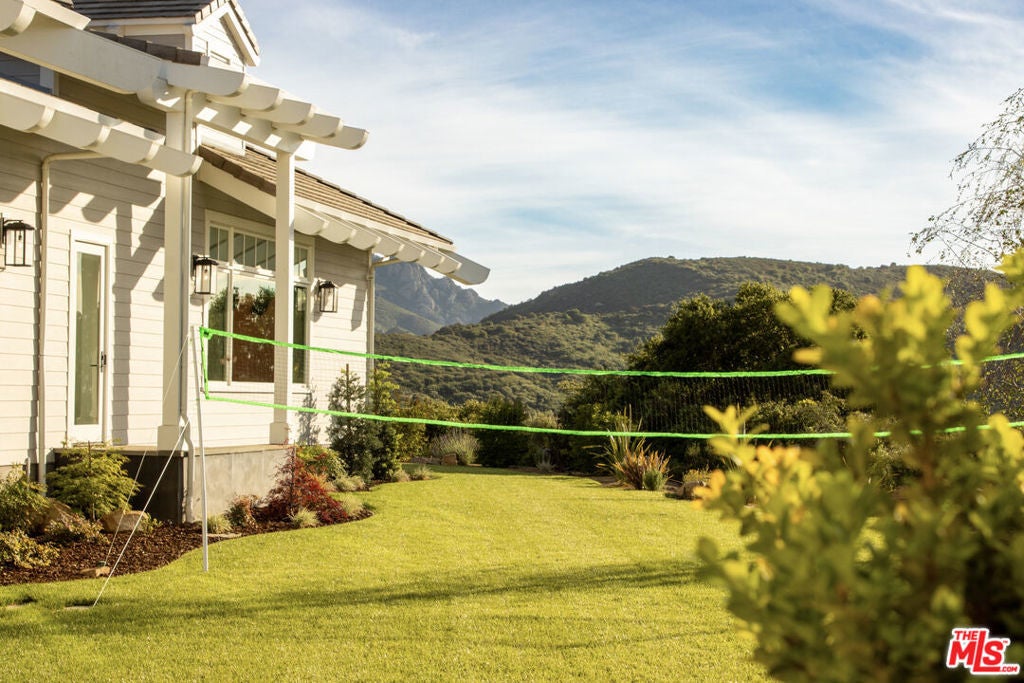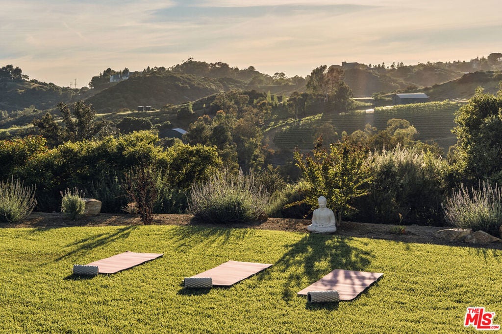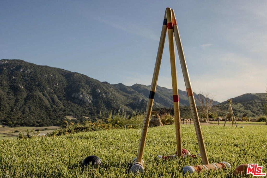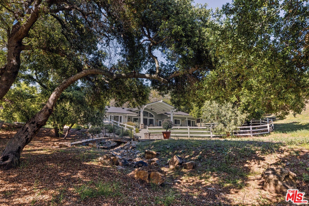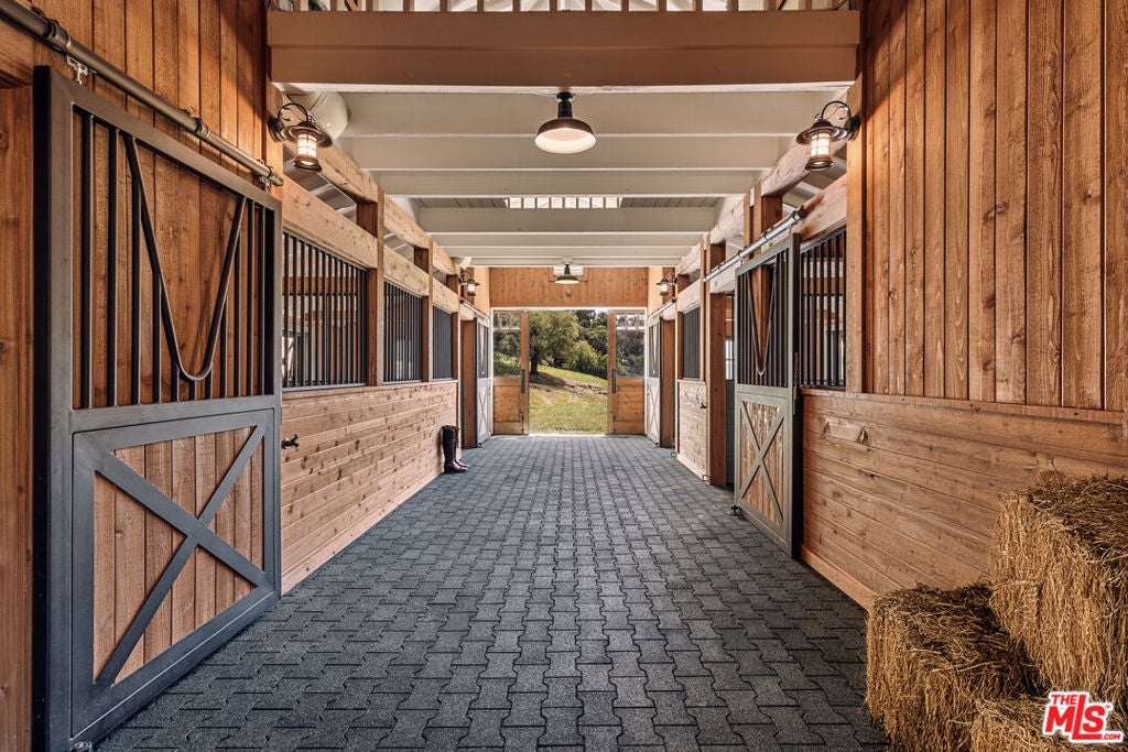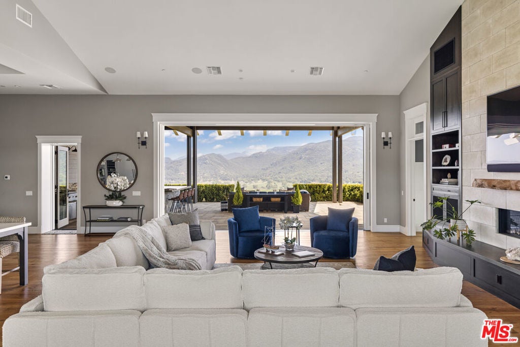 1697 Potrero Road and its breath-taking views sits behind twin, dove-white, four-rail fencing. Beyond its gated entrance lies a private lane that meanders its way uphill. Bordered by beds of wild flowers, clusters of lavender, pockets of iris and bursts of crimson bottlebrush, this is a journey that celebrates flora and fauna. At its summit, the lane opens onto a dramatic courtyard, with breath-taking, sweeping views. One of the newest homes in prestigious Hidden Valley, this is a grand and unique hybrid of traditional Cape Cod architecture and contemporary Californian lifestyle. The path to the front door is flanked by a car collector's garage-cum-gallery and a vista-framing car port. With ceilings that reach 29ft, and a view upon entry from one end to the other, the scale of this house is magnificent. Pass the owner's study, and enter the open plan great room, finding the dining area to the right and living room to the left. With pillared, vaulted ceilings, an abundance of natural light, the coziness of a roaring fire, as well as retracting glass doors to an external dining area, this is a home that offers indoor-outdoor living without constraint, and that can be formal or familial, and everything in between. The family room features a chef's kitchen, top-of-the-range appliances, peninsula high-top seating, lounge area, fireplace, under those same soaring ceilings, and it (and the games room) boasts pocket glass doors that stand 10ft high. These retracting walls of glass offer phenomenal views over the valley and Santa Monica mountains ahead, and provide direct access to the vast outdoor entertaining areas and gardens. This covered patio features a full working kitchen, barbecue, wet bar, island, and fire pit. Beyond the family room is a games and entertaining room, with multiple televisions, arcade games, ample space for ping-pong or pool, also offering unparalleled views of sunsets, rolling hills, and the gardens, mountain ranges and estates below. The bright and spacious primary suite offers equally primary views, a lounge and bar area, luxurious spa-like bathroom, gym, walk-in closet, and its own laundry. With a private terrace off the main bedroom, perfect for sunrise breakfasts, this is a suite to behold. The two story, west wing features five further bedrooms, four en-suite, two lounge areas, a kitchenette, terrace, and direct access to the rear garden and volleyball/badminton green. The main house features a salon, laundry, and walk-in pantry, as well as a guest's powder room. The landscaped gardens are as adept at offering a place to relax and admire the views, as they are at hosting a game of croquet, boules, or even for some decompressing yoga overlooking the neighboring vineyard. En route to the guest house, sits the repurposed bull-pen. This charming, octagonal structure, with its own distinct vantage point and abundance of natural light, is currently used as an artist's studio. The guest house has been constructed, equipped, and decorated to the same exacting standards as the main house. The house features the blue stone, architectural details, soaring ceilings, and feel of the main house, yet delights in a very different setting, nestled amongst the trees. The 1,789sq ft guest house features one main entertaining room, a galley kitchen, two en-suite bedrooms, and one further bathroom; as well as a covered, outdoor kitchen, barbecue, lounge and dining area, measuring approximately 1,000sq ft. The guest house's landscaped rear garden leads to fully rebuilt and beautifully restored stables. Offering a reception room, tack room, hay loft, and five stalls, these exquisite stables would bring a smile to the face of any equine enthusiast. This magical estate is like no other: unique in its architectural magnificence; privileged in its elevated vantage point; maximizing the use of its uninterrupted 360 degree, sweeping views; impeccable in its design, construction, and landscaping; and a rarity being such a new home.