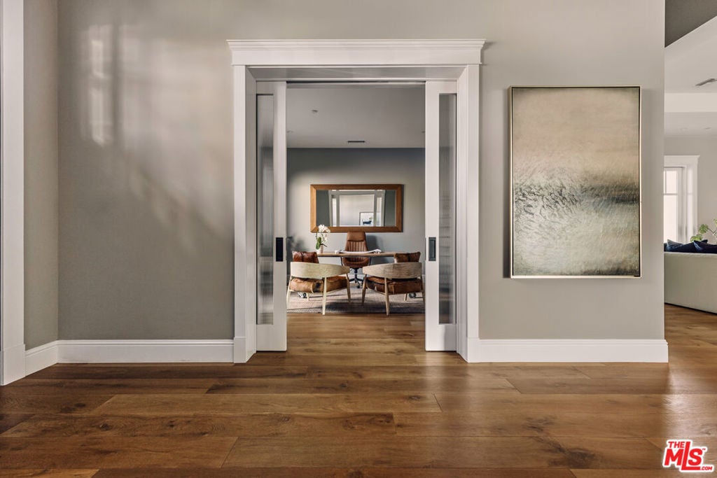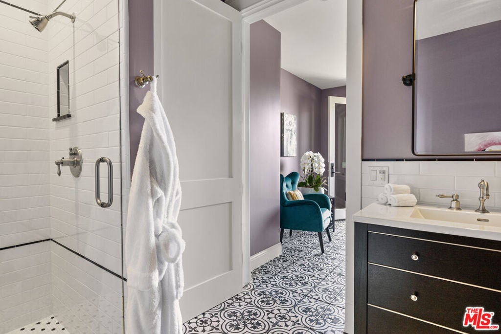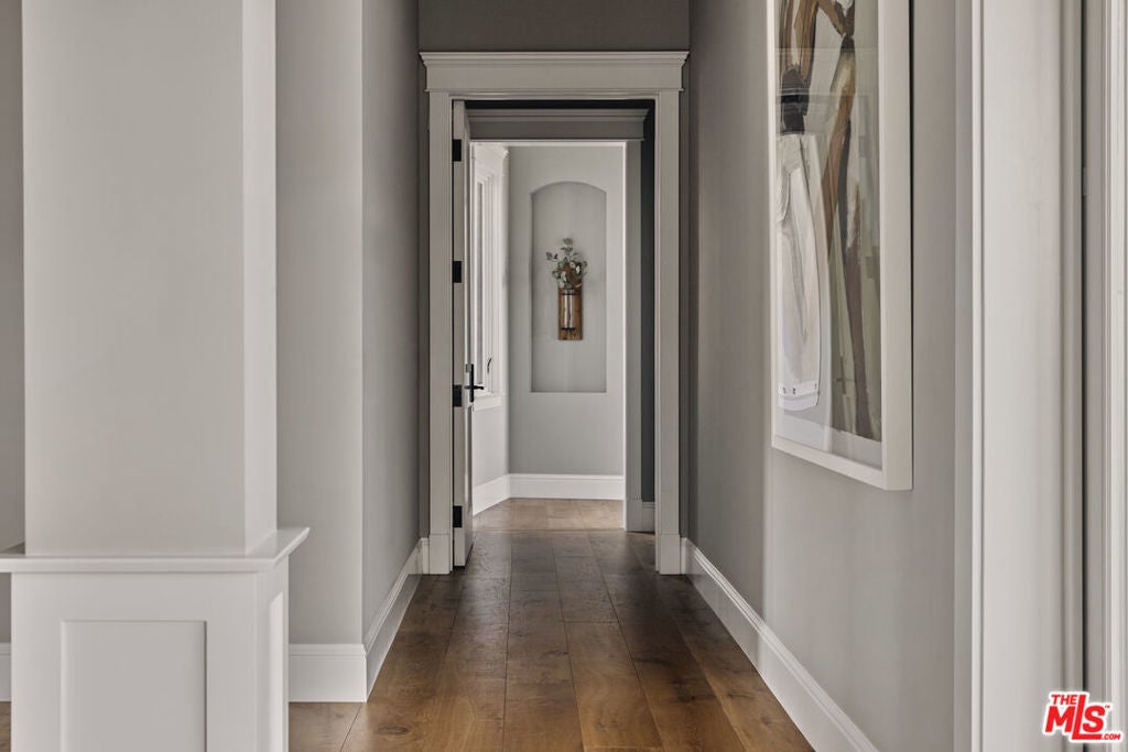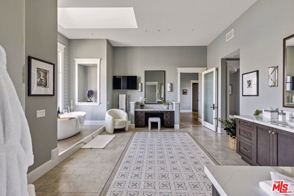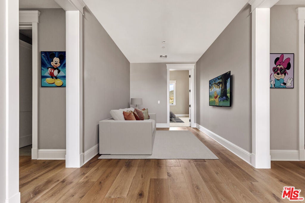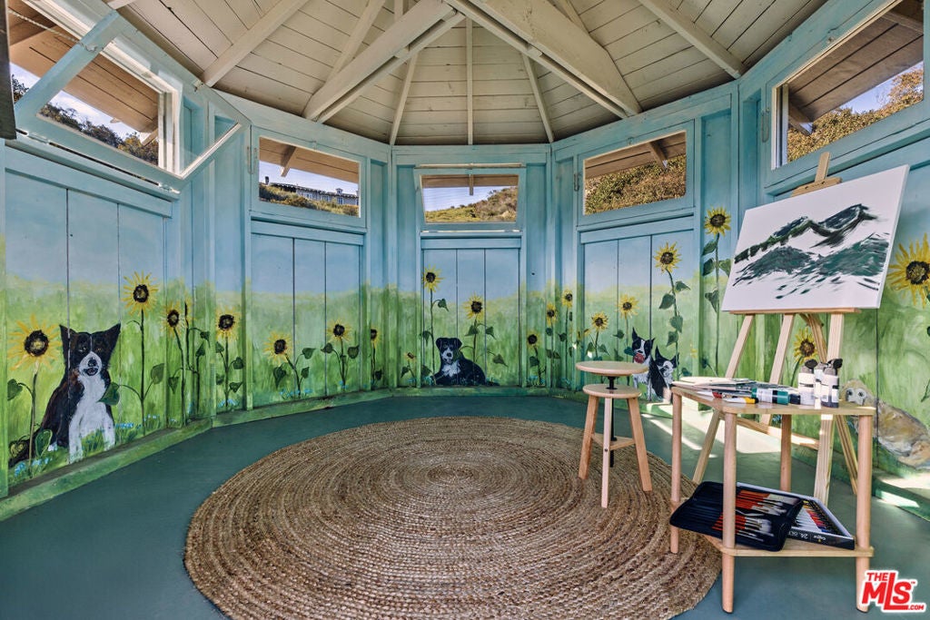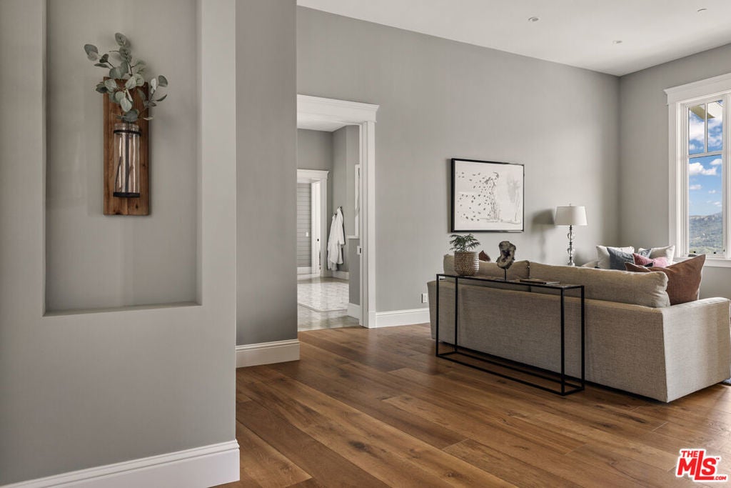 1697 Potrero Road and its breath-taking views sits behind twin, dove-white, four-rail fencing. Beyond its gated entrance lies a private lane that meanders its way uphill. Bordered by beds of wild flowers, clusters of lavender, pockets of iris and bursts of crimson bottlebrush, this is a journey that celebrates flora and fauna. At its summit, the lane opens onto a dramatic courtyard, with breath-taking, sweeping views. One of the newest homes in prestigious Hidden Valley, this is a grand and unique hybrid of traditional Cape Cod architecture and contemporary Californian lifestyle. The path to the front door is flanked by a car collector's garage-cum-gallery and a vista-framing car port. With ceilings that reach 29ft, and a view upon entry from one end to the other, the scale of this house is magnificent. Pass the owner's study, and enter the open plan great room, finding the dining area to the right and living room to the left. With pillared, vaulted ceilings, an abundance of natural light, the coziness of a roaring fire, as well as retracting glass doors to an external dining area, this is a home that offers indoor-outdoor living without constraint, and that can be formal or familial, and everything in between. The family room features a chef's kitchen, top-of-the-range appliances, peninsula high-top seating, lounge area, fireplace, under those same soaring ceilings, and it (and the games room) boasts pocket glass doors that stand 10ft high. These retracting walls of glass offer phenomenal views over the valley and Santa Monica mountains ahead, and provide direct access to the vast outdoor entertaining areas and gardens. This covered patio features a full working kitchen, barbecue, wet bar, island, and fire pit. Beyond the family room is a games and entertaining room, with multiple televisions, arcade games, ample space for ping-pong or pool, also offering unparalleled views of sunsets, rolling hills, and the gardens, mountain ranges and estates below. The bright and spacious primary suite offers equally primary views, a lounge and bar area, luxurious spa-like bathroom, gym, walk-in closet, and its own laundry. With a private terrace off the main bedroom, perfect for sunrise breakfasts, this is a suite to behold. The two story, west wing features five further bedrooms, four en-suite, two lounge areas, a kitchenette, terrace, and direct access to the rear garden and volleyball/badminton green. The main house features a salon, laundry, and walk-in pantry, as well as a guest's powder room. The landscaped gardens are as adept at offering a place to relax and admire the views, as they are at hosting a game of croquet, boules, or even for some decompressing yoga overlooking the neighboring vineyard. En route to the guest house, sits the repurposed bull-pen. This charming, octagonal structure, with its own distinct vantage point and abundance of natural light, is currently used as an artist's studio. The guest house has been constructed, equipped, and decorated to the same exacting standards as the main house. The house features the blue stone, architectural details, soaring ceilings, and feel of the main house, yet delights in a very different setting, nestled amongst the trees. The 1,789sq ft guest house features one main entertaining room, a galley kitchen, two en-suite bedrooms, and one further bathroom; as well as a covered, outdoor kitchen, barbecue, lounge and dining area, measuring approximately 1,000sq ft. The guest house's landscaped rear garden leads to fully rebuilt and beautifully restored stables. Offering a reception room, tack room, hay loft, and five stalls, these exquisite stables would bring a smile to the face of any equine enthusiast. This magical estate is like no other: unique in its architectural magnificence; privileged in its elevated vantage point; maximizing the use of its uninterrupted 360 degree, sweeping views; impeccable in its design, construction, and landscaping; and a rarity being such a new home.