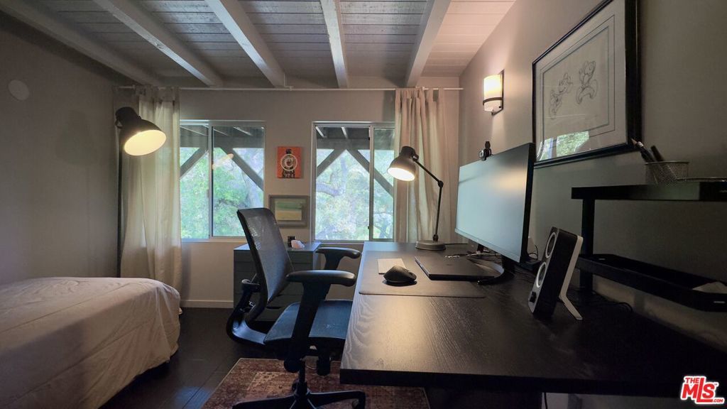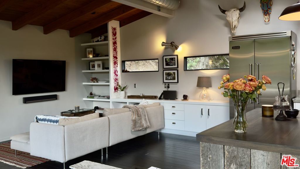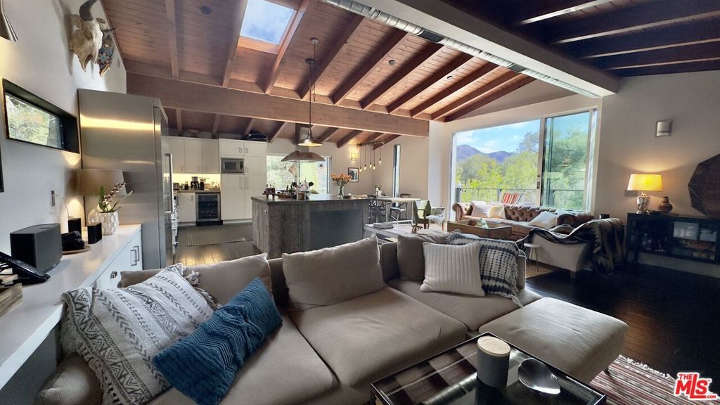 Modern and artistic retreat in Topanga Canyon surrounded by towering redwoods, mature oaks, and rock walls, overlooking a year-round stream with private waterfall. Spacious decks look out onto the mountains and canyon. Inside, the bright open floor plan living area flows into an open, fully updated kitchen. Skylights and large windows and doors create a seamless indoor/outdoor flow to the expansive deck with stunning views. The lower level has three bedrooms, two bathrooms plus an extra flex space perfect for yoga, meditation or relaxing. The primary bedroom has an ensuite bath with a stunning skylight and a walk-in closet. Two additional bedrooms and another bathroom complete the lower lever. There is also a spacious laundry room. Home is fully furnished. Located in the Fernwood area of Topanga Canyon, with easy access to the Westside, PCH, the beach, and hiking trails. Nearby schools include Topanga Elementary Charter, Woodland Hills Charter Academy, and Taft Charter High, as well as Muse, Manzanita and Viewpoint.