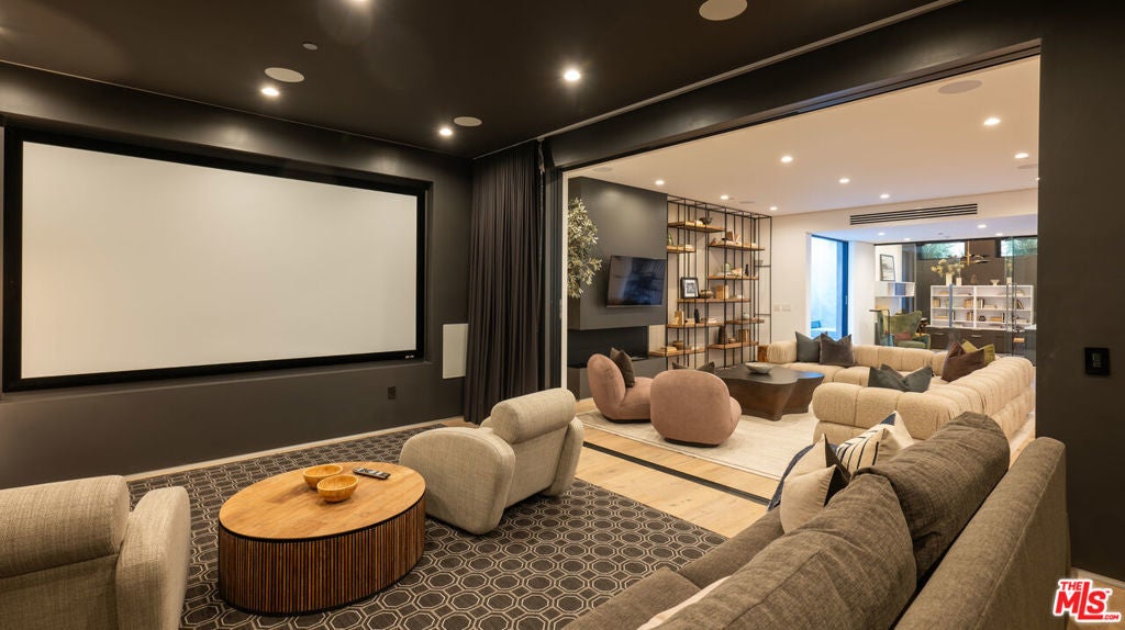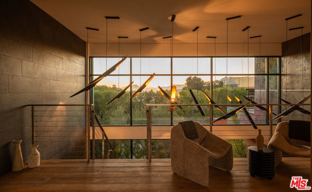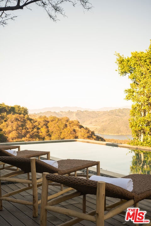 Framed in lush, mature greenery, this recently built organic-modern architectural sits privately and comfortably on one of the most desired view streets in Bel-Air. Past the gated entry and manicured gardens, an open-flow cooking, dining, and living space is flanked with Italian cabinetry and porcelain floors. A full chef's kitchen with Miele and Thermador appliances overlooks the exterior, with unimpeded access to the rear yard through floor-to-ceiling automatic sliders. From the zero-edge pool deck, beautifully composed views of the Stone Canyon reservoir serve as the backdrop for a serene, private, and spacious outdoor living experience. A fully accommodated pool house, outdoor kitchen, and fire-pit tastefully complete a year-round alfresco lifestyle. Inside, a choice of oak-finished elevator or wood-clad staircase connects all levels of the property. An entertainer's vision comes to light in the level below, adorned with a home cinema, refrigerated walk-in cellar, bar, and direct access to the backyard. The fully adorned primary bedroom with dual walk-in closets and unobstructed views sits upstairs, along with two additional en-suite bedrooms with private patios. Through a fully covered outdoor entertainment space, the rooftop deck enjoys 360 degree views of the reservoir, downtown Los Angeles, and the Pacific. Experience a nearly 7,000 square foot retreat in the hills of Bel-Air, confidently accommodating to even the most discerning buyers.
