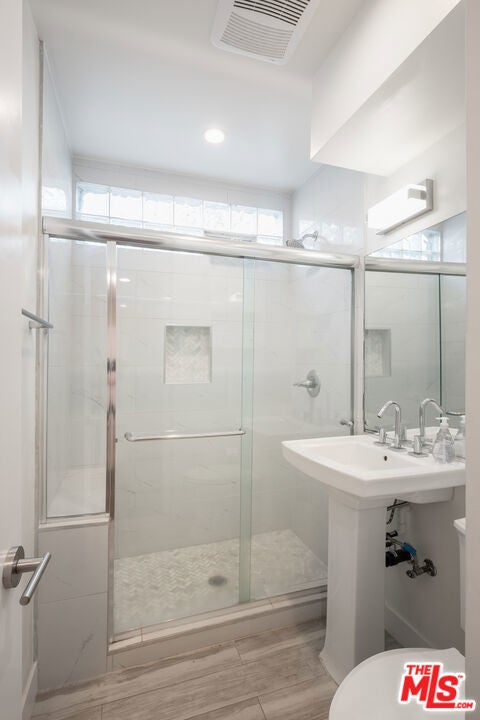 Updated and renovated 2bed 2bath, with in-unit laundry and central AC on a quiet tree lined street in in a four unit building in Santa Monica. Living room is very bright with new recessed lighting. Modern open kitchen with marble countertops, Samsung stainless steel appliances with plenty of cupboard space for storage. Original rustic hardwood floors throughout. Both bedrooms are bright and the bathrooms have modern glass standing showers and fixtures. Includes a private & large patio with direct access from the living room. PET FRIENDLY. Restricted street parking only but lots of parking is always available with a permit. Excellent location ten blocks from the beach. Close to Gelsons, Whole Foods, SMC, Main Street, and lots of shops and restaurants.