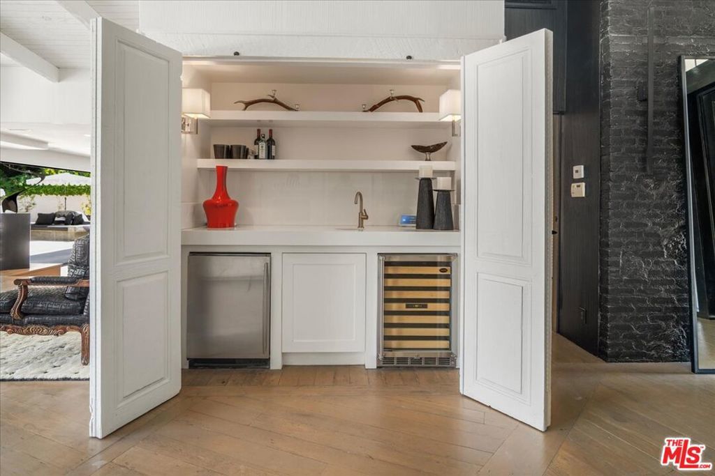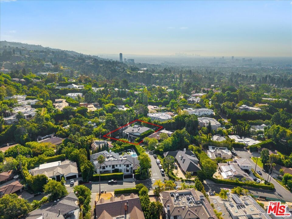 The Weinhart Estate. For the first time in nearly three decades, this rare mid-century jewel comes to market. Set on an elevated corner lot in the tranquil hills above the flats, the home offers the perfect blend of privacy, pedigree, and location. Clean mid-century lines, soaring beamed ceilings, and walls of glass capture panoramic canyon views while seamlessly merging indoor and outdoor living. The residence unfolds with a dramatic pivoting front door, expansive living spaces anchored by a striking stone fireplace, and a 40-foot chef's kitchen outfitted with a 12-foot island, dual Wolf induction ranges, Sub-Zero refrigeration, and book-matched statuary marble. A marble-topped wet bar, sophisticated den, and thoughtfully designed entertaining areas reflect timeless mid-century glamour. Upstairs, the skylit primary suite features a private balcony, marble fireplace, dual walk-in closets, and a spa-like bath. Additional guest suites echo the home's refined aesthetic. Outside, lush landscaping surrounds a Pebble-finish pool, built-in barbecue, and multiple terraces for alfresco dining and lounging. An extraordinary opportunity to own an authentic piece of mid-century style in one of Beverly Hills' most coveted settings just moments from the iconic Beverly Hills Hotel and the world-renowned shops and dining of Rodeo Drive.