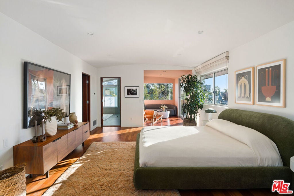 This magnificent architectural compound is set on a large lot just steps from the Venice canals and Abbot Kinney Boulevard. Located in the coveted Silver Triangle, this private and peaceful retreat provides effortless indoor-outdoor living as well as having exceptional entertaining space. The main residence has three levels. The first floor features an open, light-filled floor plan, walls of sliding glass and a chef's kitchen that flows seamlessly into expansive living and dining areas leading to the garden. The second level offers two large guest bedrooms with ample closet space that share a Jack and Jill bathroom. The entire third floor is devoted to a stunning primary suite featuring a fireplace, spa-like bathroom, walk in closet and an extremely spacious balcony. The fourth bedroom is located in the large guest suite above the garage that could also be used as a media room or office.This rare gem offers the very best of Venice living with privacy, architectural distinction, a grassy yard with fruit trees and an enormous three car garage. Don't miss the very best of Venice living with the beach, Gjelina, Felix, Erewhon, The Venice Farmers Market, Canal Market and all Venice Beach hotspots a short distance away.