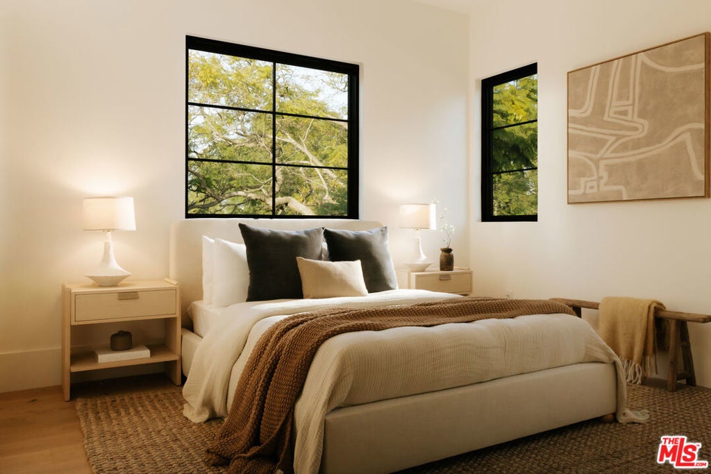 A European-Californian Traditional, this brand-new, gated two-story residence is set on a rare corner lot, allowing the architecture and landscape to breathe. Timeless materials - custom oak cabinetry, honed natural stone, blended clay tile, and Waterworks fixtures - create a warm, textural palette that feels collected rather than constructed.A sequence of potted olive trees, rosemary, and a sculptural courtyard fire feature softens the entry and sets the tone for a home designed around moments. Wrapped in 12-14 ft ficus hedging, the property feels private and serene. The corner orientation allows the two-car garage to sit discreetly along the side, widening the home's presence and preserving both front and rear yard experiences - a subtle design decision that elevates the overall livability. Inside, approximately 4,083 square feet unfolds with ease. Ceilings approaching 11 feet provide volume, while defined living and dining spaces balance the openness of the kitchen and family room. The kitchen itself is quietly statement-making, anchored by custom millwork and stone slab surfaces and SubZero/Wolf appliances equally suited for daily living or thoughtful entertaining. The floor plan offers five bedrooms and five-and-a-half bathrooms, including four upstair en-suites and an oversized main-level room with the scale of a second primary, this space flexes as a private guest retreat, office, gym, or playroom - a unique level of adaptability.Baths are finished with a spa-like sensibility - limestone, viola and oak vanities, brass accents, and Waterworks fixtures while outdoor living extends naturally through a vine-covered dining pergola, pool and spa, framed by mature landscaping. Additional features include a Control4 smart home system, security cameras, front intercom system, limestone water trough, and side-entry two-car garage, completing a residence where design, proportion, and privacy are in quiet alignment.