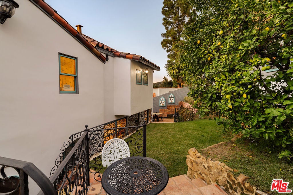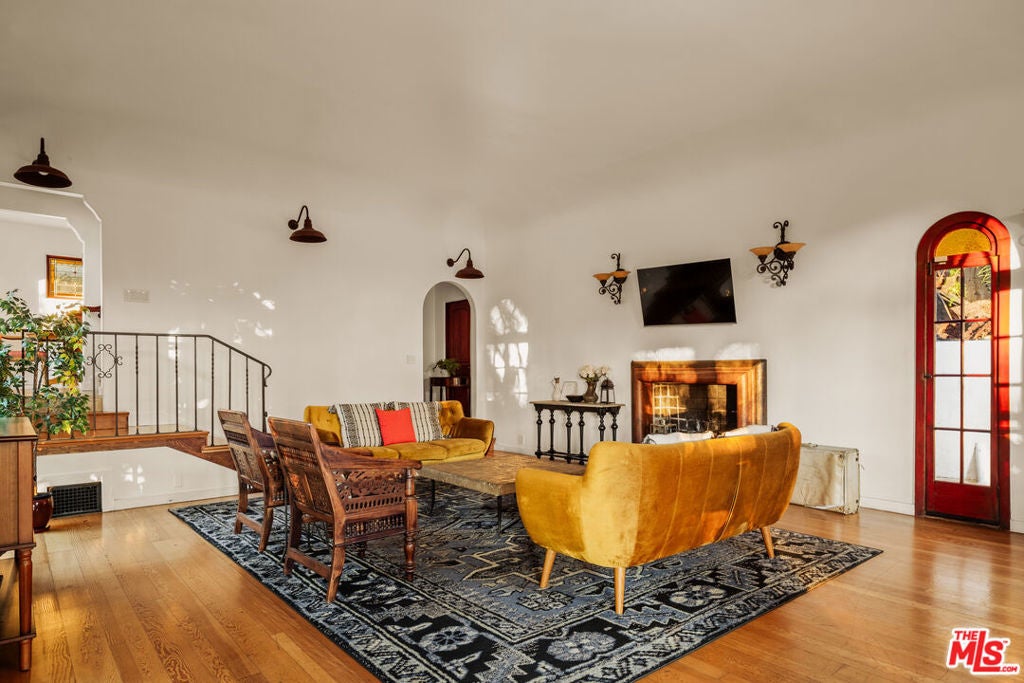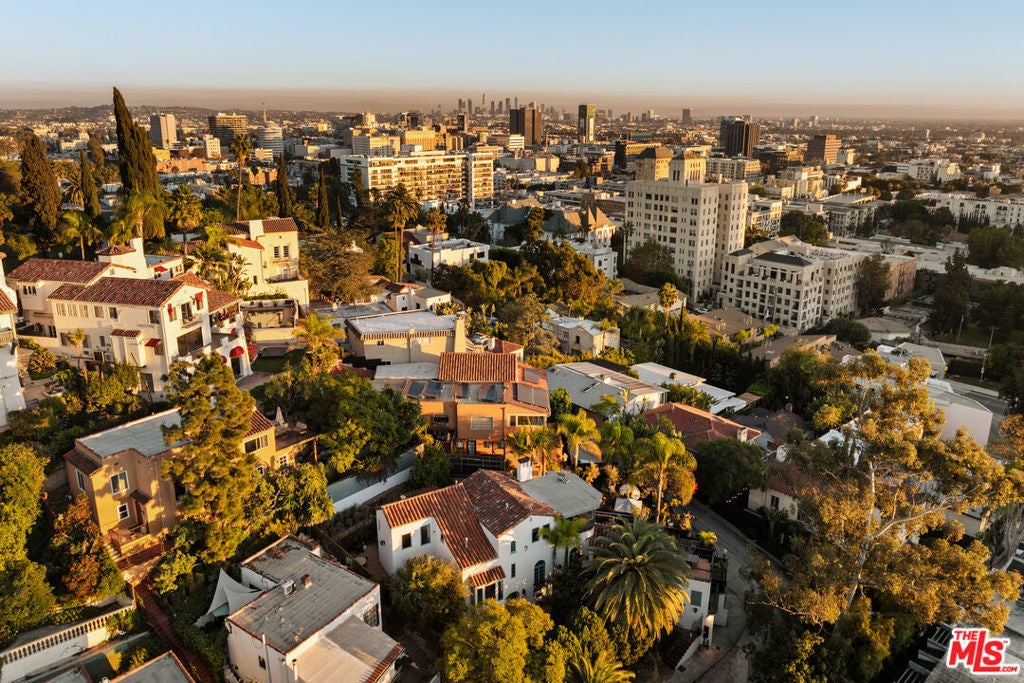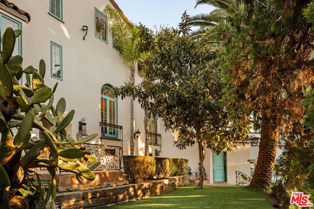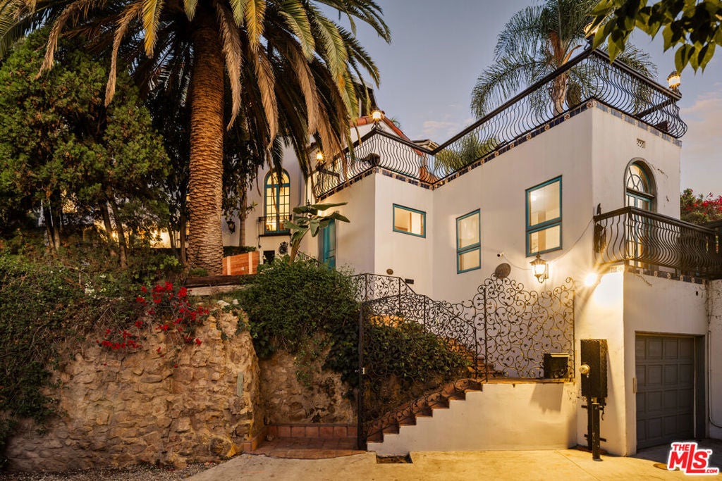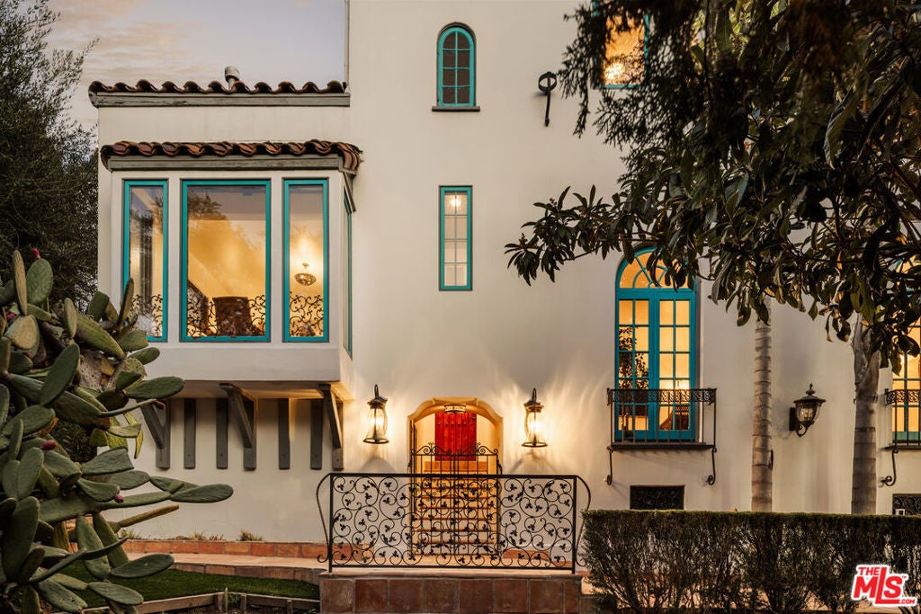 Perched in the heart of Whitley Heights, this beautifully preserved, fully furnished, Spanish Revival estate blends timeless 1920s charm with modern sophistication. Enjoy sweeping canyon and city views from nearly every room - from sunrise to sunset. The light-filled main residence offers three bedrooms and three bathrooms, highlighted by a dramatic living room with soaring arched windows and a cozy sunroom featuring exposed wood-beam ceilings. French doors open to a spacious deck, perfect for outdoor dining and entertaining under the stars. Rich in character, the home showcases exquisite original details, including wrought ironwork, stained glass accents, colorful Spanish tiles, and handcrafted wood built-ins. The gourmet kitchen has been updated with high-end stainless steel appliances, including a Wolf range, and offers extensive cabinetry. A detached guest house mirrors the main home's vintage charm and provides flexible use - ideal as a guest suite or private office. The property also features multiple outdoor spaces for al fresco living, including manicured front and back yards, two patios, a view deck, and a balcony. Additional amenities include a one-car garage and on-site parking for two more vehicles. A private stairway offers direct access to Hollywood & Highland, the Hollywood Bowl, and other iconic attractions. A rare opportunity to experience a piece of Hollywood history, with unmatched views and exceptional indoor-outdoor living.