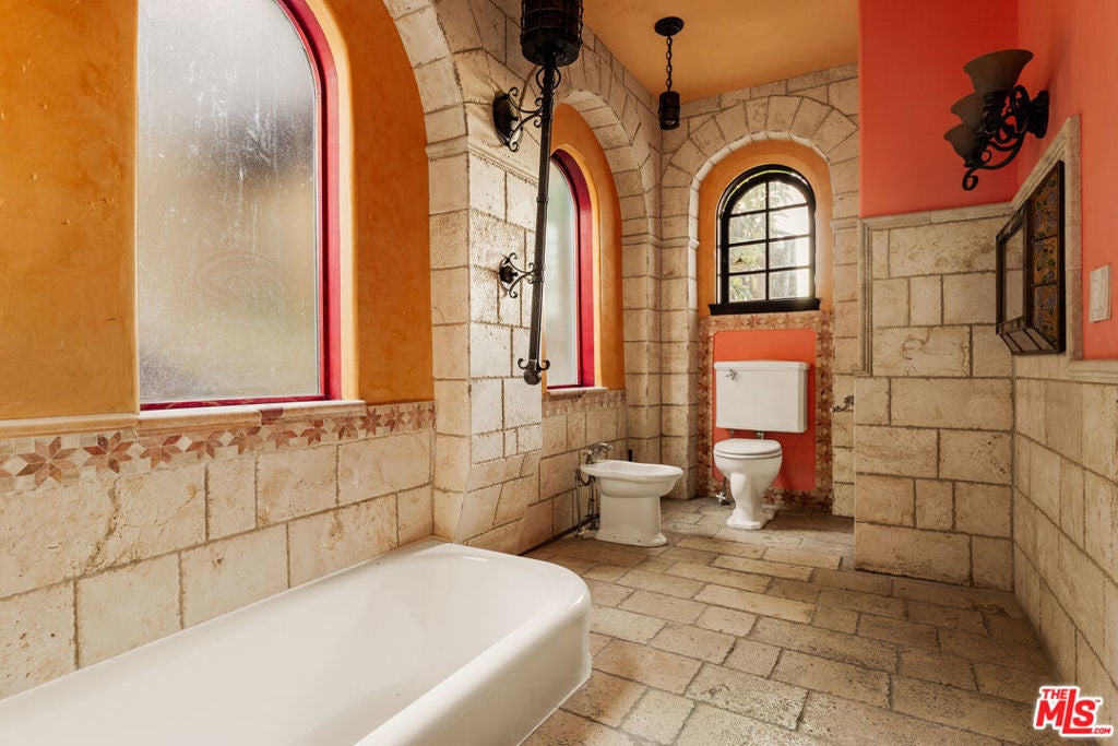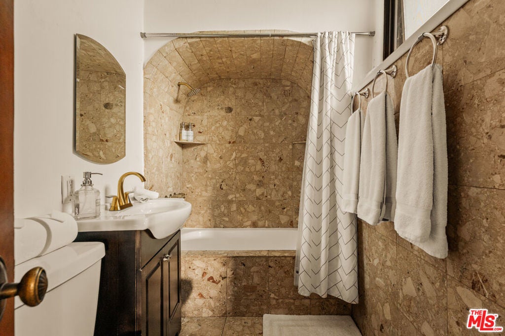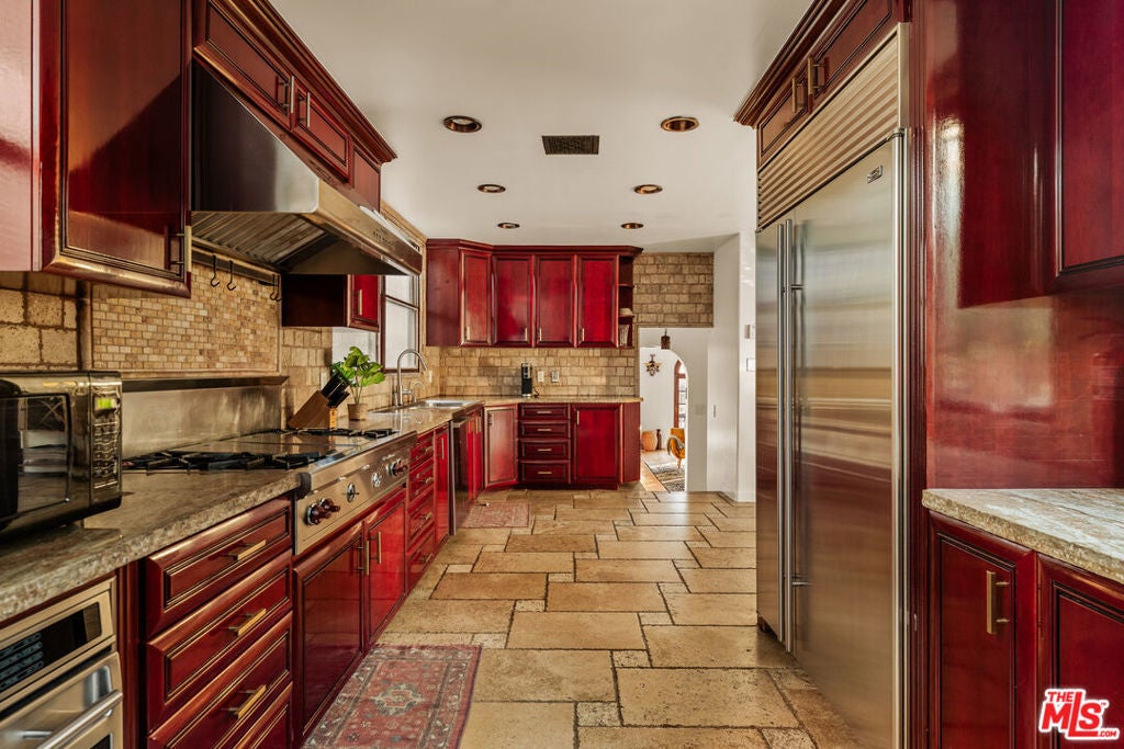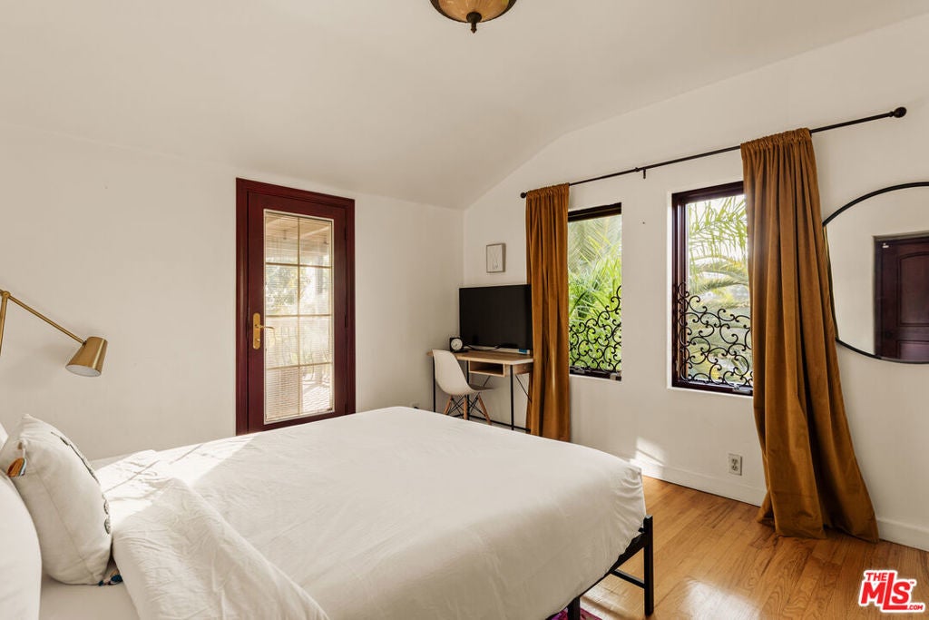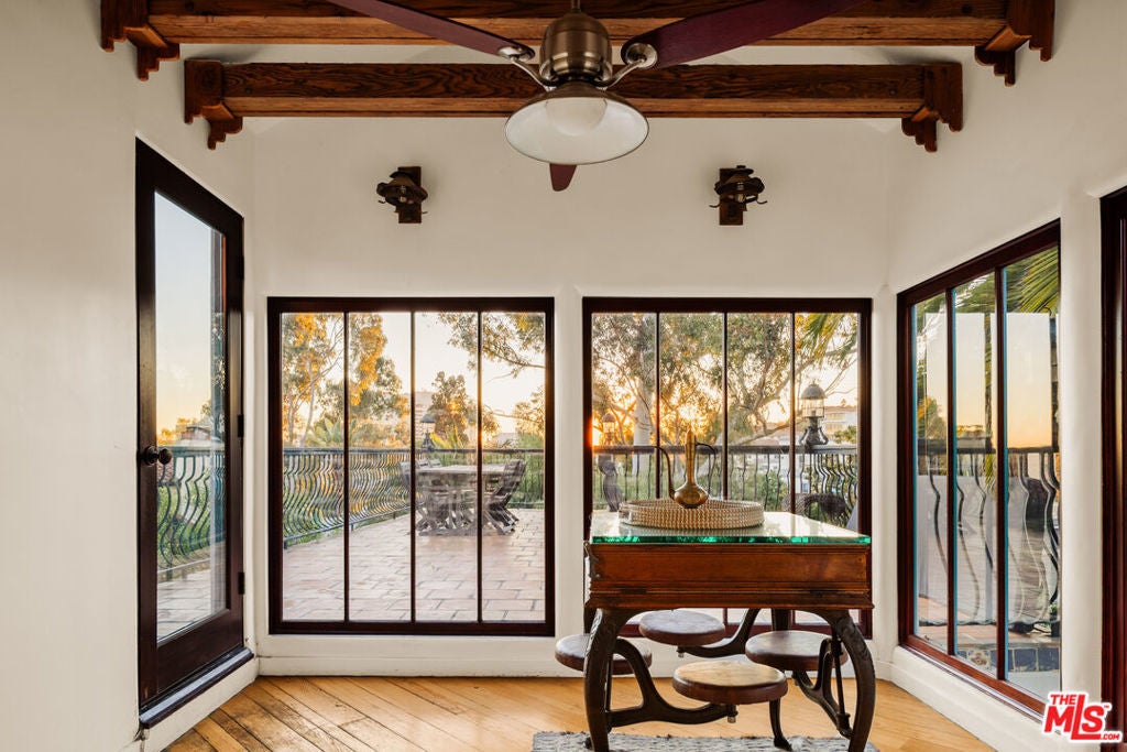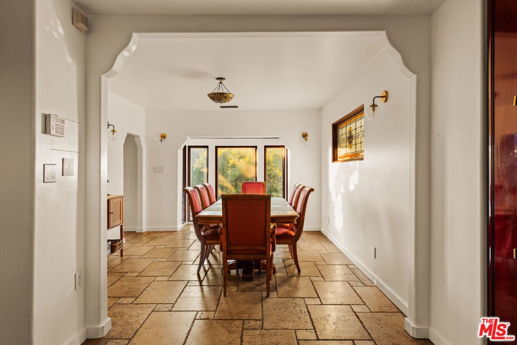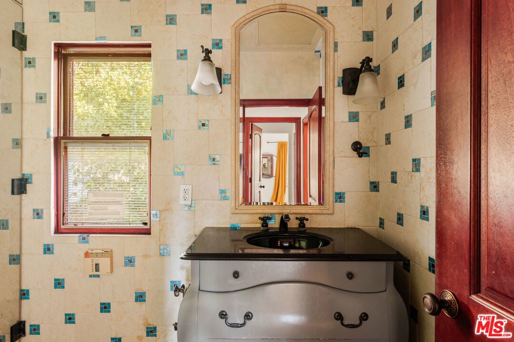 Perched in the heart of Whitley Heights, this beautifully preserved, fully furnished, Spanish Revival estate blends timeless 1920s charm with modern sophistication. Enjoy sweeping canyon and city views from nearly every room - from sunrise to sunset. The light-filled main residence offers three bedrooms and three bathrooms, highlighted by a dramatic living room with soaring arched windows and a cozy sunroom featuring exposed wood-beam ceilings. French doors open to a spacious deck, perfect for outdoor dining and entertaining under the stars. Rich in character, the home showcases exquisite original details, including wrought ironwork, stained glass accents, colorful Spanish tiles, and handcrafted wood built-ins. The gourmet kitchen has been updated with high-end stainless steel appliances, including a Wolf range, and offers extensive cabinetry. A detached guest house mirrors the main home's vintage charm and provides flexible use - ideal as a guest suite or private office. The property also features multiple outdoor spaces for al fresco living, including manicured front and back yards, two patios, a view deck, and a balcony. Additional amenities include a one-car garage and on-site parking for two more vehicles. A private stairway offers direct access to Hollywood & Highland, the Hollywood Bowl, and other iconic attractions. A rare opportunity to experience a piece of Hollywood history, with unmatched views and exceptional indoor-outdoor living.