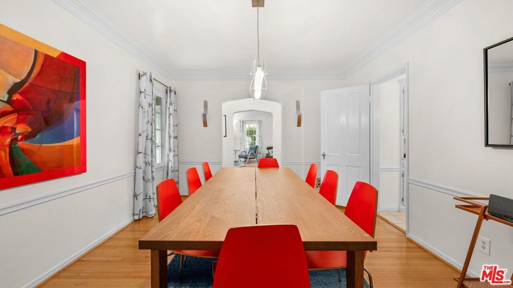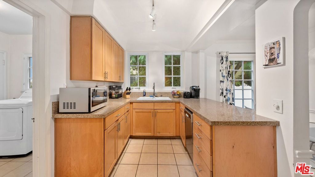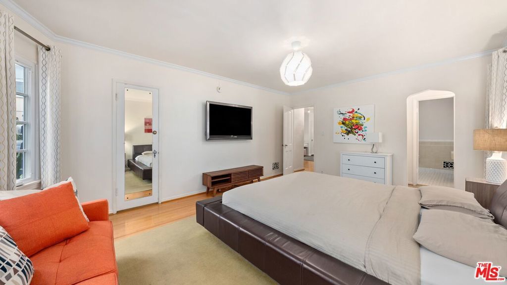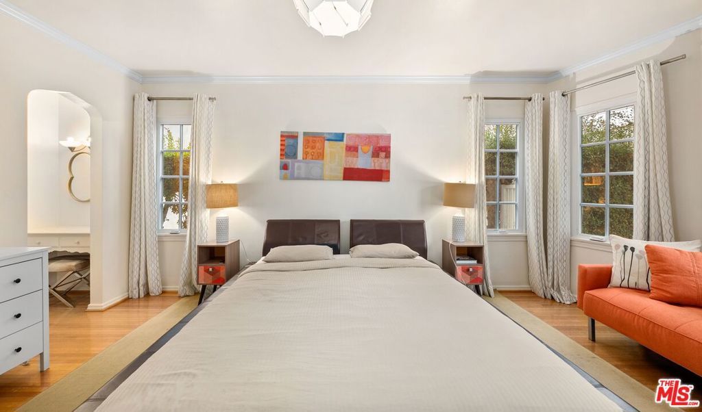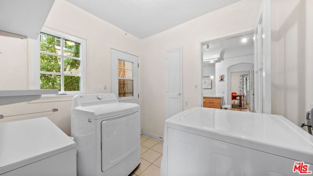 Classic Spanish Lower Unit | AVAILABLE STARTING FEB.15TH | Experience timeless Spanish charm with thoughtful modern upgrades in this spacious lower unit of a classic 1930s duplex, situated on a quiet, tree-lined street in the heart of Beverly Grove / Fairfax. The residence offers 3 generously sized bedrooms and 2 full bathrooms, tastefully updated with stylish fixtures. A large, sunlit living room features arched windows, original moldings, and a decorative fireplace. The formal dining room is ideal for entertaining or can easily function as a work-from-home office. The updated kitchen includes quartz countertops, stainless steel appliances, and a breakfast nook. Additional highlights include a dedicated laundry room with in-unit washer and dryer, original hardwood floors, high ceilings, arched doorways, and preserved period details throughout. Central heat and air conditioning provide year-round comfort, while brand-new dual-pane windows enhance energy efficiency and noise reduction. The property includes a private garage with two parking spaces (tandem or side-by-side) and access to a shared backyard, perfect for outdoor dining or relaxation. Prime location walking distance to The Grove, Melrose Avenue, Pan Pacific Park, Erewhon, Trader Joe's, Whole Foods, and some of Los Angeles' best restaurants, cafes, and shopping, with convenient access to West Hollywood, Mid-Wilshire, and Beverly Hills.