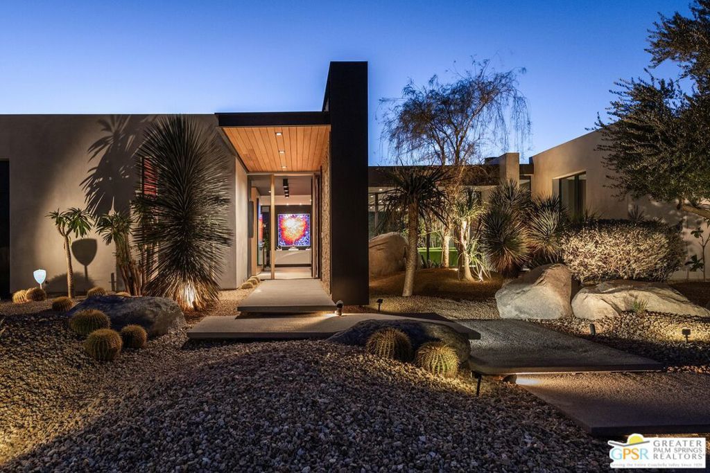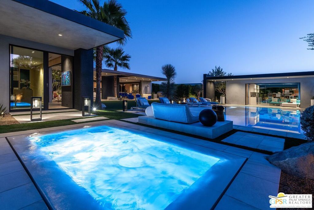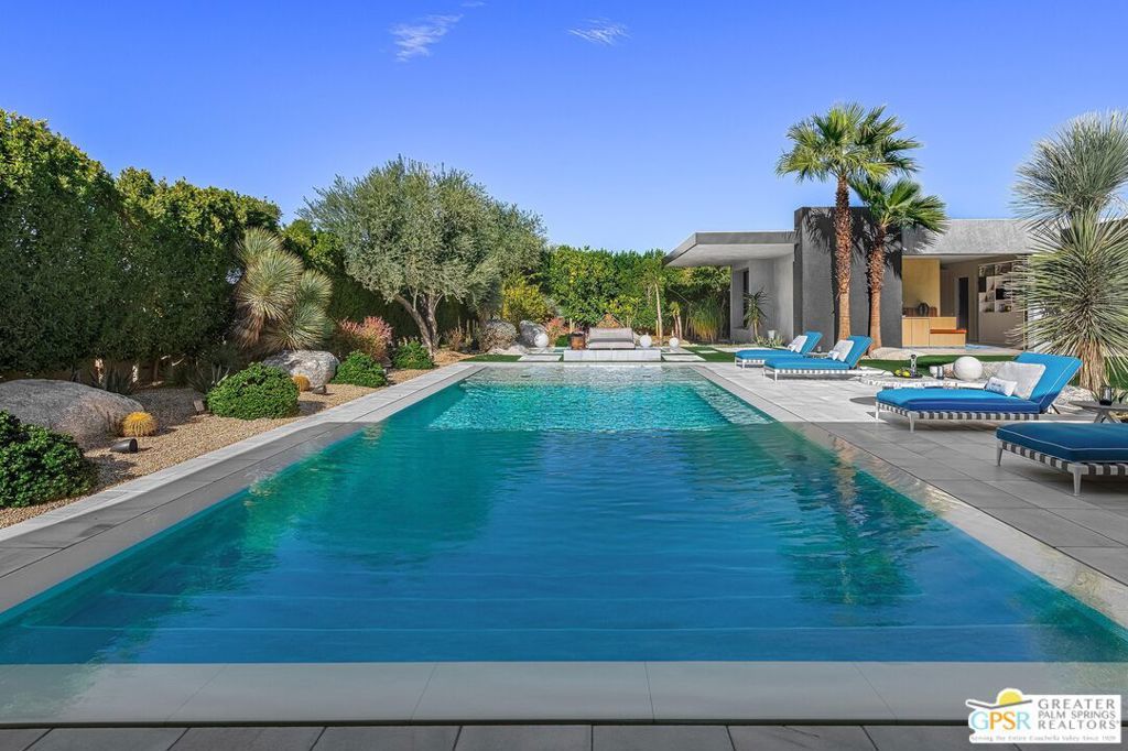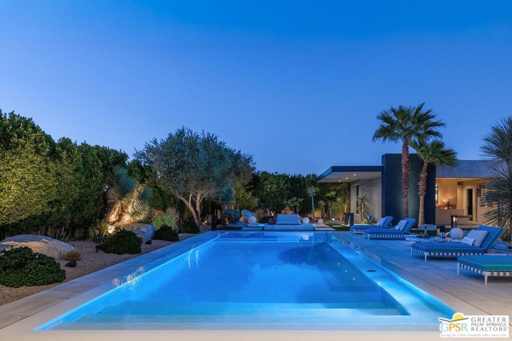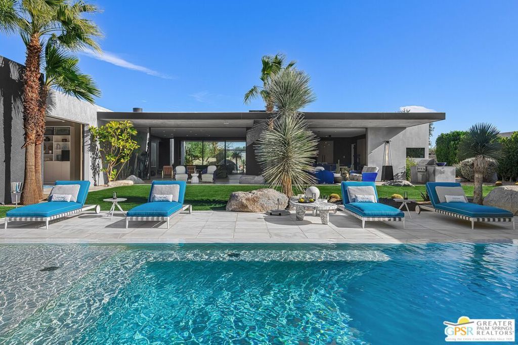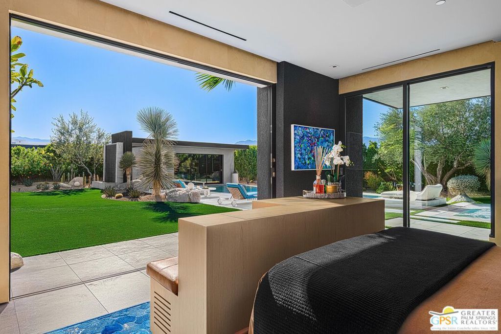 A residence of true architectural distinction, 3 Echo Lane is a sculptural modern home designed by Sean Lockyer, AIA, principal architect of the internationally recognized Studio AR&D. Known for refined modernism and materially expressive design, Lockyer's work is celebrated for its clarity of form, thoughtful proportions, and seamless relationship to landscape qualities fully realized in this exceptional residence. Built with steel beam construction, the home exemplifies architectural integrity, structural honesty, and enduring craftsmanship. Clean horizontal lines, purposeful massing, and carefully composed sightlines frame west-facing mountain views, capturing the drama of the San Jacinto range and delivering unforgettable desert sunsets. Walls of Fleetwood sliding glass doors create expansive openings that dissolve the boundary between interior and exterior, a hallmark of architecturally significant modern design. Outdoor living is elevated by a dedicated pool pavilion, conceived as an extension of the home's architectural language providing shaded lounge and entertaining space while anchoring the resort-style grounds with structure, balance, and presence. The outdoor environment has been thoughtfully reimagined with a recently redesigned zero-edge pool and spa, complemented by a dramatic water wall that functions as both architectural feature and kinetic art, enhancing sound, movement, and visual calm. Interiors reflect a gallery-like restraint enriched by bespoke finishes and couture-level details. The primary bathroom is a sculptural retreat, highlighted by a freestanding travertine soaking tub carved from a single monolithic block of stone a rare artisan element more commonly found in museum-quality design. Select walls are appointed with Gucci and Phillip Jeffries wall coverings, adding texture, depth, and refined luxury. California Closet systems are seamlessly integrated to preserve clean architectural lines while enhancing functionality. A Control4 home automation system supports modern living with intuitive control of lighting, window coverings and audio/video, ensuring comfort without compromising design intent. Architecturally significant, structurally sophisticated, and meticulously curated, 3 Echo Lane represents a rare opportunity to acquire a modern desert residence where architecture, landscape, and livability convergeset within the prestigious enclave of Echo at Rancho Mirage.