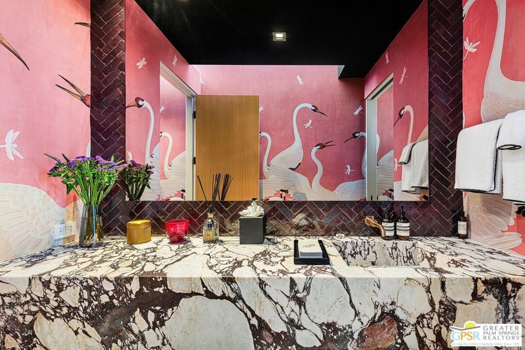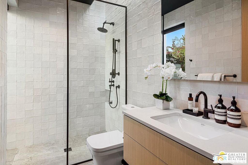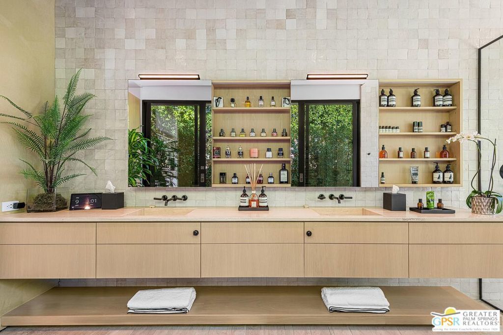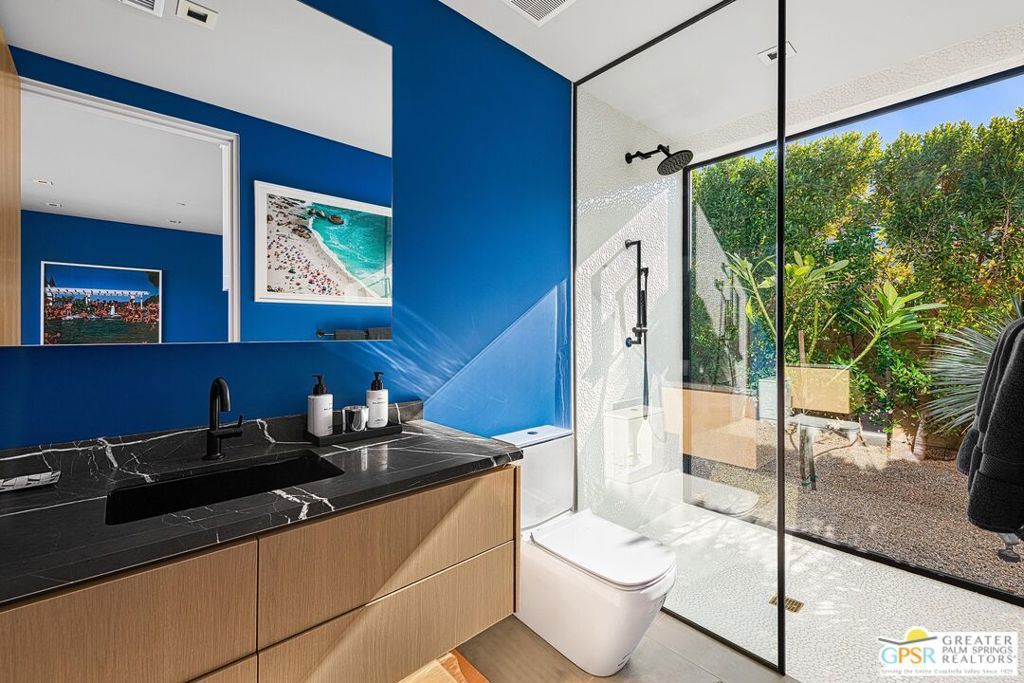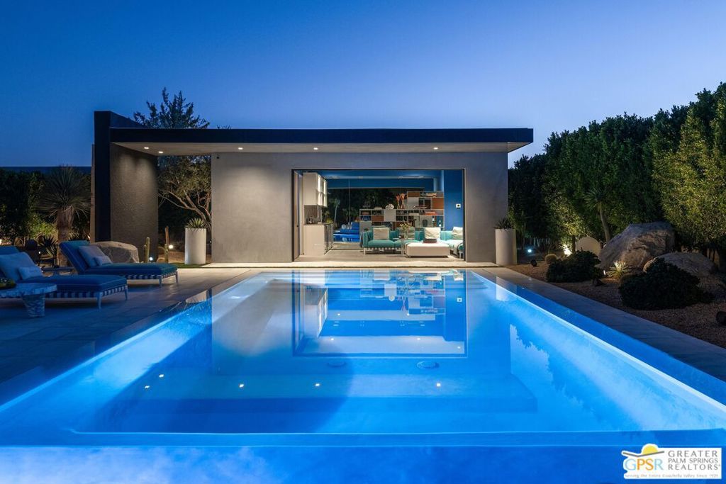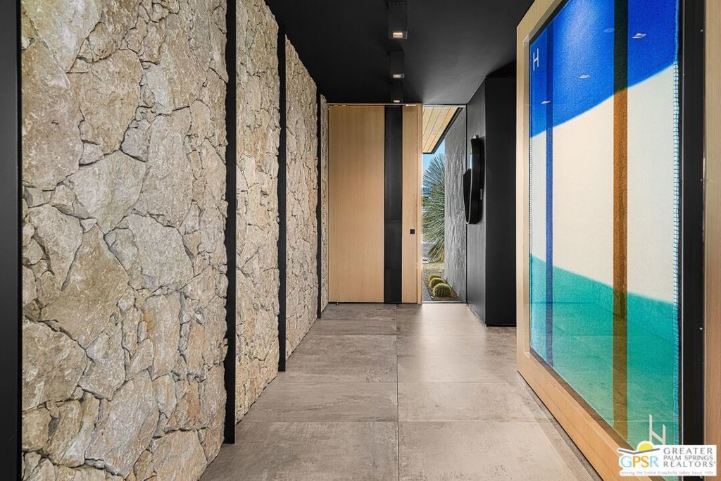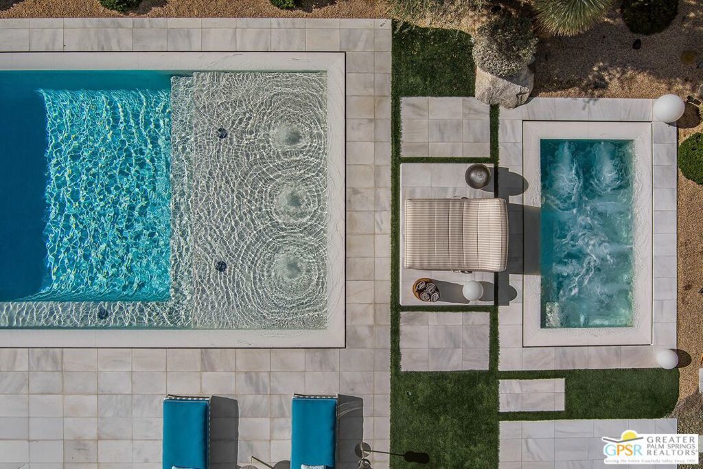 A residence of true architectural distinction, 3 Echo Lane is a sculptural modern home designed by Sean Lockyer, AIA, principal architect of the internationally recognized Studio AR&D. Known for refined modernism and materially expressive design, Lockyer's work is celebrated for its clarity of form, thoughtful proportions, and seamless relationship to landscape qualities fully realized in this exceptional residence. Built with steel beam construction, the home exemplifies architectural integrity, structural honesty, and enduring craftsmanship. Clean horizontal lines, purposeful massing, and carefully composed sightlines frame west-facing mountain views, capturing the drama of the San Jacinto range and delivering unforgettable desert sunsets. Walls of Fleetwood sliding glass doors create expansive openings that dissolve the boundary between interior and exterior, a hallmark of architecturally significant modern design. Outdoor living is elevated by a dedicated pool pavilion, conceived as an extension of the home's architectural language providing shaded lounge and entertaining space while anchoring the resort-style grounds with structure, balance, and presence. The outdoor environment has been thoughtfully reimagined with a recently redesigned zero-edge pool and spa, complemented by a dramatic water wall that functions as both architectural feature and kinetic art, enhancing sound, movement, and visual calm. Interiors reflect a gallery-like restraint enriched by bespoke finishes and couture-level details. The primary bathroom is a sculptural retreat, highlighted by a freestanding travertine soaking tub carved from a single monolithic block of stone a rare artisan element more commonly found in museum-quality design. Select walls are appointed with Gucci and Phillip Jeffries wall coverings, adding texture, depth, and refined luxury. California Closet systems are seamlessly integrated to preserve clean architectural lines while enhancing functionality. A Control4 home automation system supports modern living with intuitive control of lighting, window coverings and audio/video, ensuring comfort without compromising design intent. Architecturally significant, structurally sophisticated, and meticulously curated, 3 Echo Lane represents a rare opportunity to acquire a modern desert residence where architecture, landscape, and livability convergeset within the prestigious enclave of Echo at Rancho Mirage.